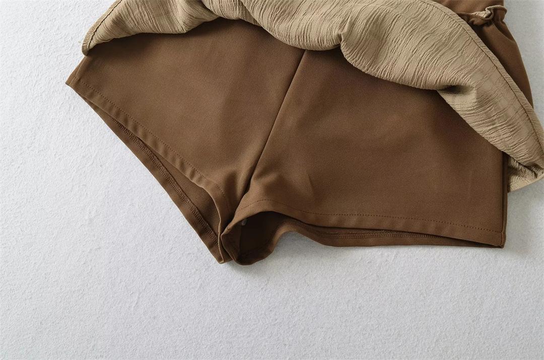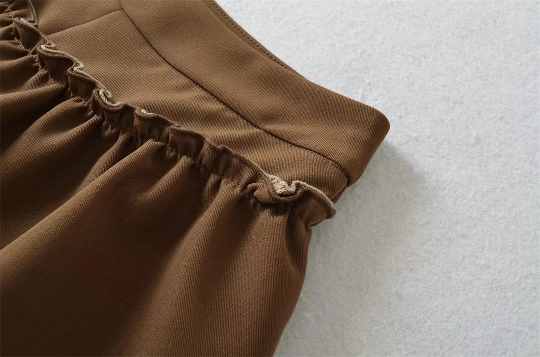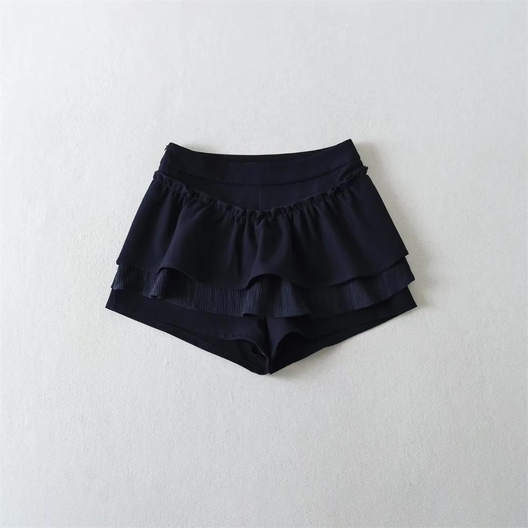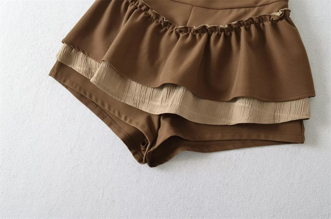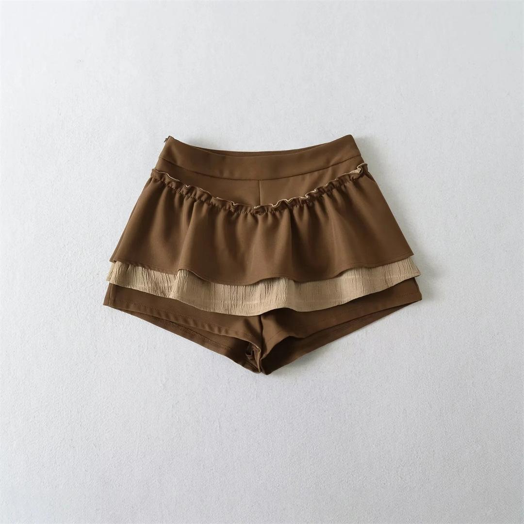 Dulce Falda de Tres Capas Retro Cintura Alta Volante Plisada Abullonada Falda Corta Mujer Anti-Exposición Empalmada Bloque de Color Media Falda