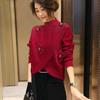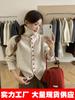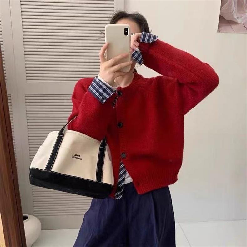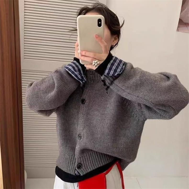 Otoño e Invierno Cuello Redondo Monopecho Tejido Exterior de Dos Piezas Falsas para Mujer 2025 Nuevo Color Caramelo Versátil Look Adelgazante Suéter Tejido