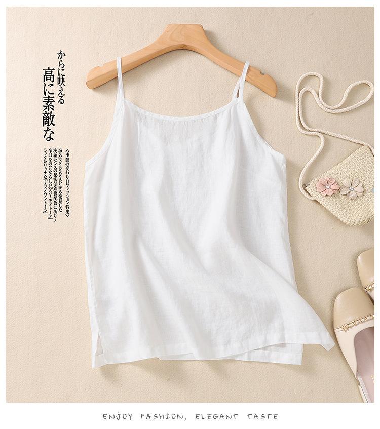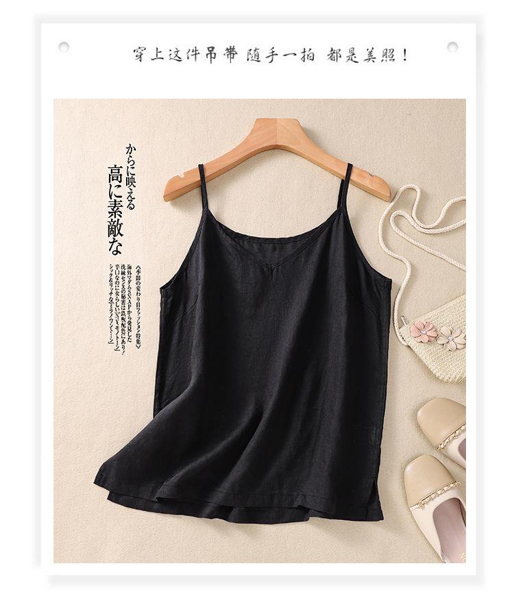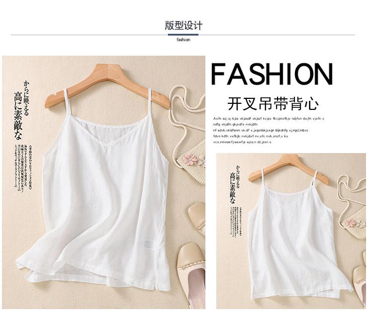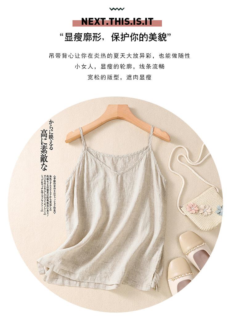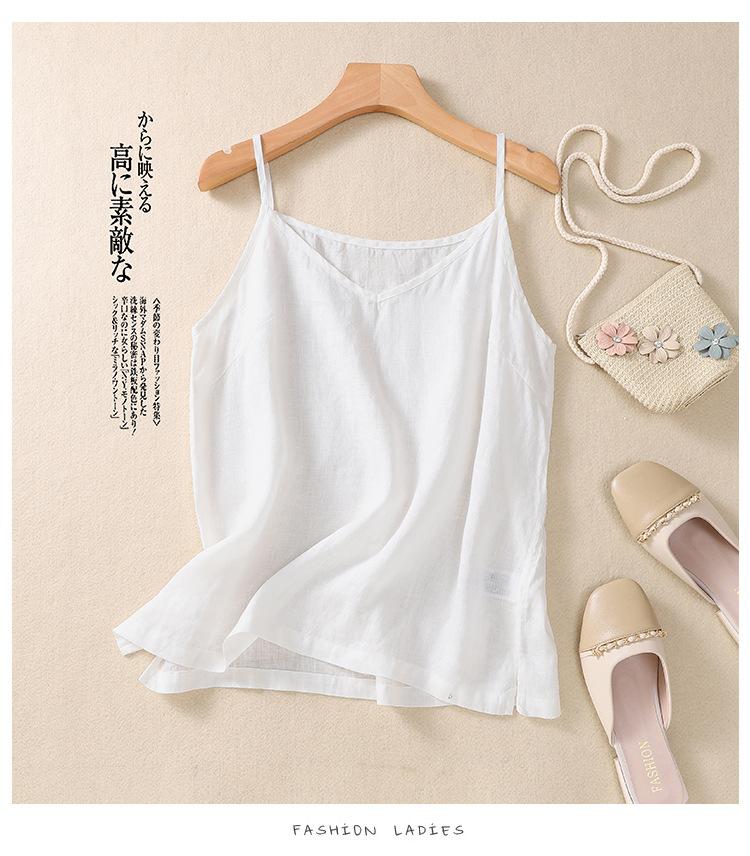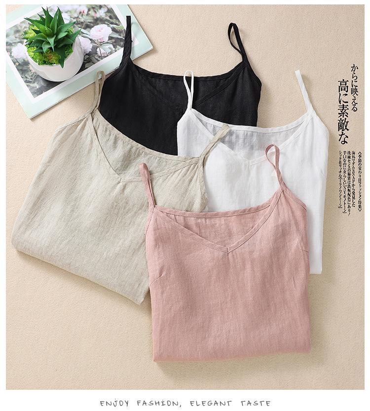 Foto Real Verano 2025 Ligero Suave Lino Fino Tirante Pequeño Combinable Cuello en V Interior Artístico Chaleco de Tirantes para Mujer
