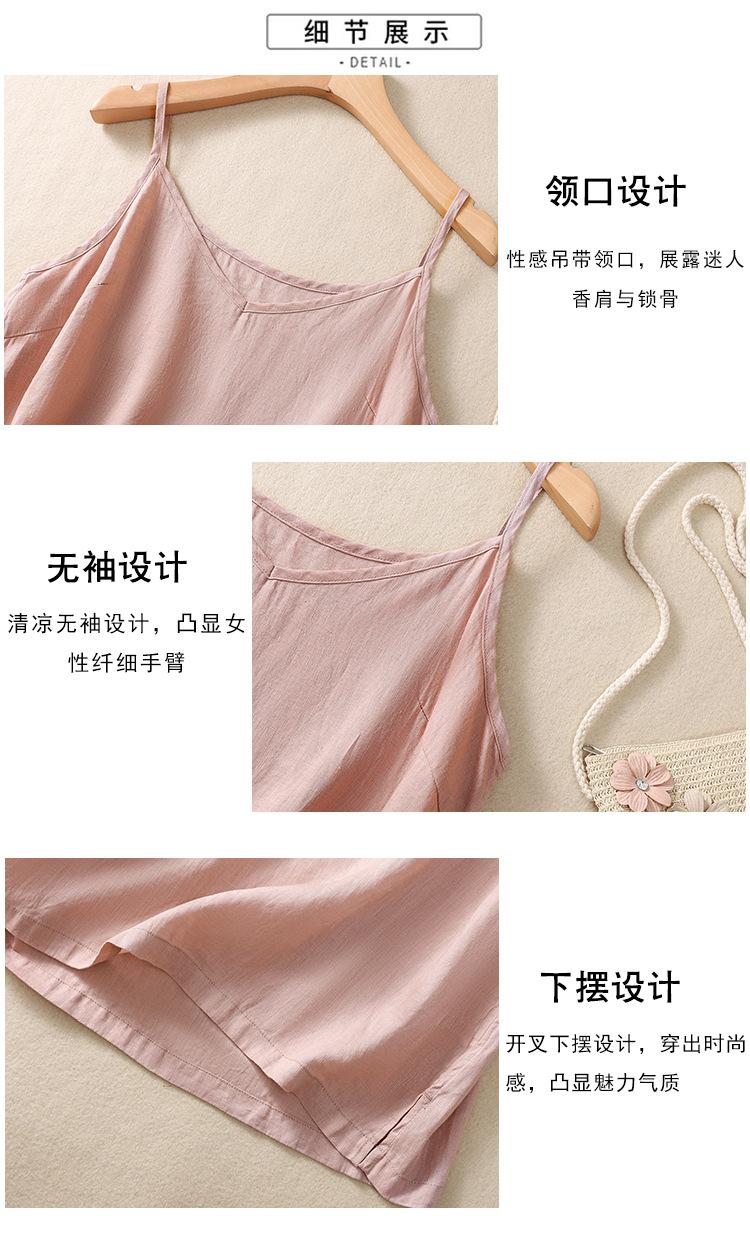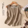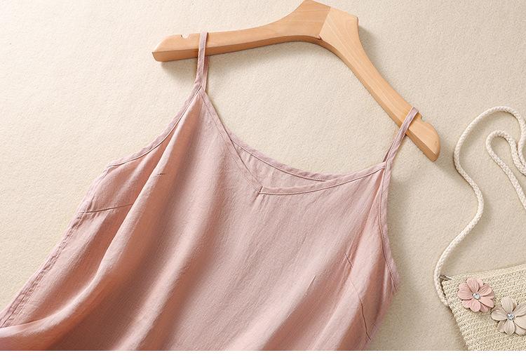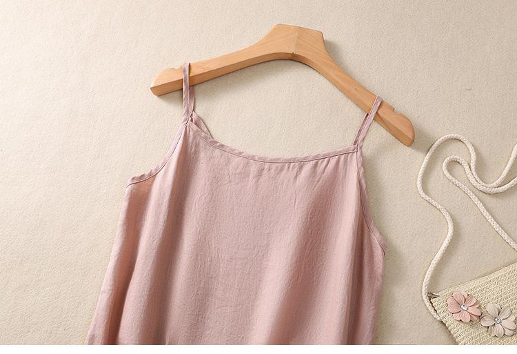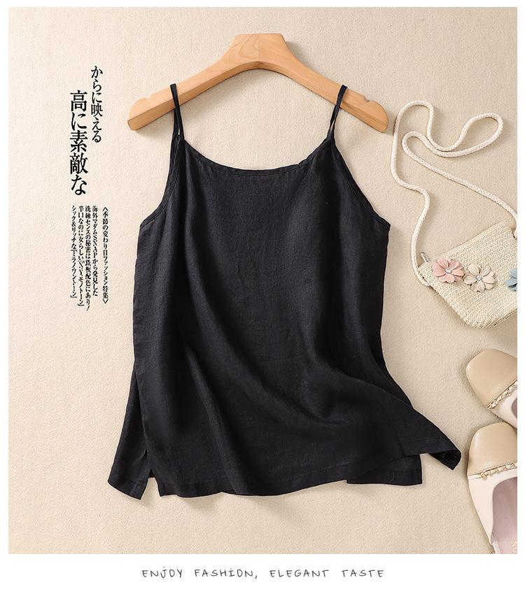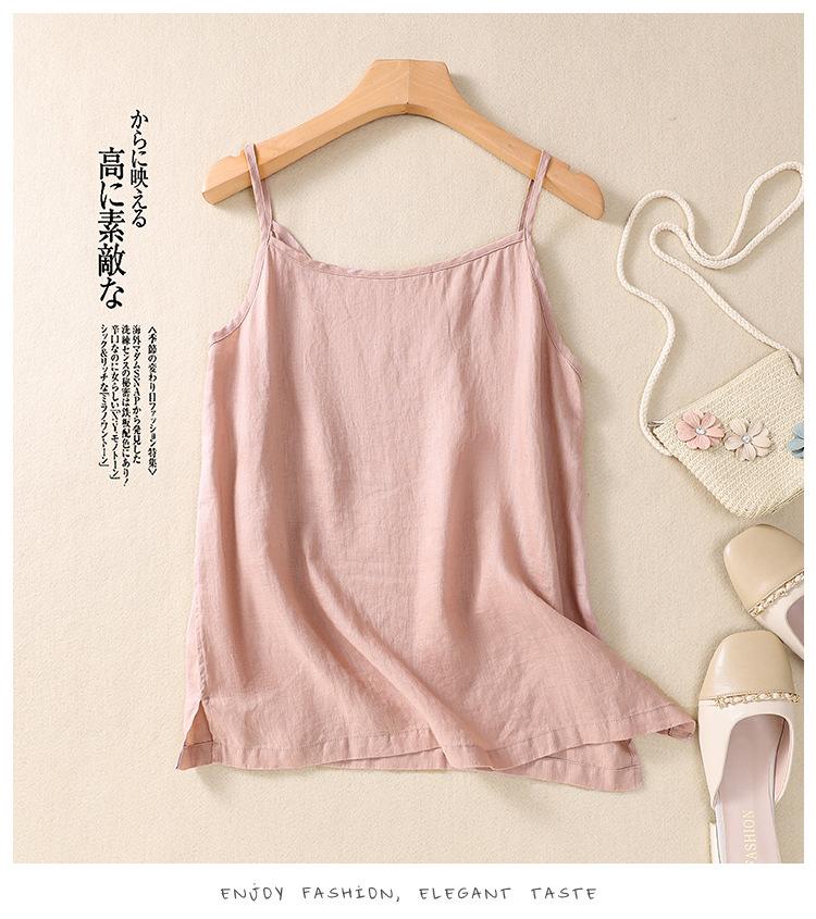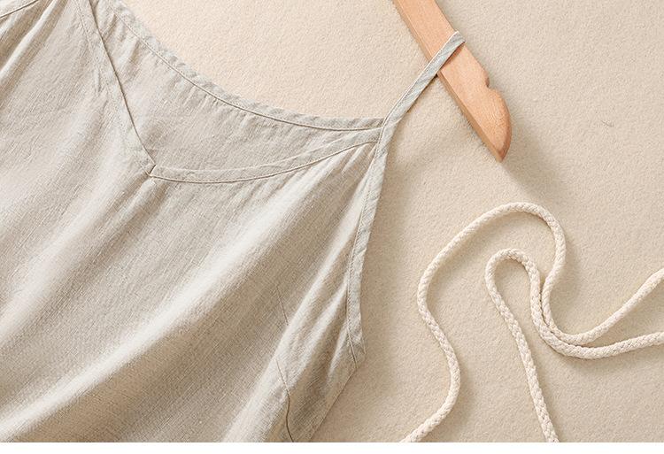Foto Real Verano 2025 Ligero Suave Lino Fino Tirante Pequeño Combinable Cuello en V Interior Artístico Chaleco de Tirantes para Mujer
