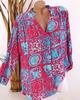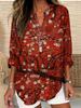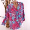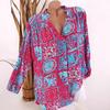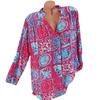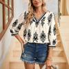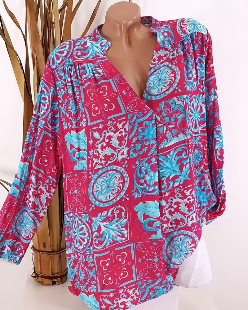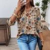 Exportación Transfronteriza Verano Nuevo Amazon Europeo y Americano Casual Estampado Cuello en V Manga Larga Camisa Tops para Mujer