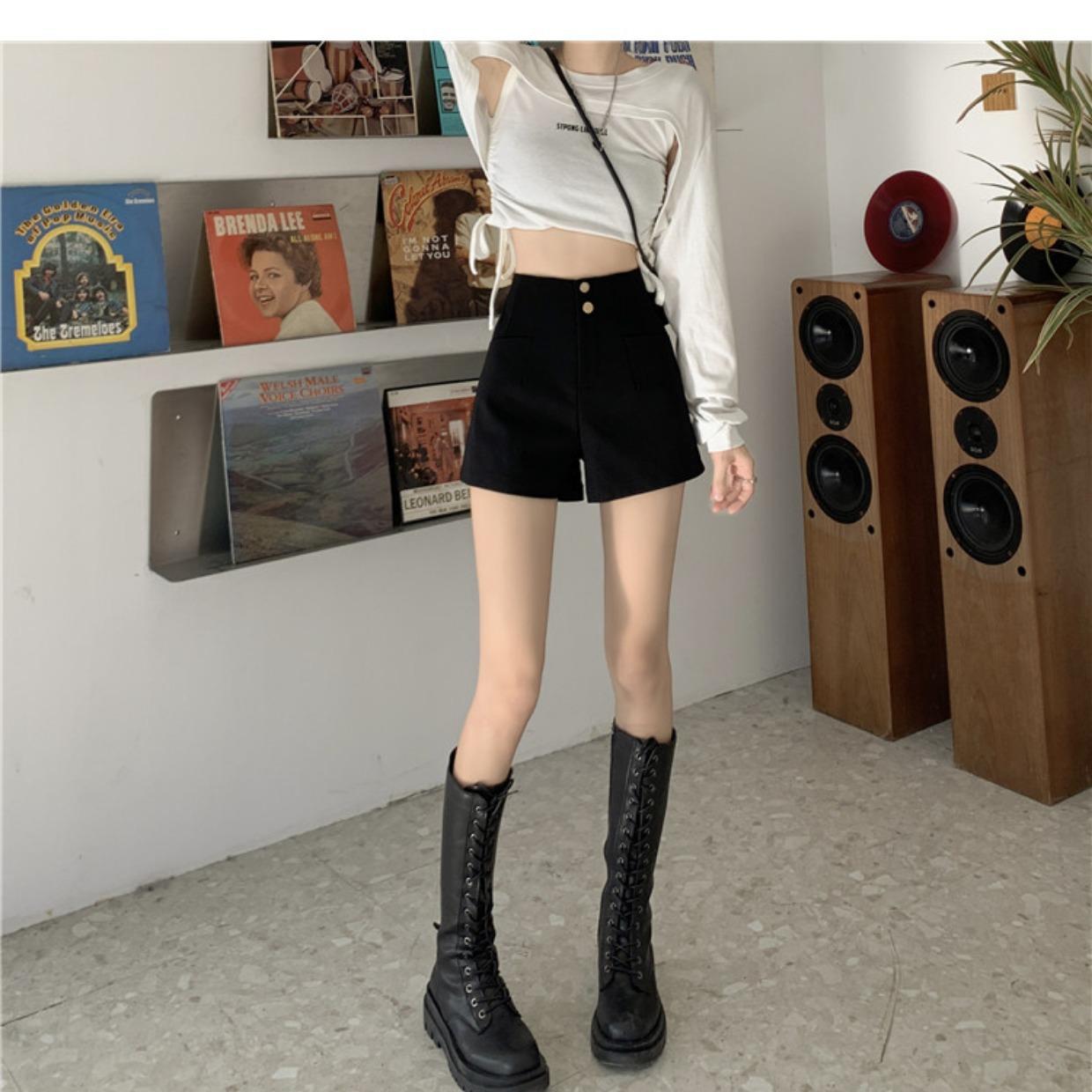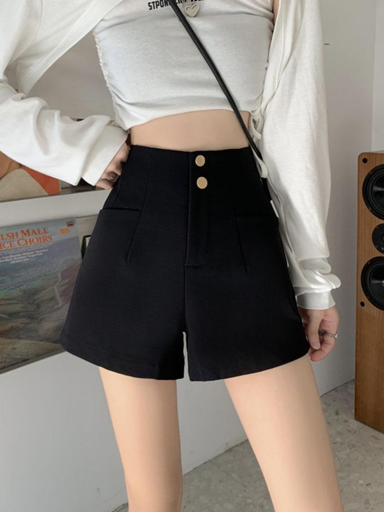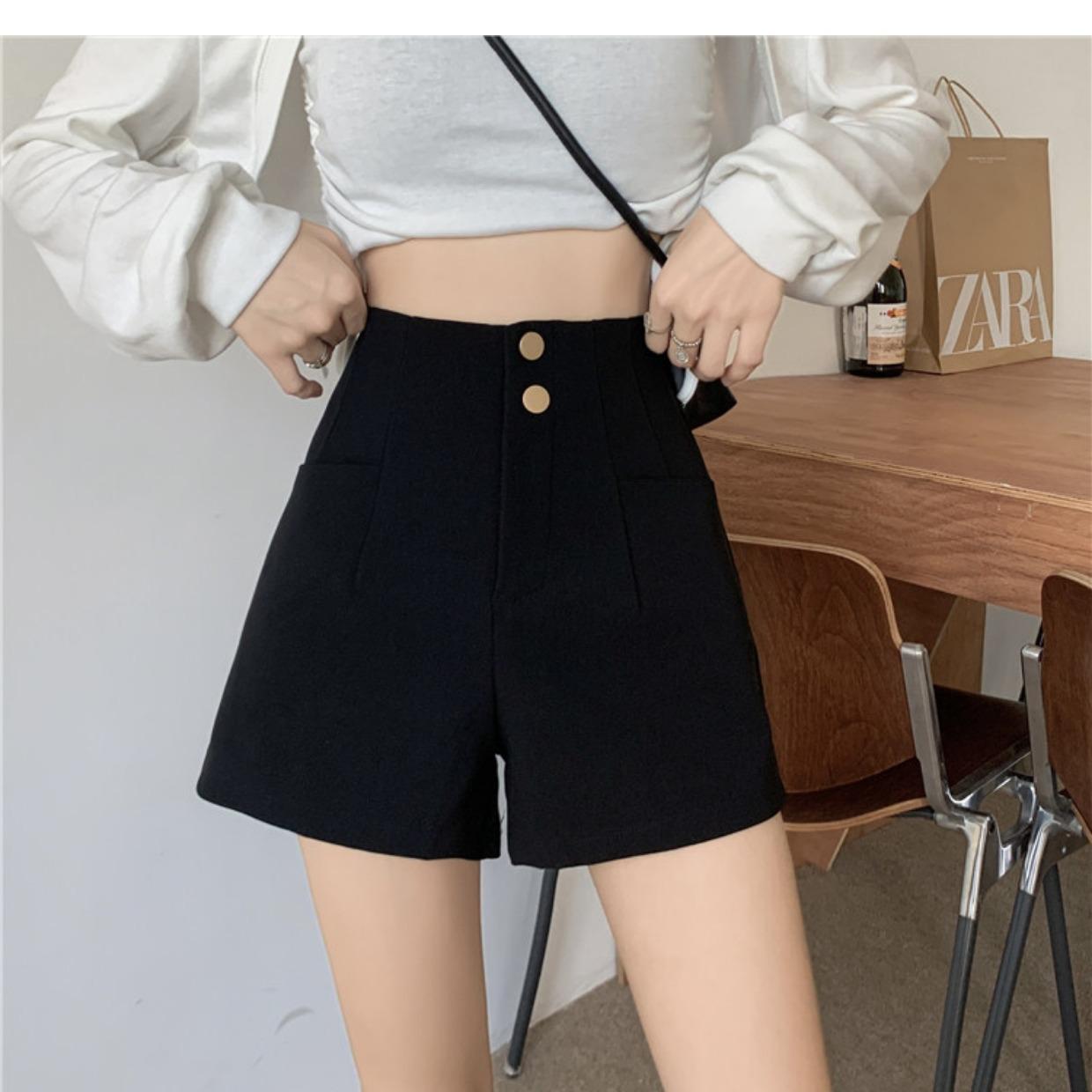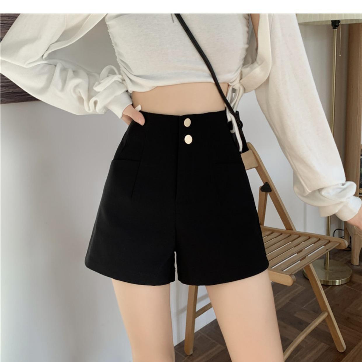 2025 nuevo traje de verano para mujer de cintura alta negro adelgazante moda versátil línea A para usar con botas pantalones casuales delgado