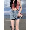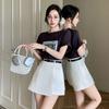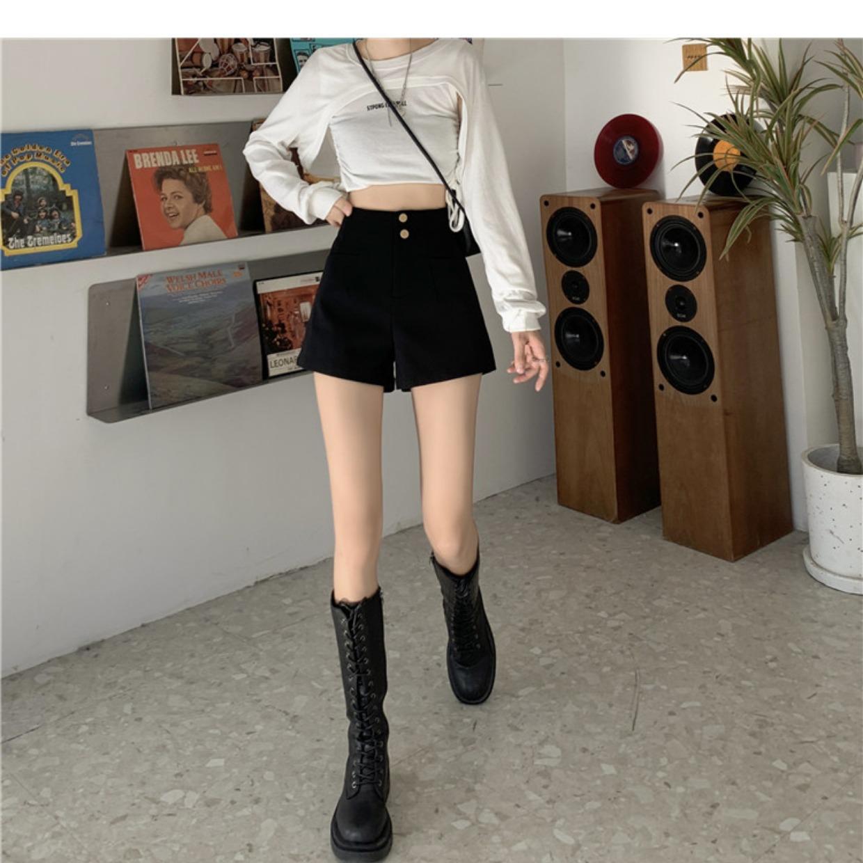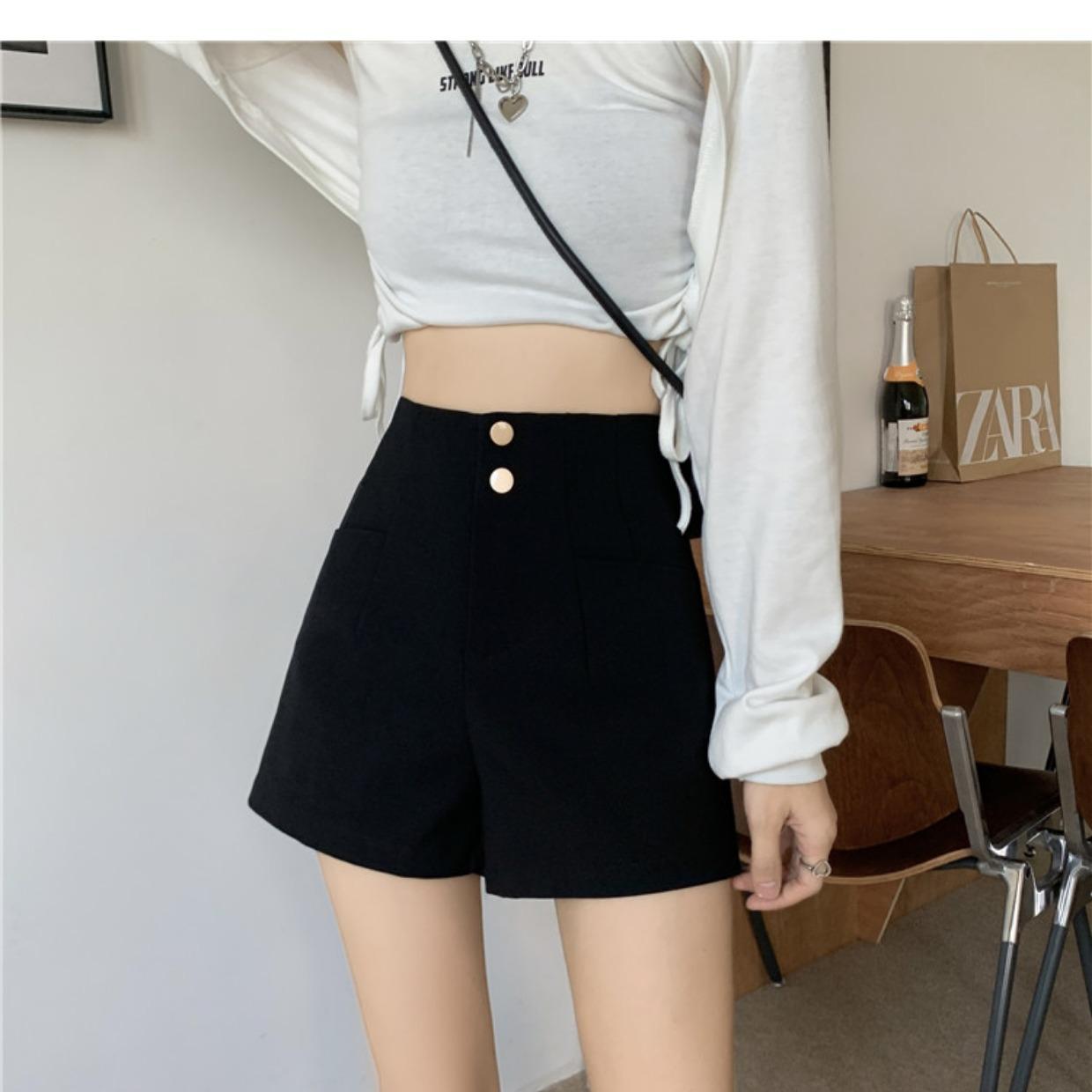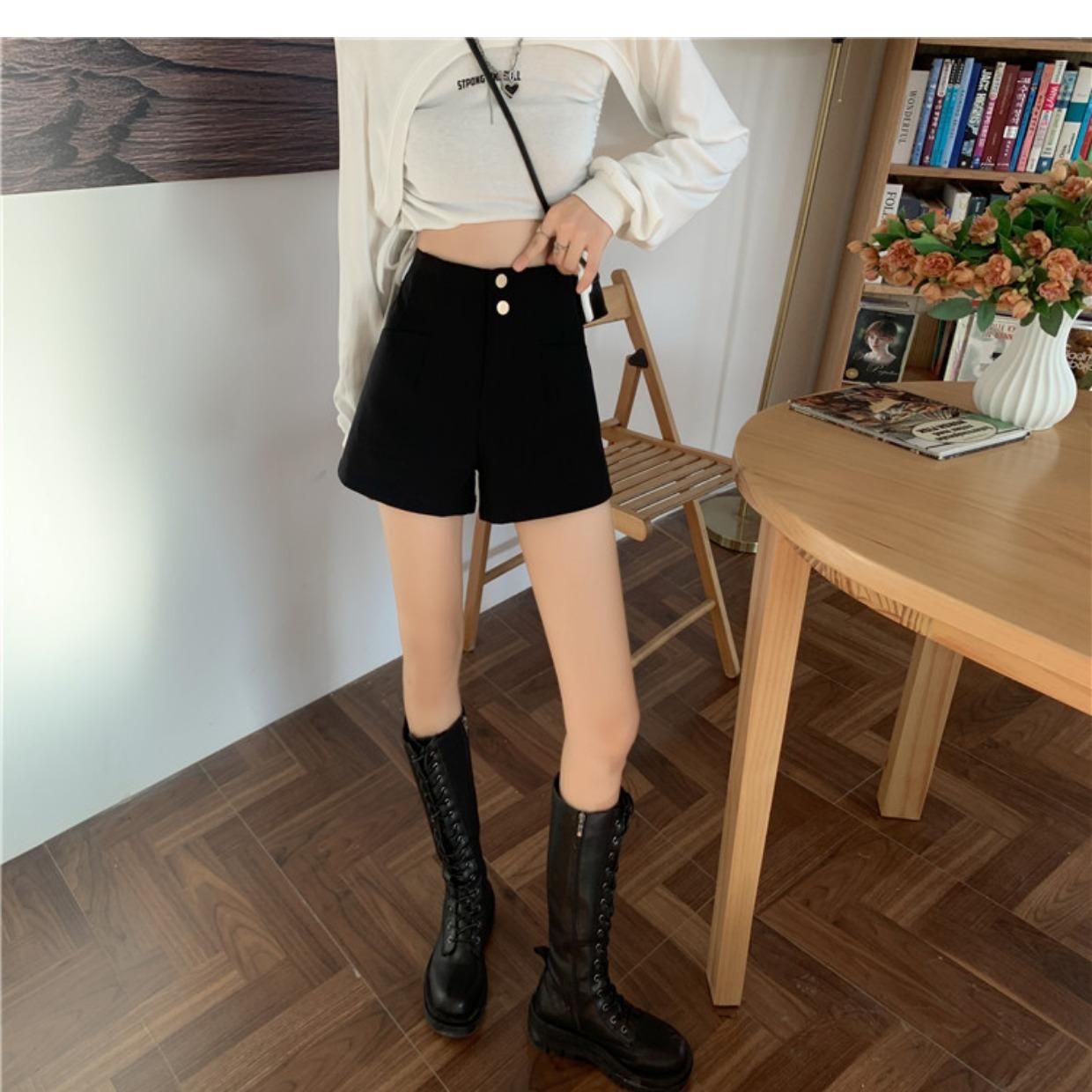 2025 nuevo traje de verano para mujer de cintura alta negro adelgazante moda versátil línea A para usar con botas pantalones casuales delgado