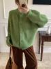 Otoño e Invierno Estilo Coreano Estilo Perezoso Color Puro Simple Cárdigan de Punto Abrigo Grueso Versátil Elegante Cuello Redondo Suéter de Línea Gruesa Top