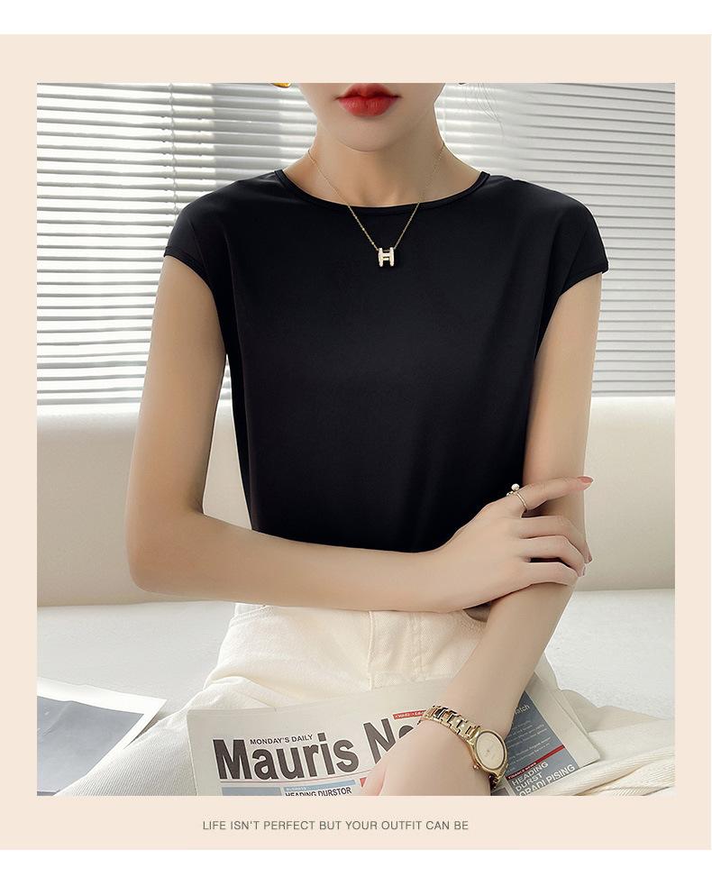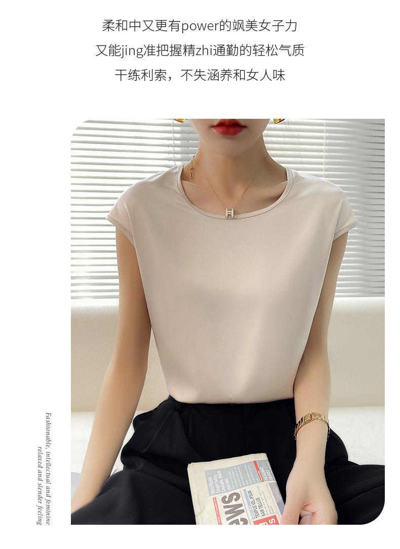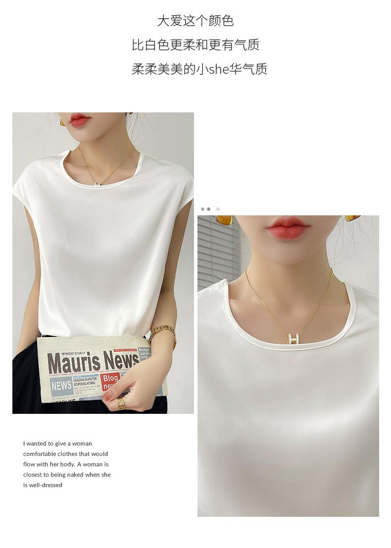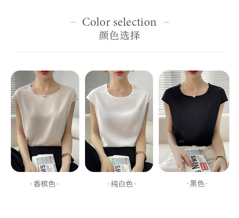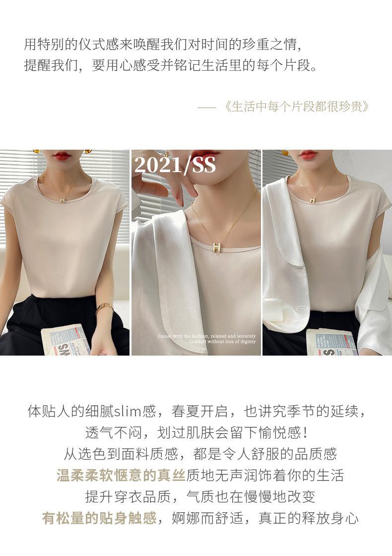 Nuevo estilo chaleco camisola de seda para mujer primavera verano ropa interior ropa exterior base versátil cuello redondo combina traje camiseta holgada