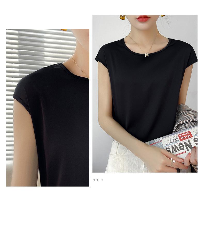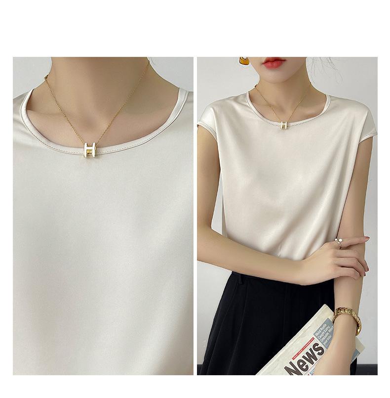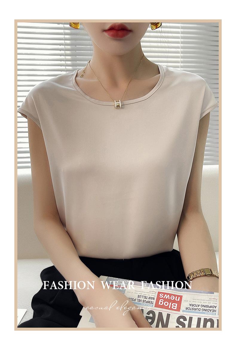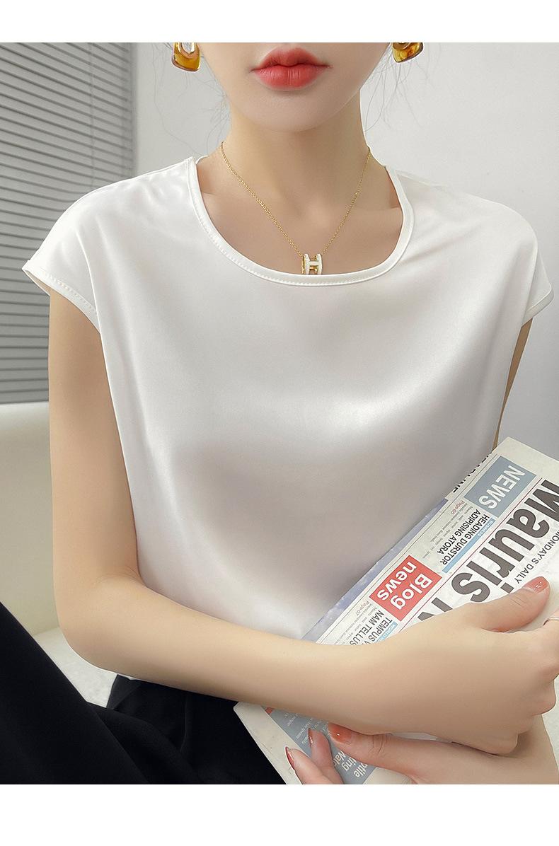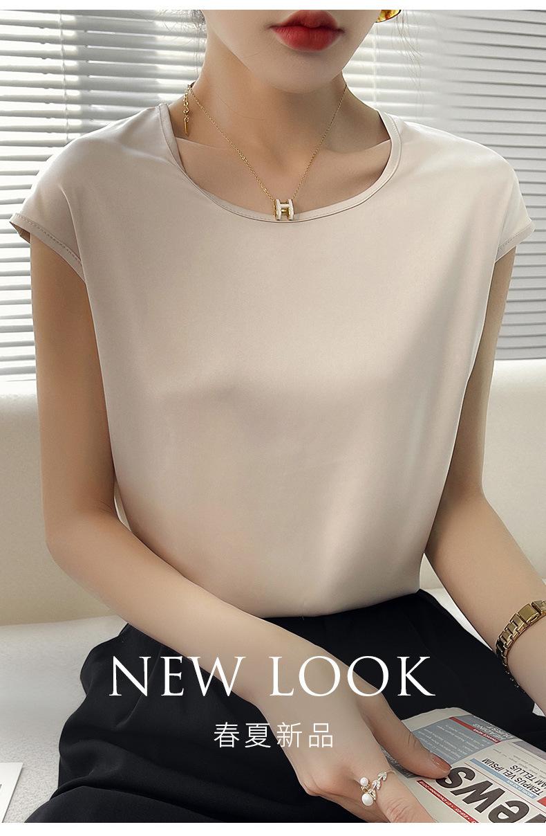 Nuevo estilo chaleco camisola de seda para mujer primavera verano ropa interior ropa exterior base versátil cuello redondo combina traje camiseta holgada