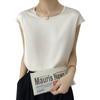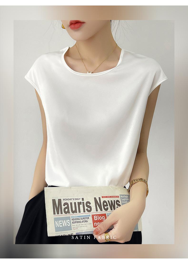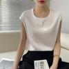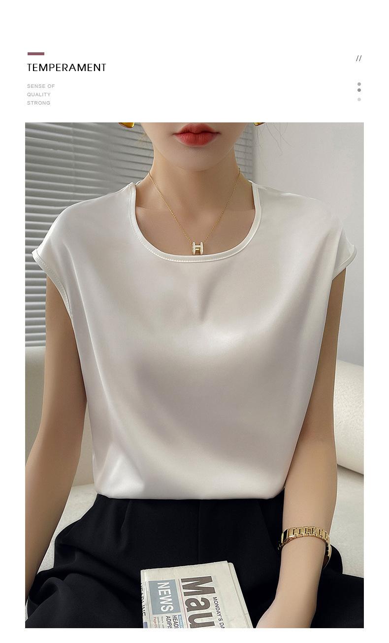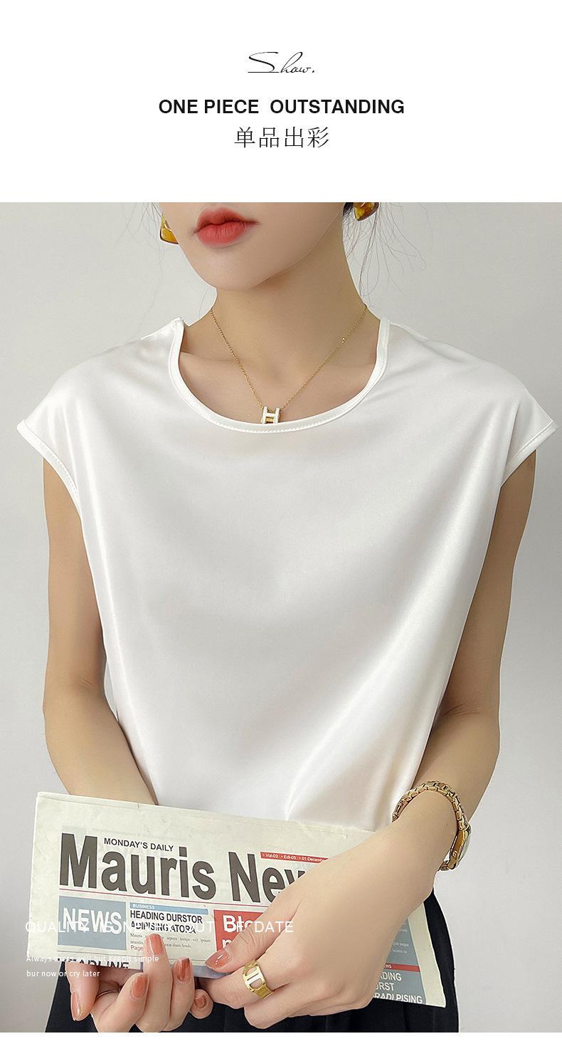 Camisola de Satén de Cuello Redondo para Mujer Verano Nuevo Traje Capa Interior Camiseta Base Temperamento Suelta Top sin Mangas