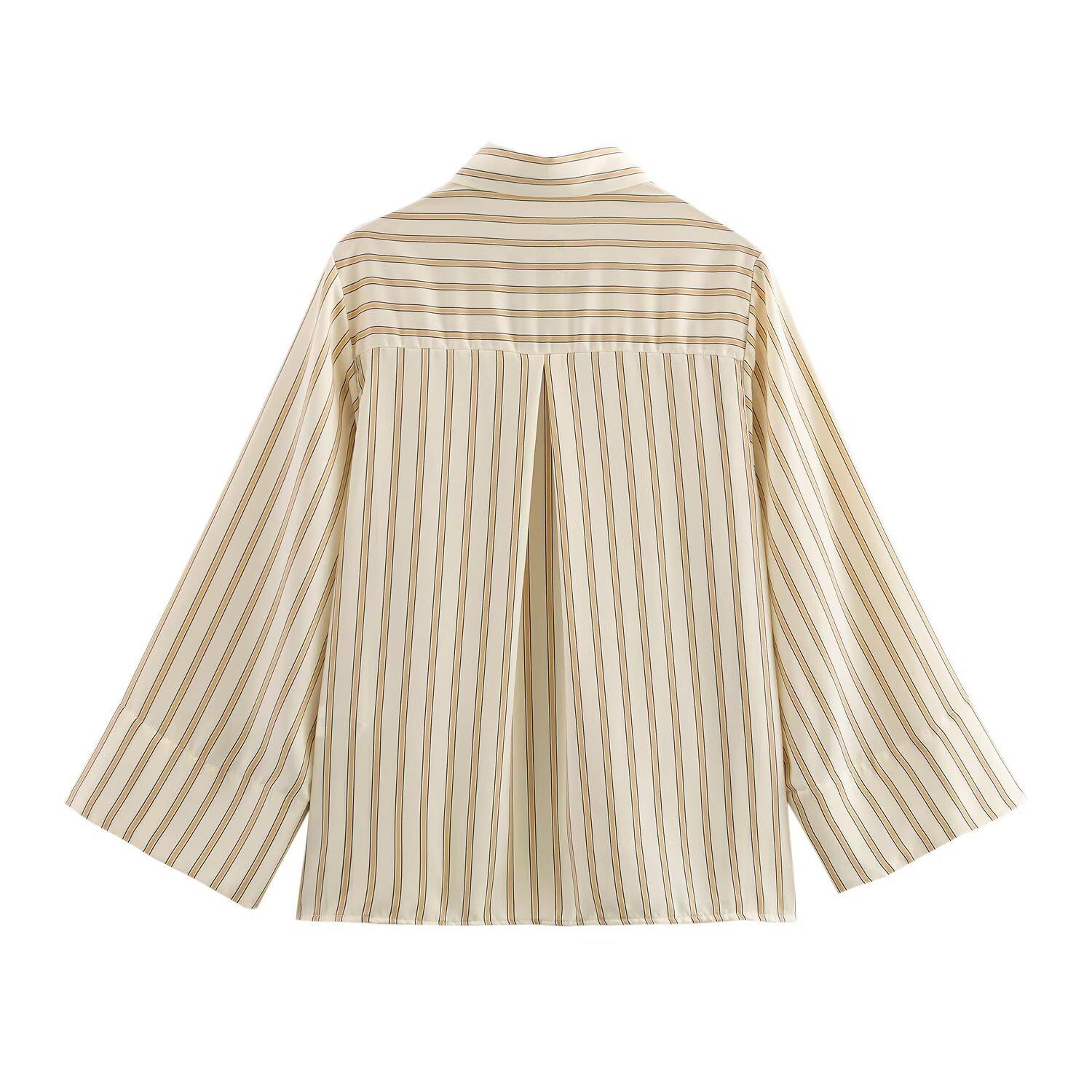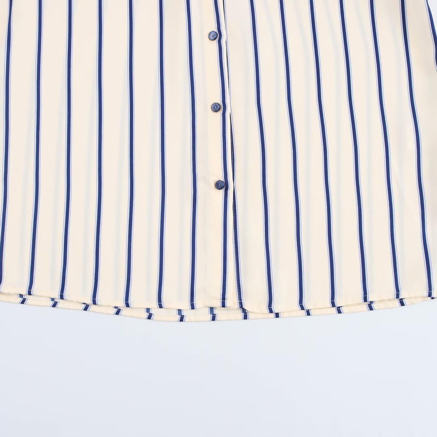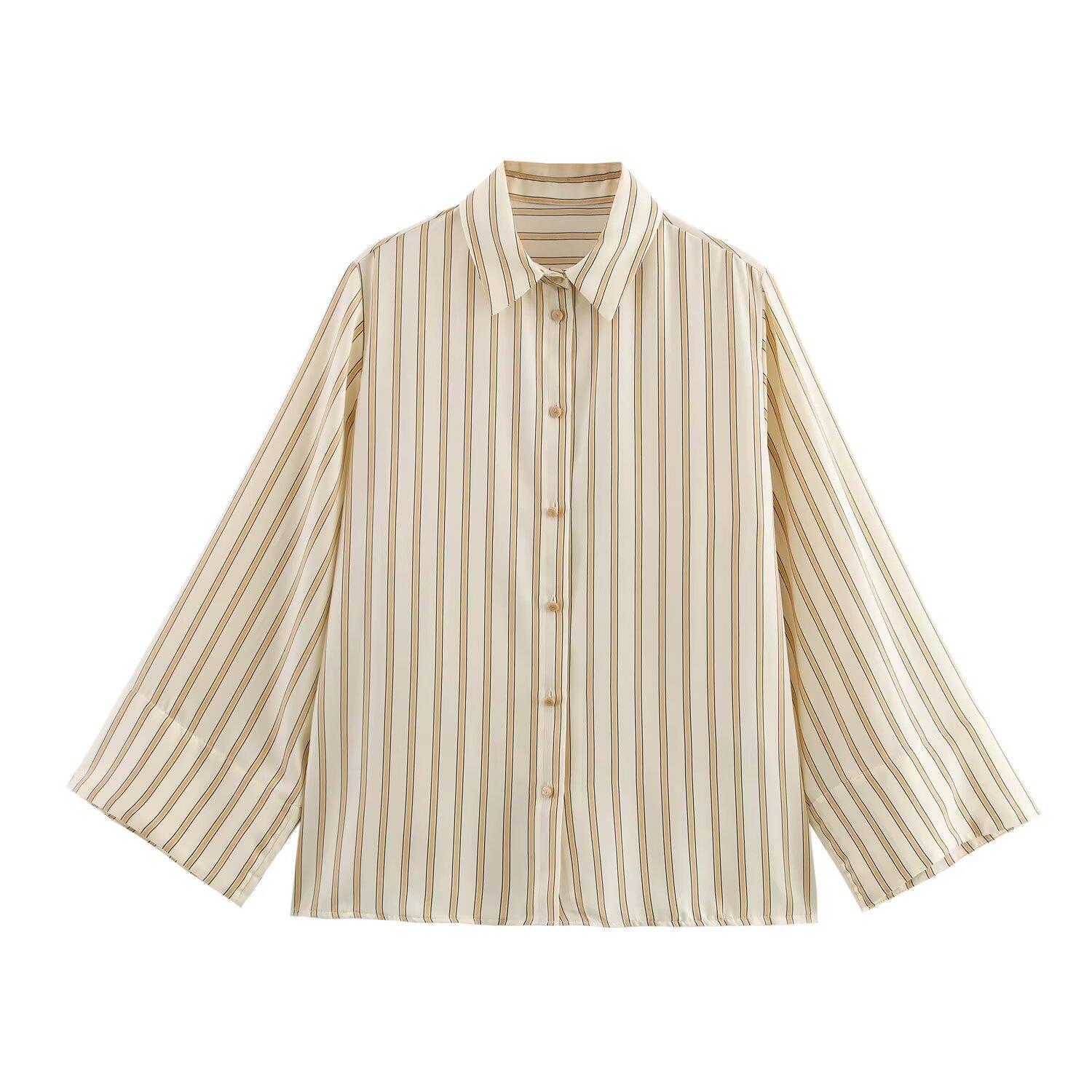 Camisa a Rayas de Moda Popular Sencilla Casual Versátil Holgada de Manga Ancha Europea y Americana Transfronteriza de Aliexpress