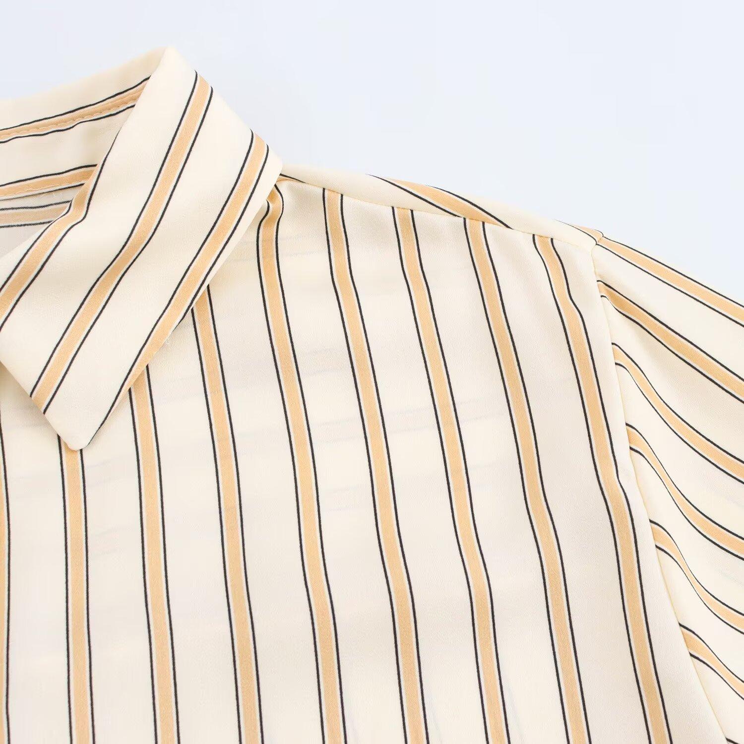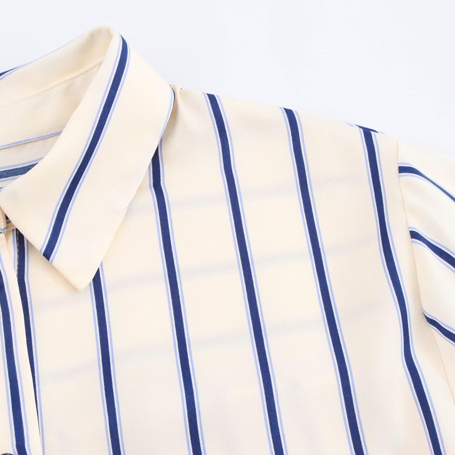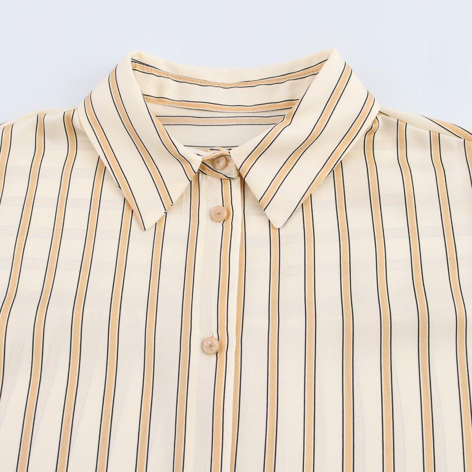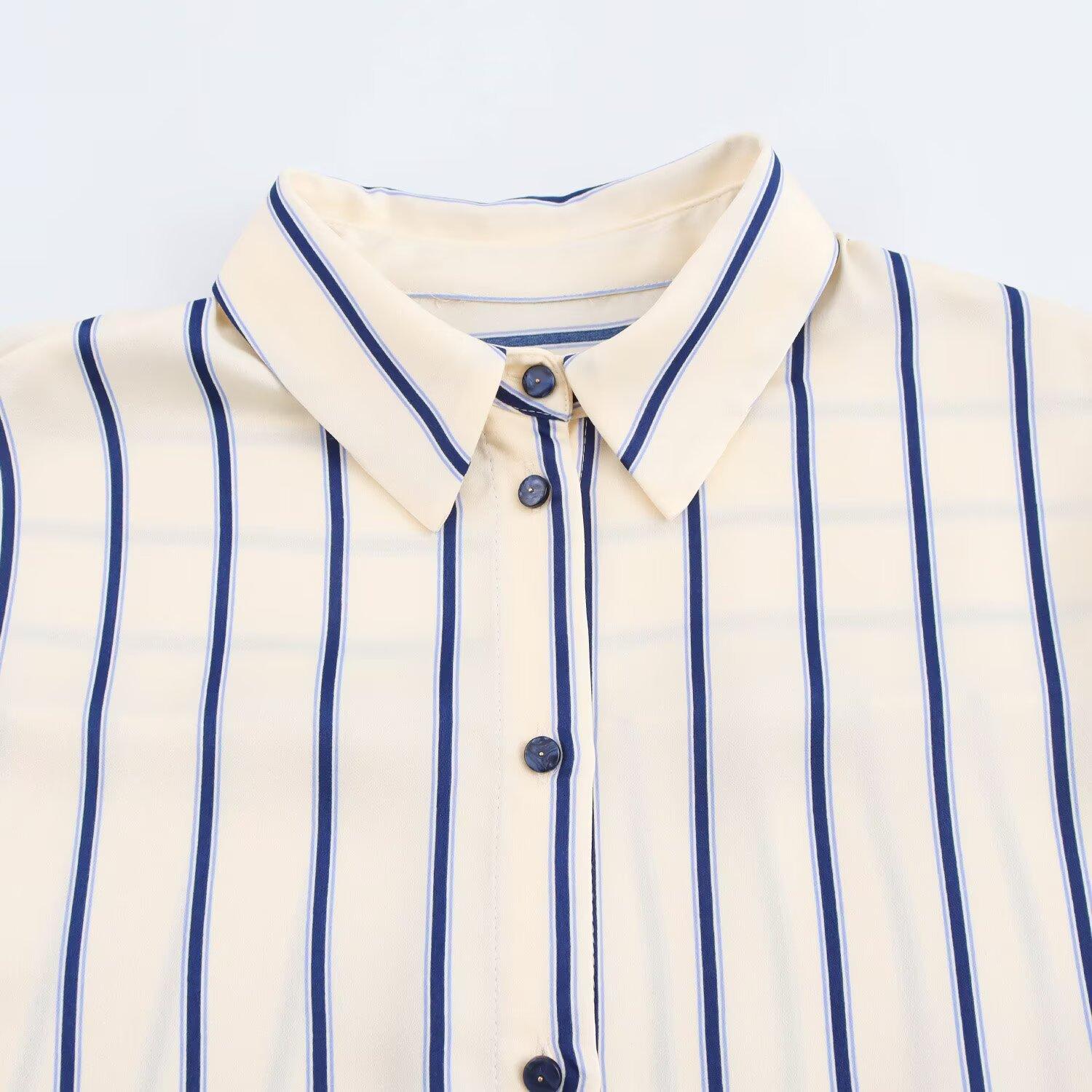 Camisa a Rayas de Moda Popular Sencilla Casual Versátil Holgada de Manga Ancha Europea y Americana Transfronteriza de Aliexpress