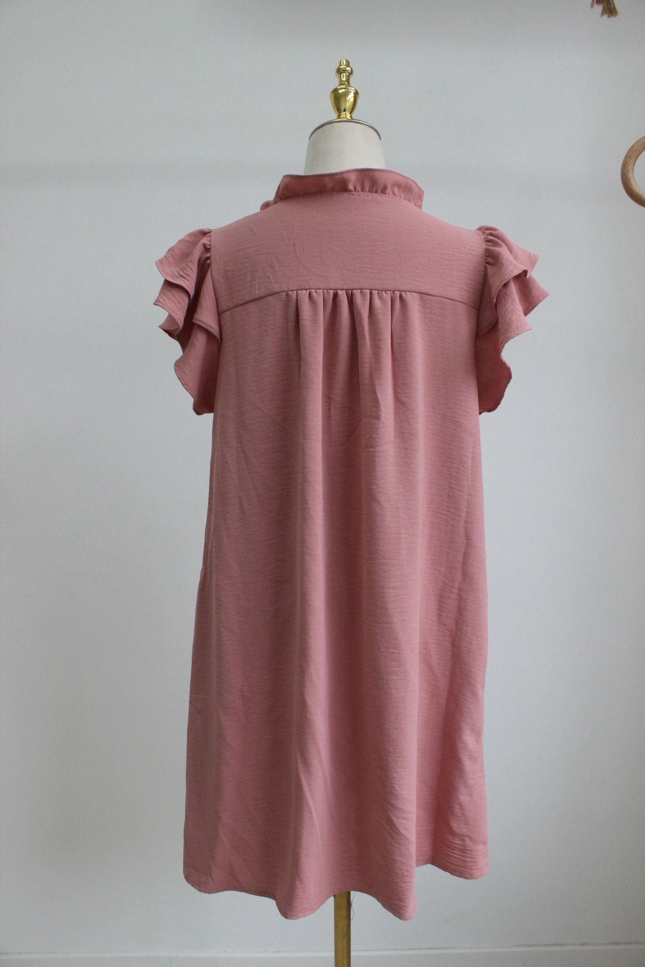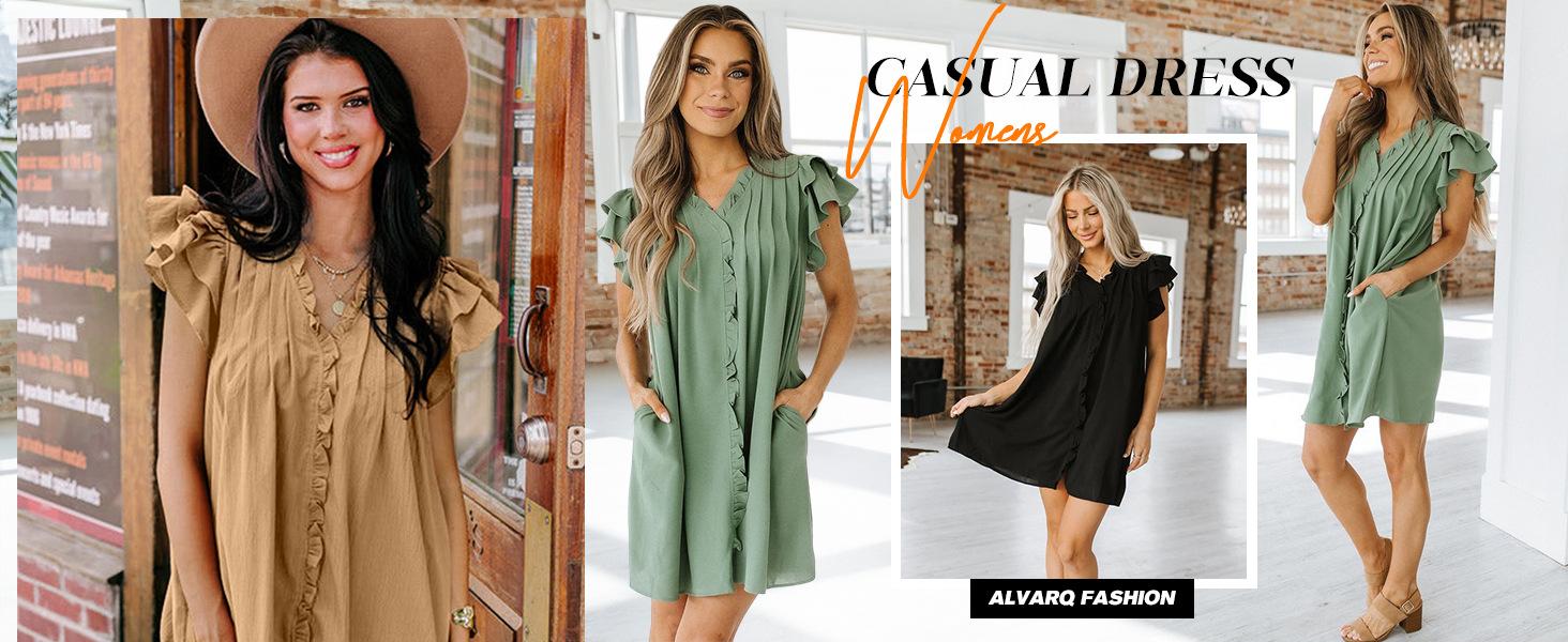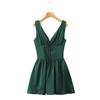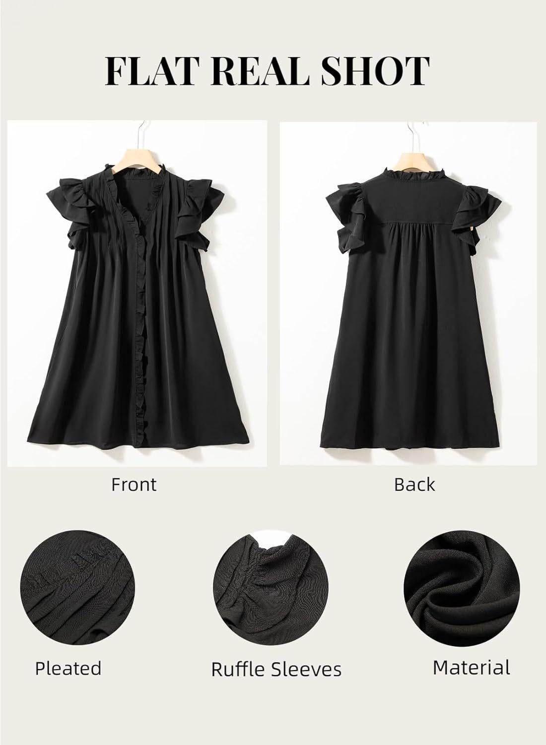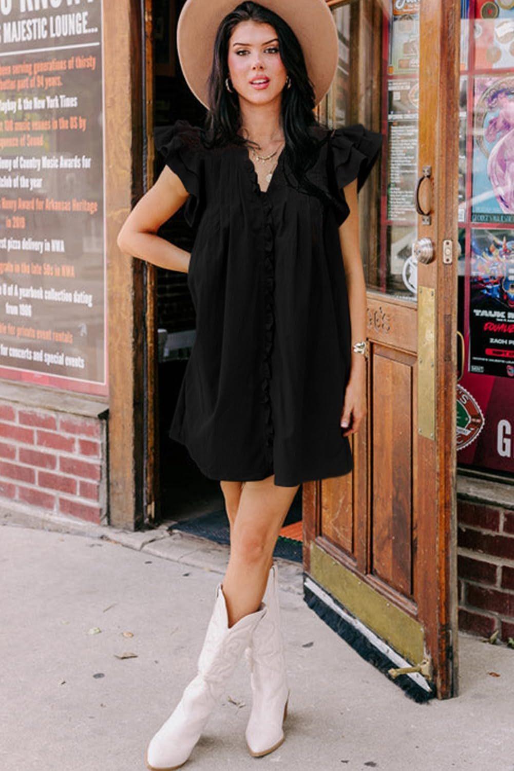 Vestido de Moda Europea y Americana con Cuello en V y Mangas Cortas con Volantes para Mujer 2024 Verano Nuevo Color Puro Suelto Recto Falda Corta para Mujer