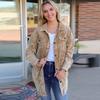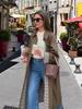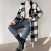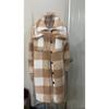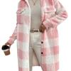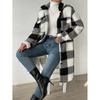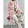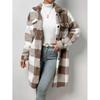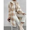 Abrigo Largo de Invierno con Solapa de Botón Abierto a Cuadros de Felpa Transfronterizo Europeo y Americano, Temperamento Suelto para Ir al Trabajo para Mujer