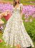 2025 Primavera Europeo y Americano Sexy Transfronterizo Floral Francés Nuevo Sexy Cuello en V Volantes Falda Colgante de Vuelo Alto