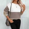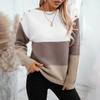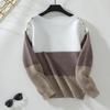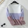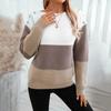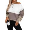 Suéter de Punto Transfronterizo Europeo y Americano Otoño e Invierno Exportación de Amazon Holgado Cuello de un Hombro Hebilla en el Hombro Costuras de Punto de Color Contrastante para Mujer