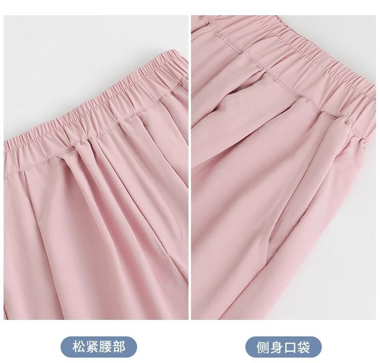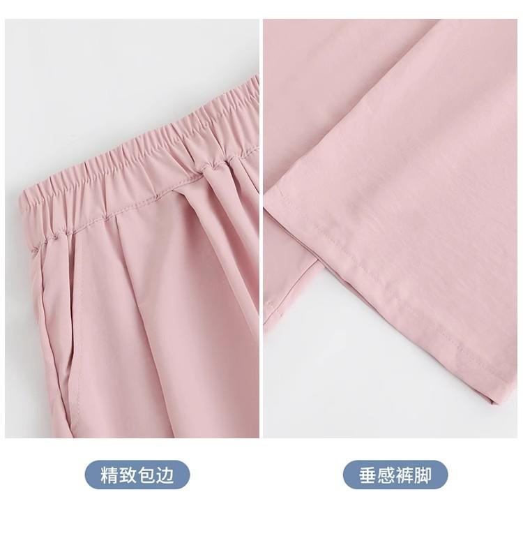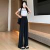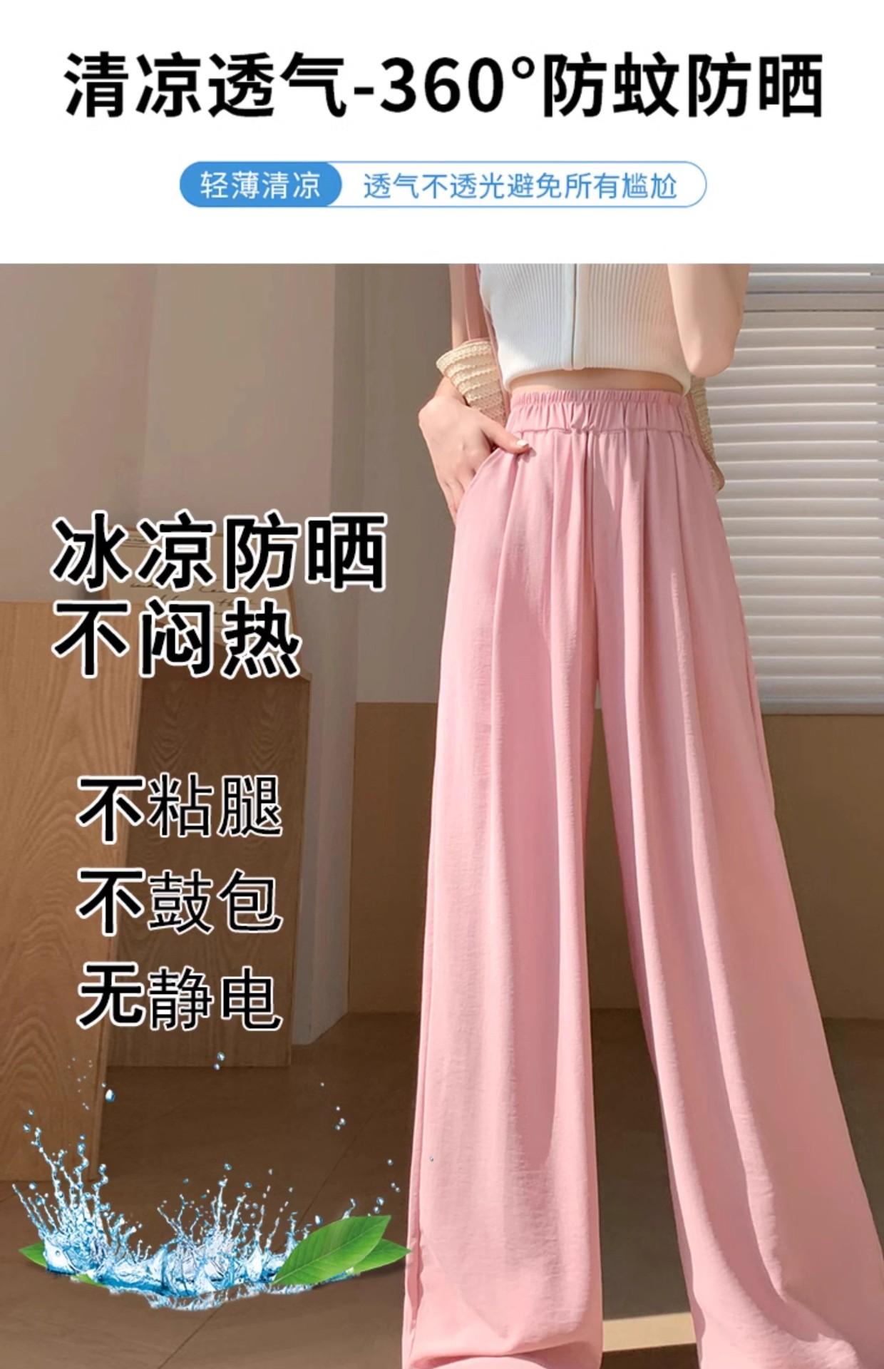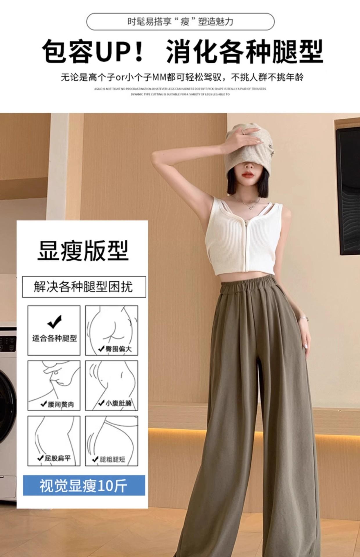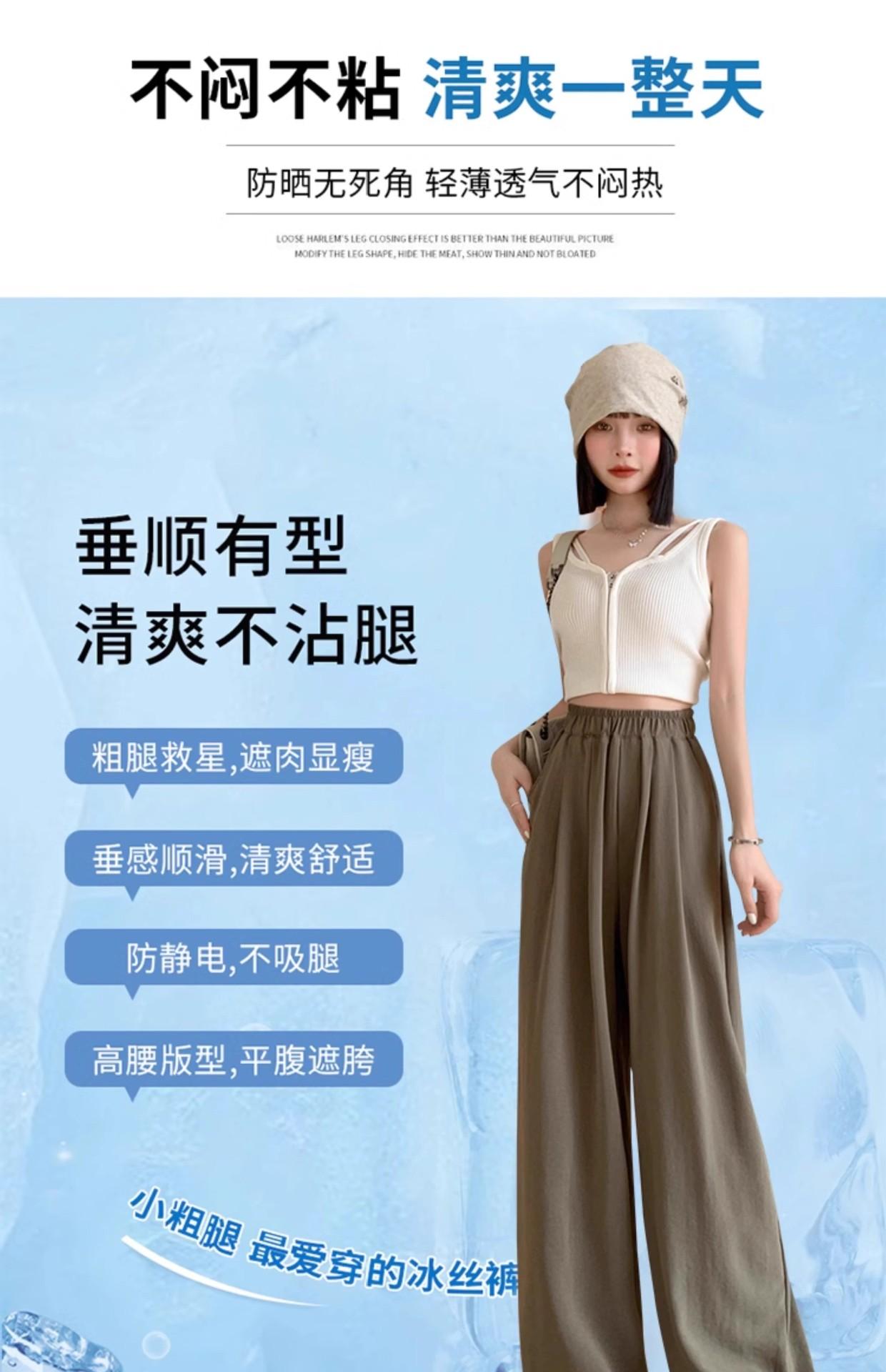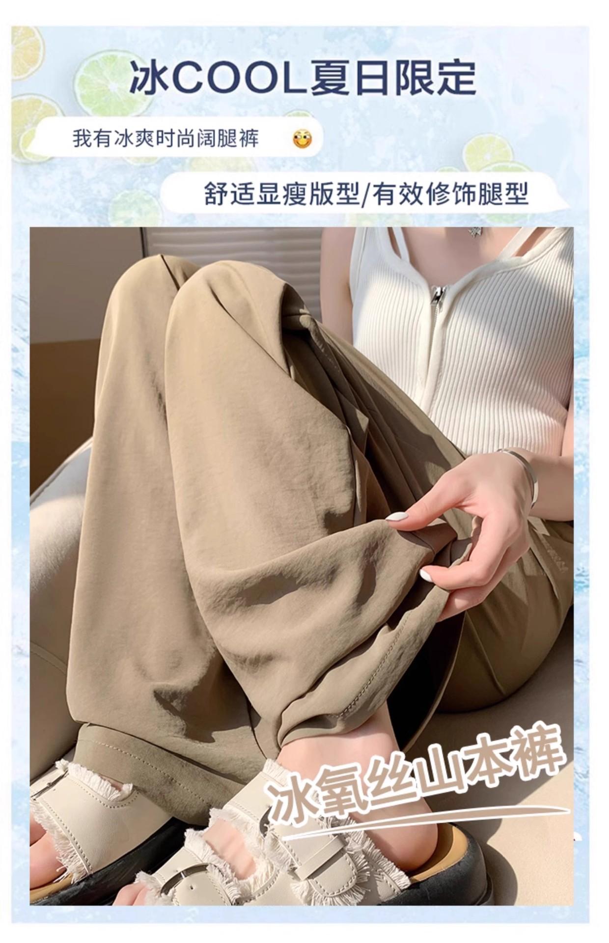 Diseño de Seda de Hielo Pantalones Casuales Plisados 2024 Verano Nuevo Estilo Pierna Larga Diseño Cintura Alta Color Sólido Casual