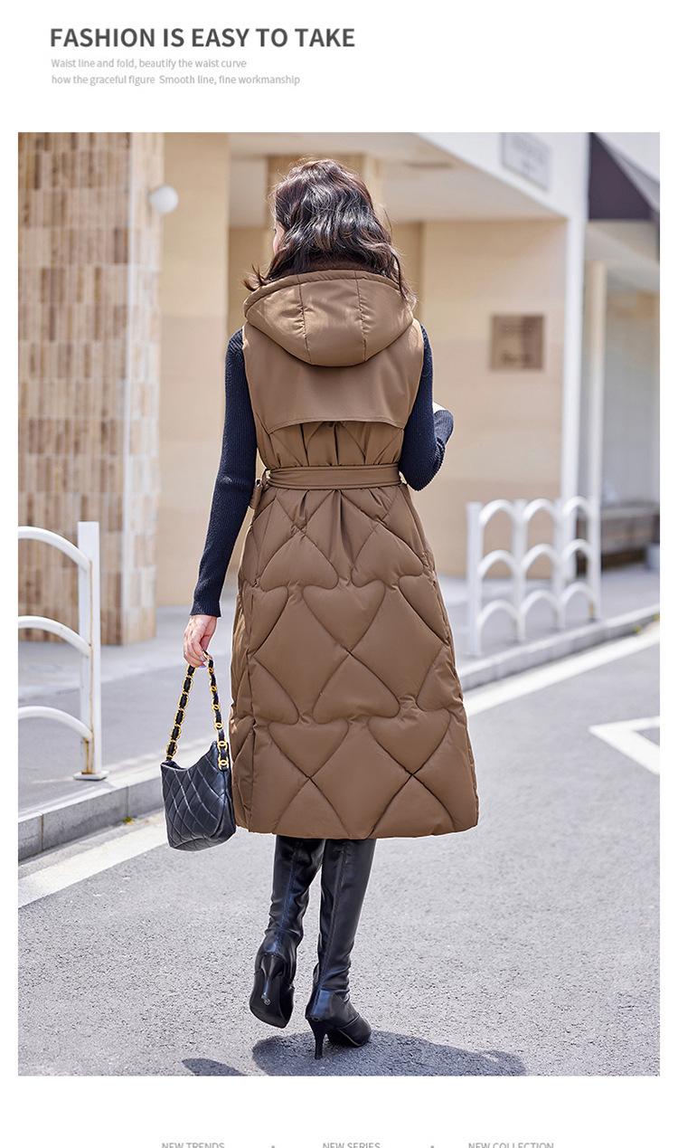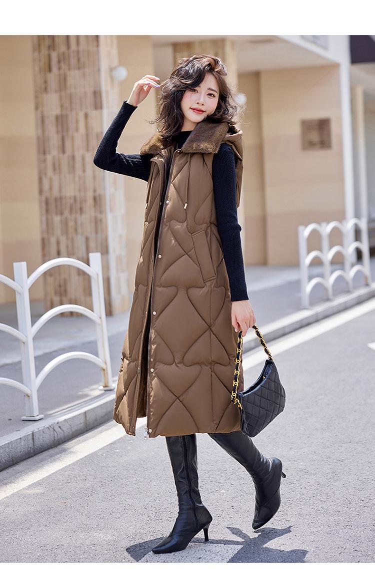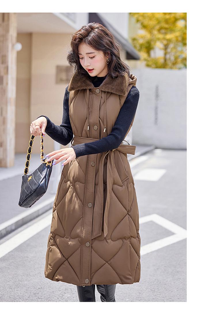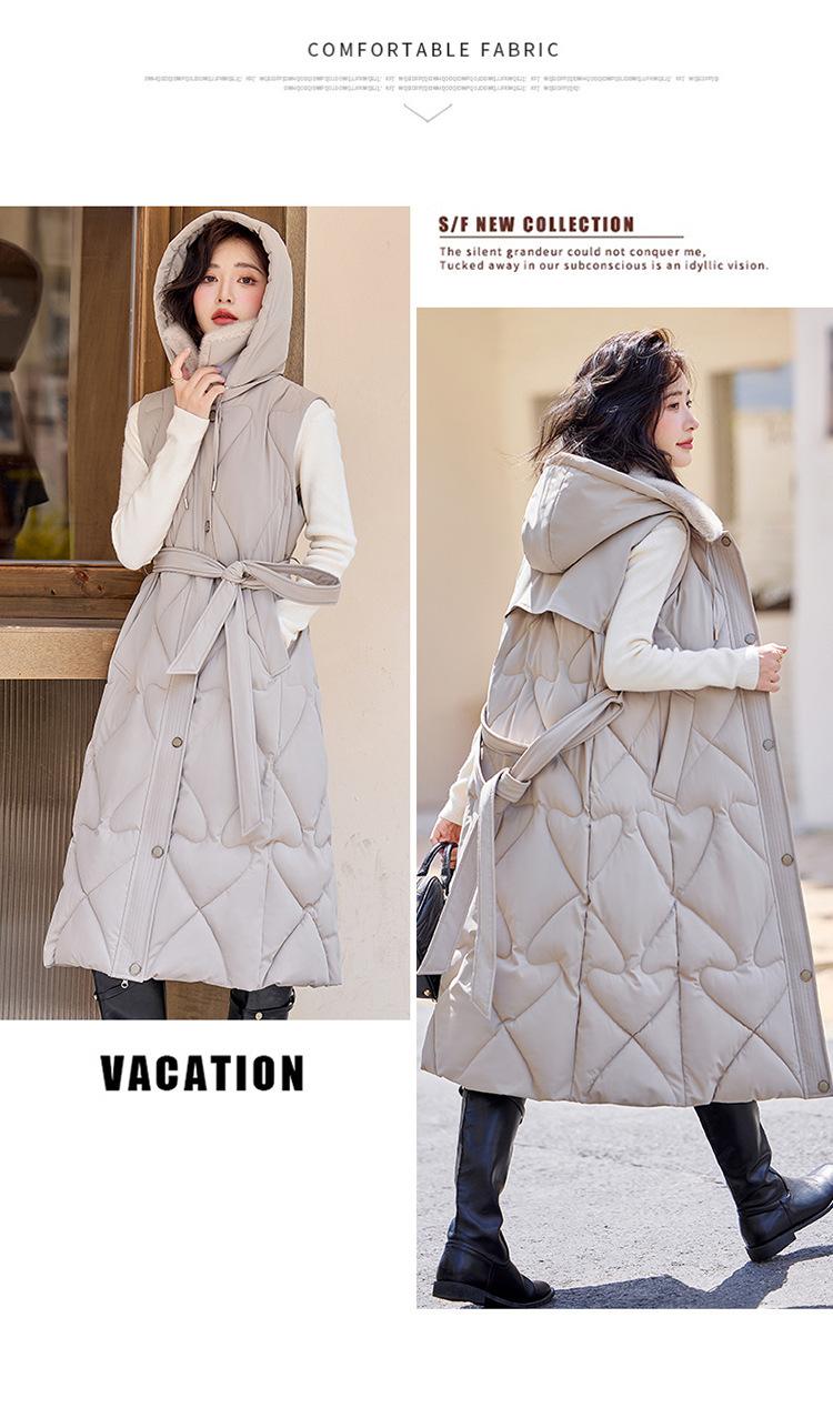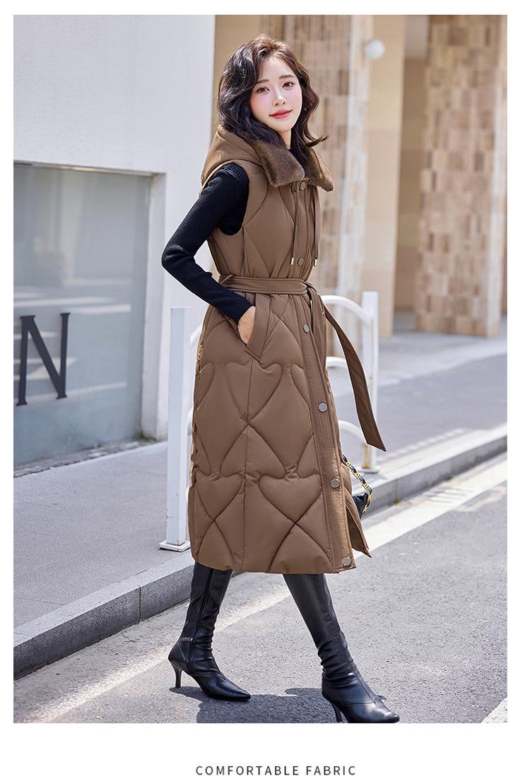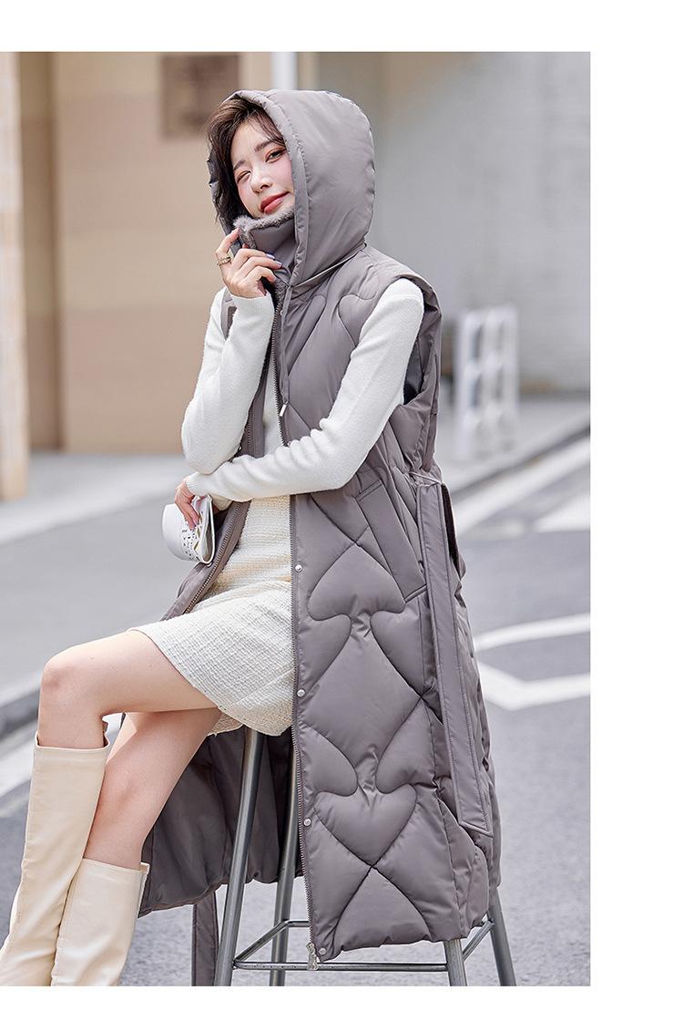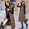 2024 Nuevo Otoño e Invierno Chaqueta Chaleco de Algodón Extendido con Capucha para Mujer Estilo Coreano Slim Elegante Sobre la Rodilla Chaleco de Algodón Versátil