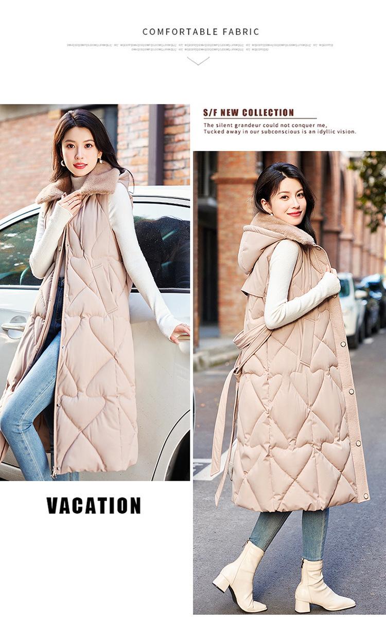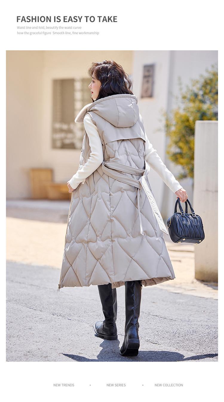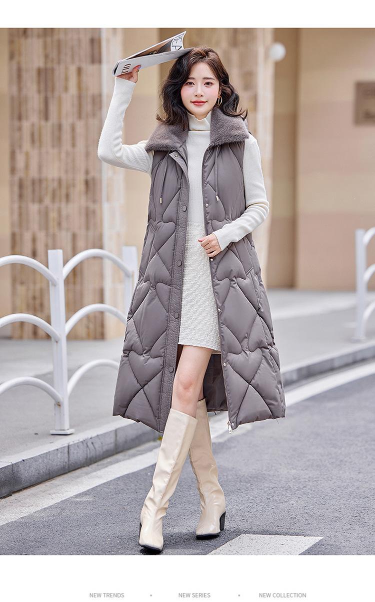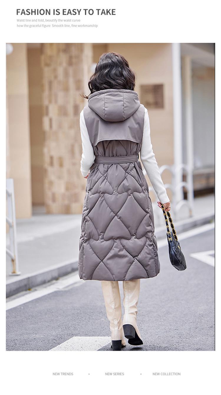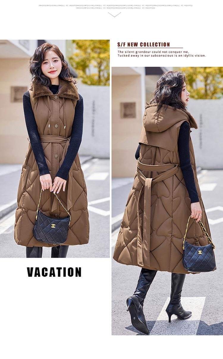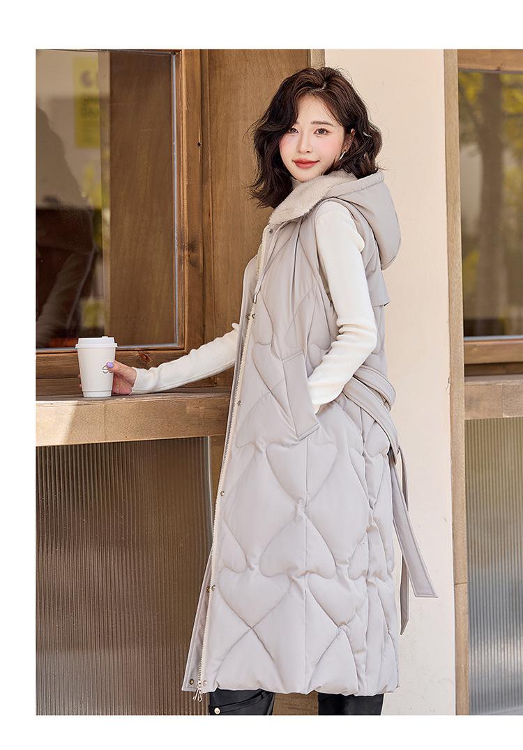 2024 Nuevo Otoño e Invierno Chaqueta Chaleco de Algodón Extendido con Capucha para Mujer Estilo Coreano Slim Elegante Sobre la Rodilla Chaleco de Algodón Versátil