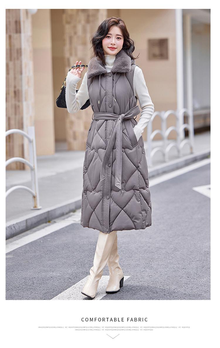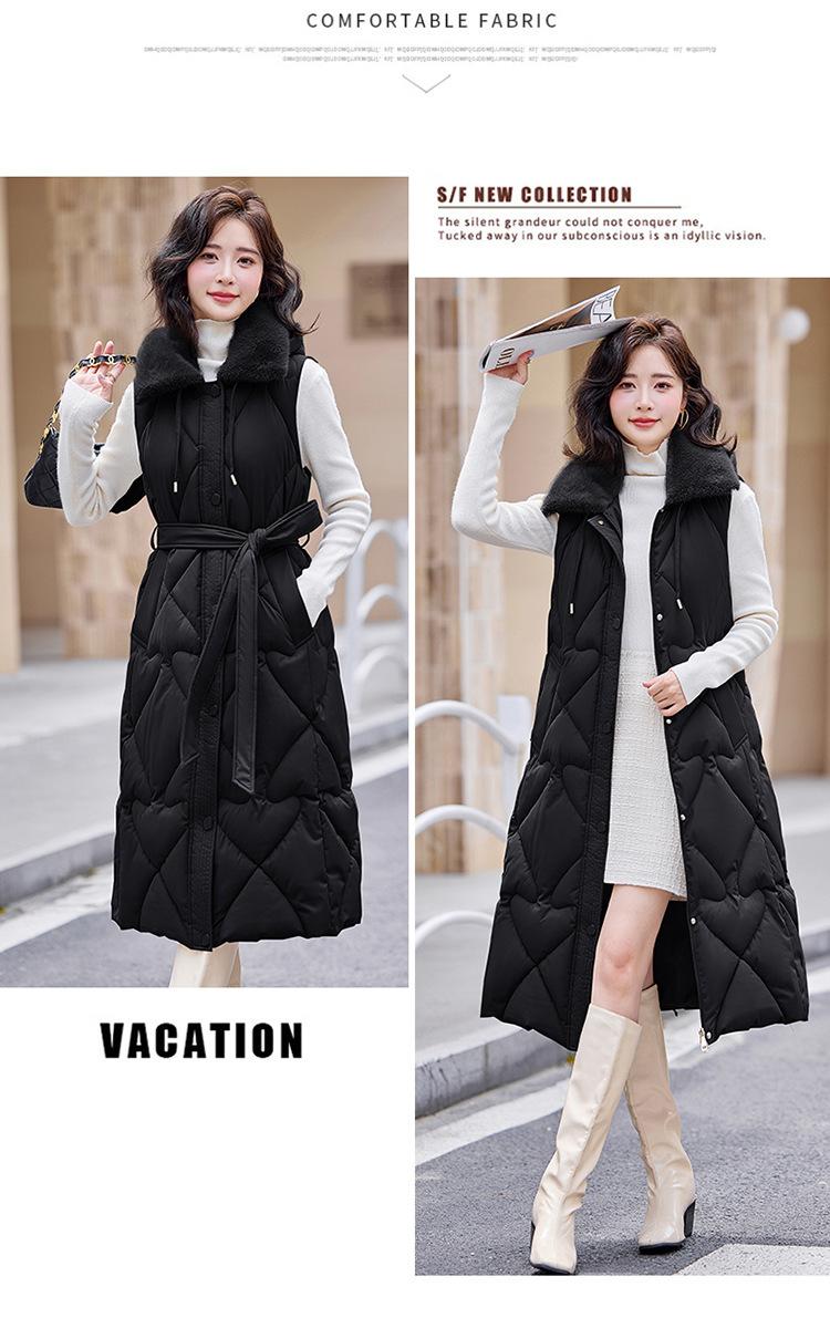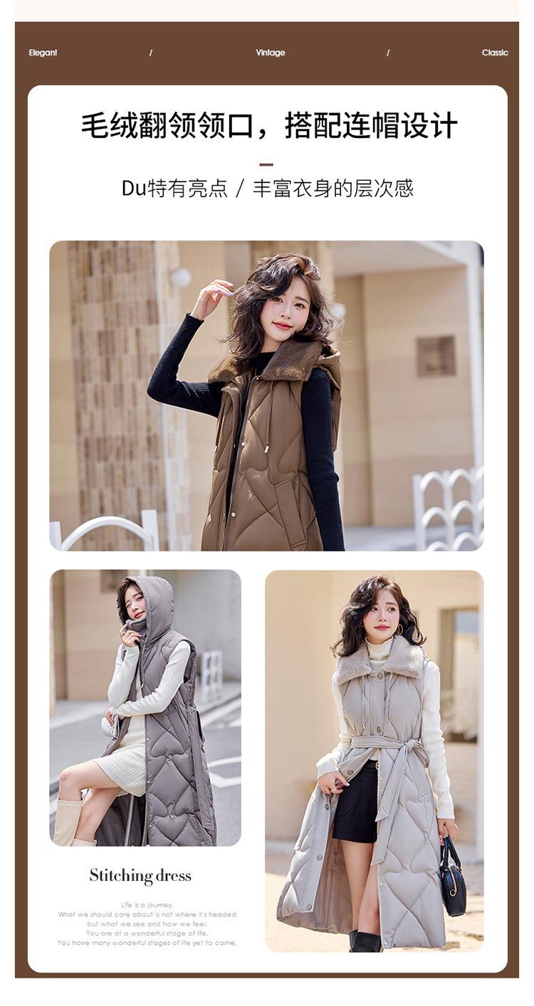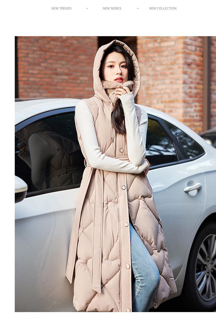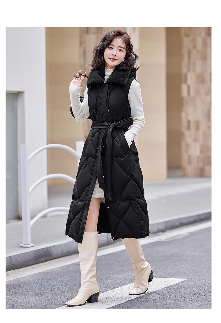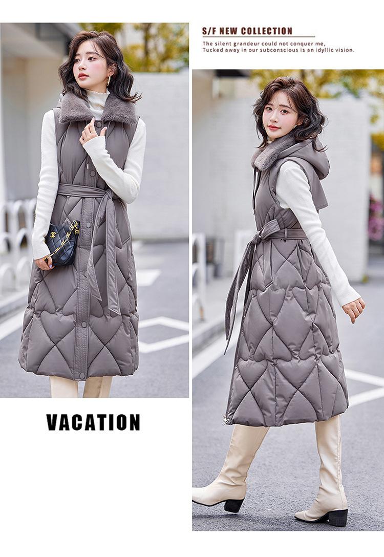 2024 Nuevo Otoño e Invierno Chaqueta Chaleco de Algodón Extendido con Capucha para Mujer Estilo Coreano Slim Elegante Sobre la Rodilla Chaleco de Algodón Versátil