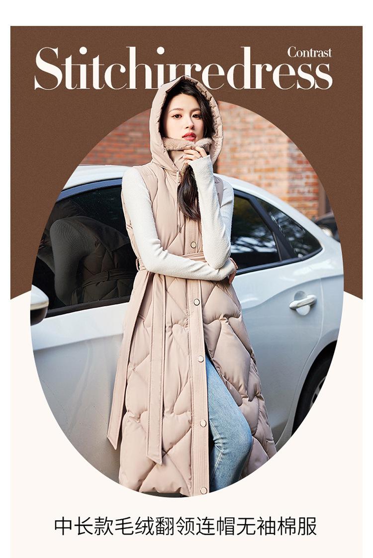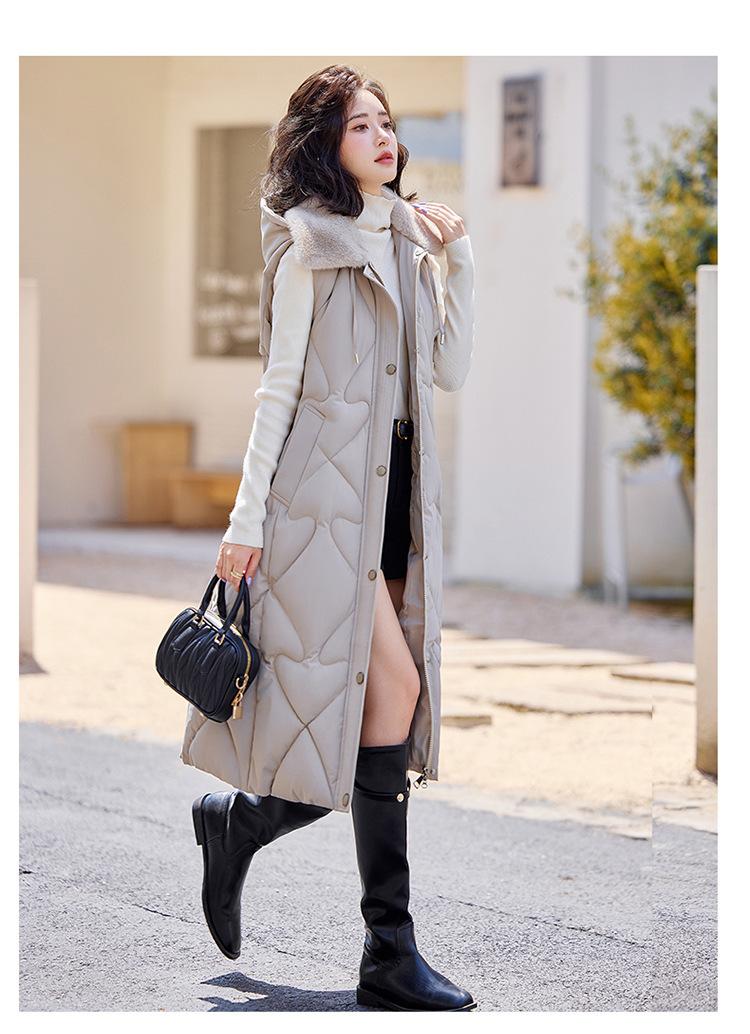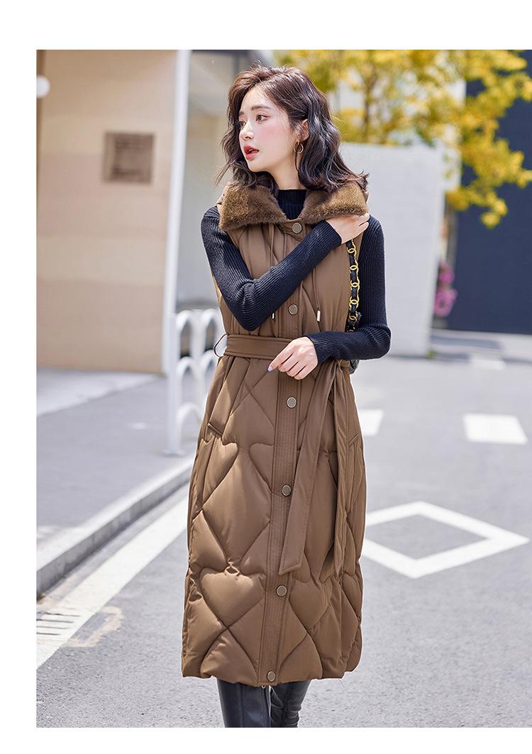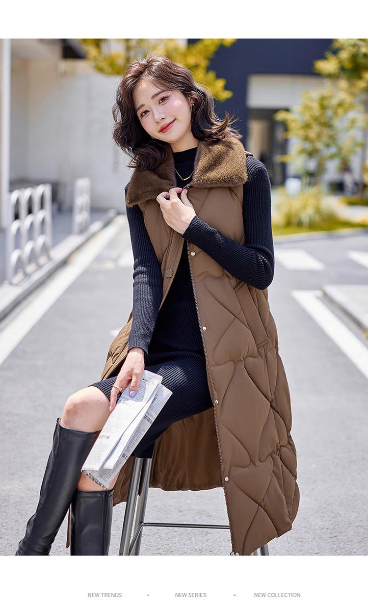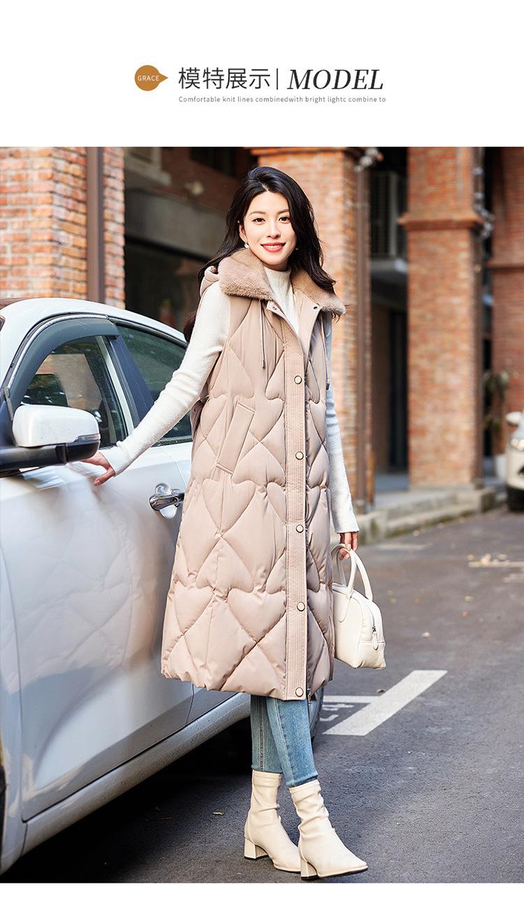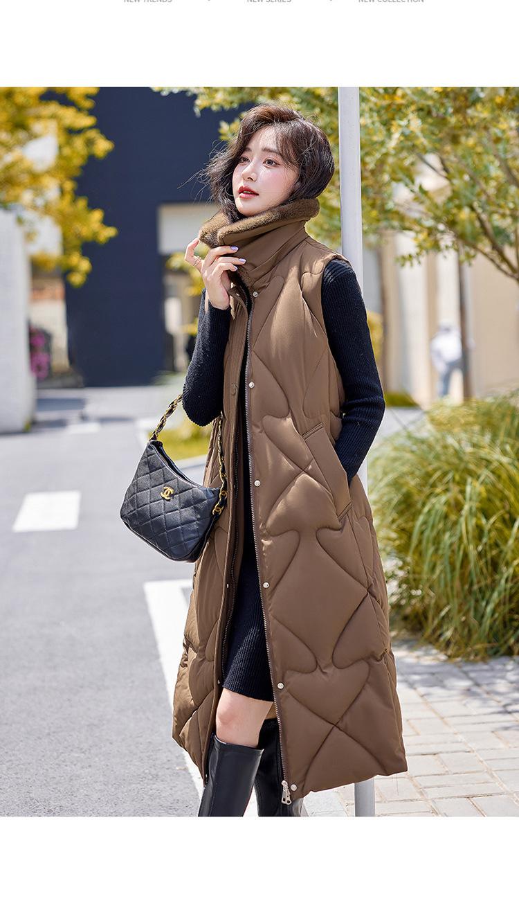 2024 Nuevo Otoño e Invierno Chaqueta Chaleco de Algodón Extendido con Capucha para Mujer Estilo Coreano Slim Elegante Sobre la Rodilla Chaleco de Algodón Versátil