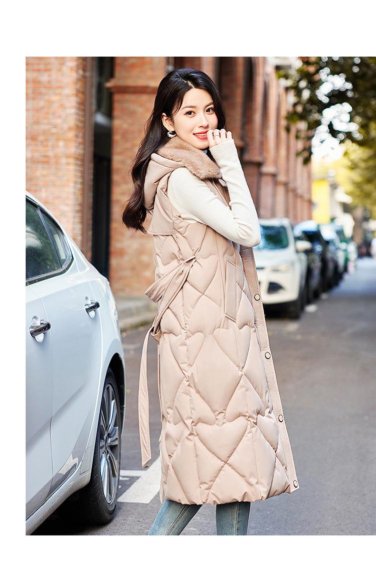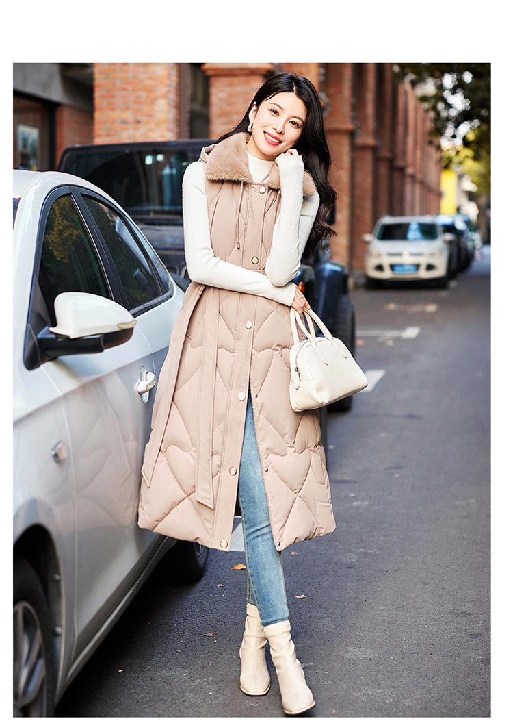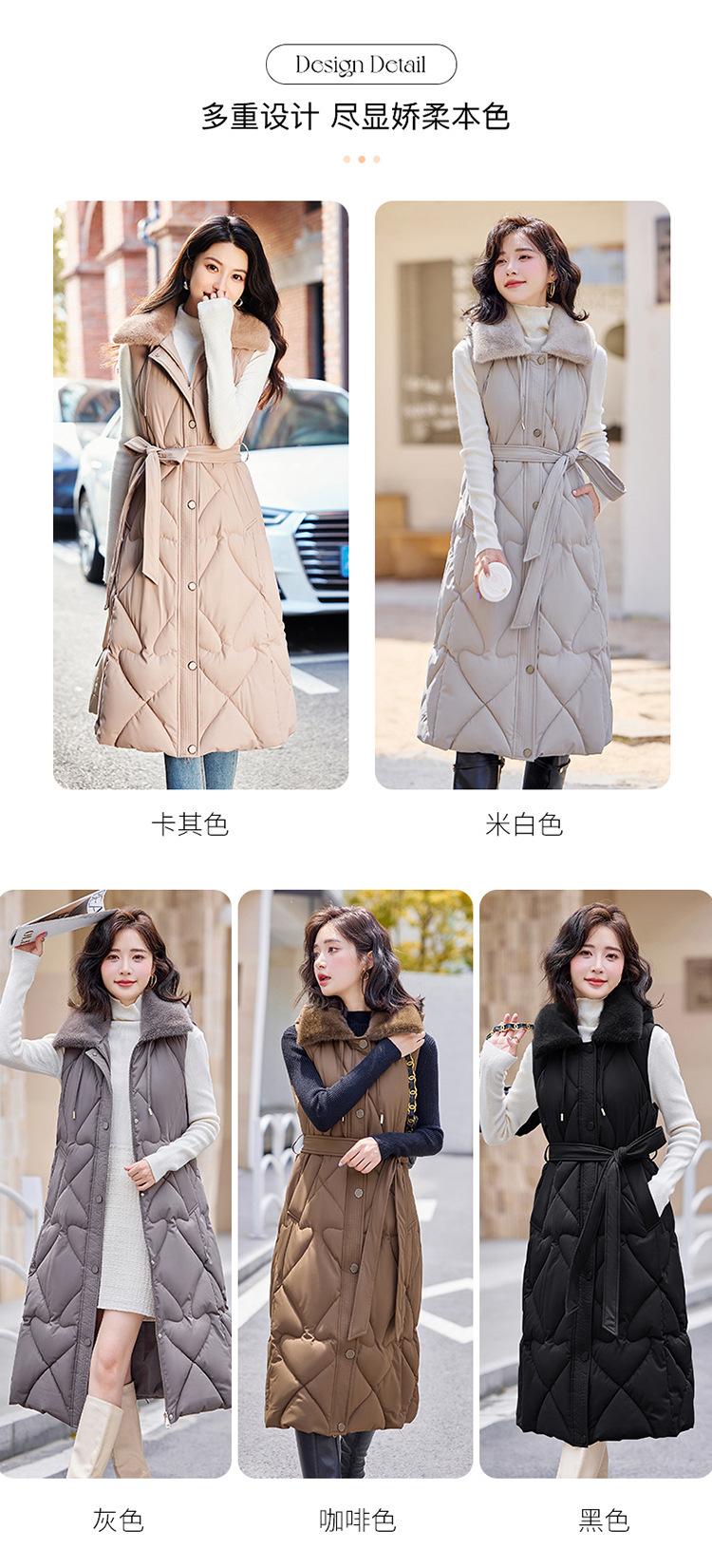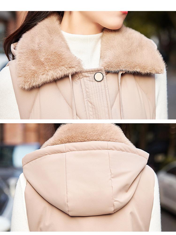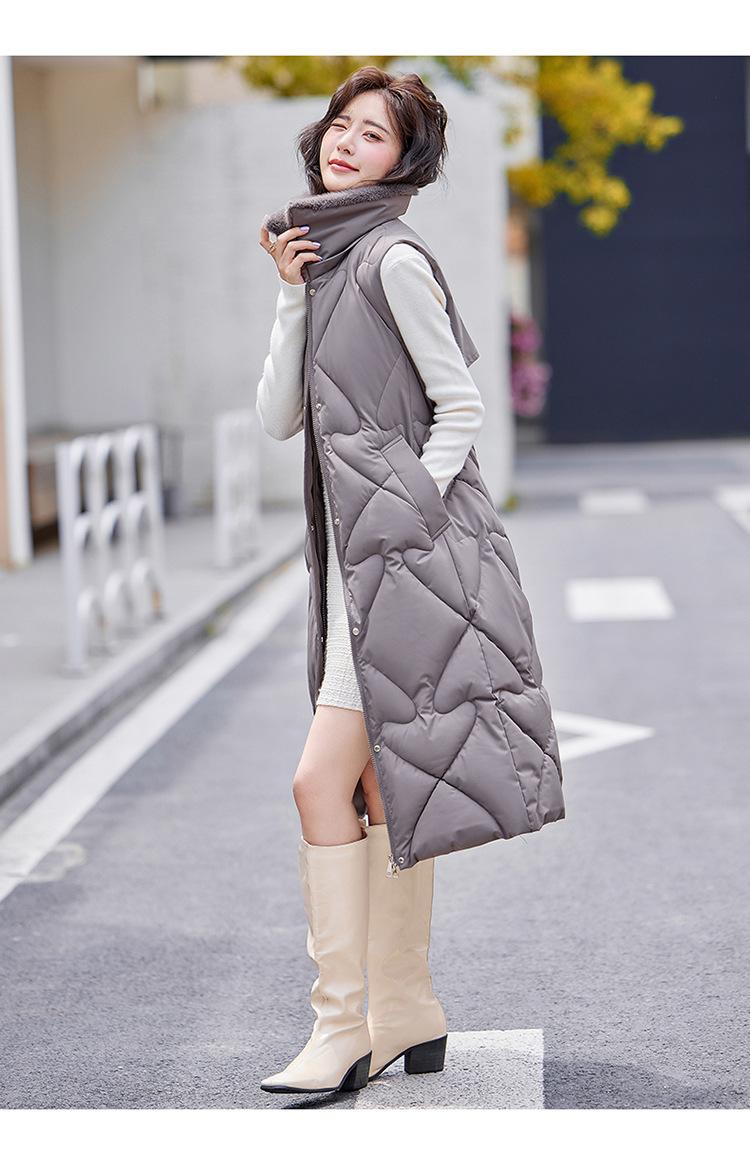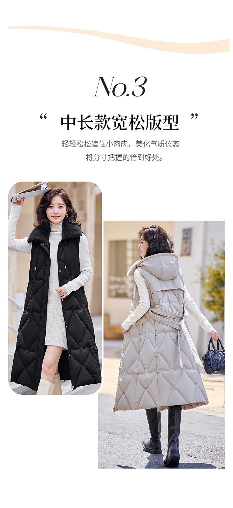 2024 Nuevo Otoño e Invierno Chaqueta Chaleco de Algodón Extendido con Capucha para Mujer Estilo Coreano Slim Elegante Sobre la Rodilla Chaleco de Algodón Versátil