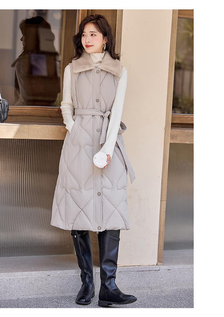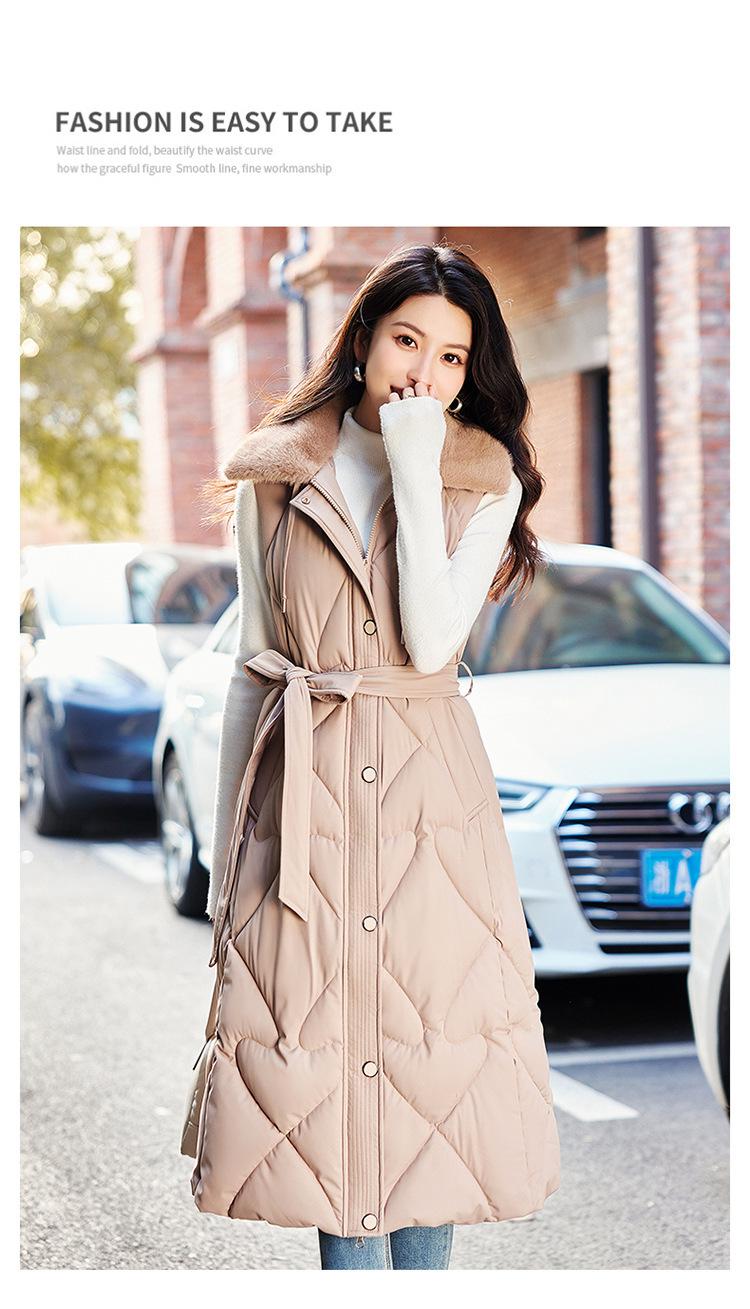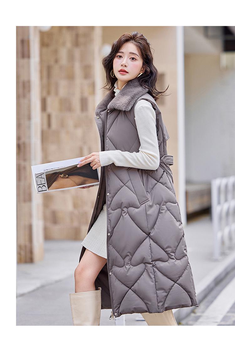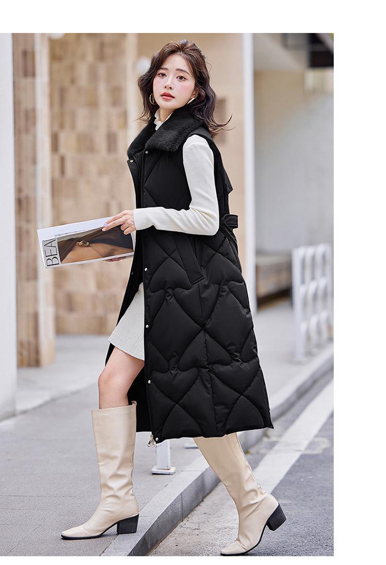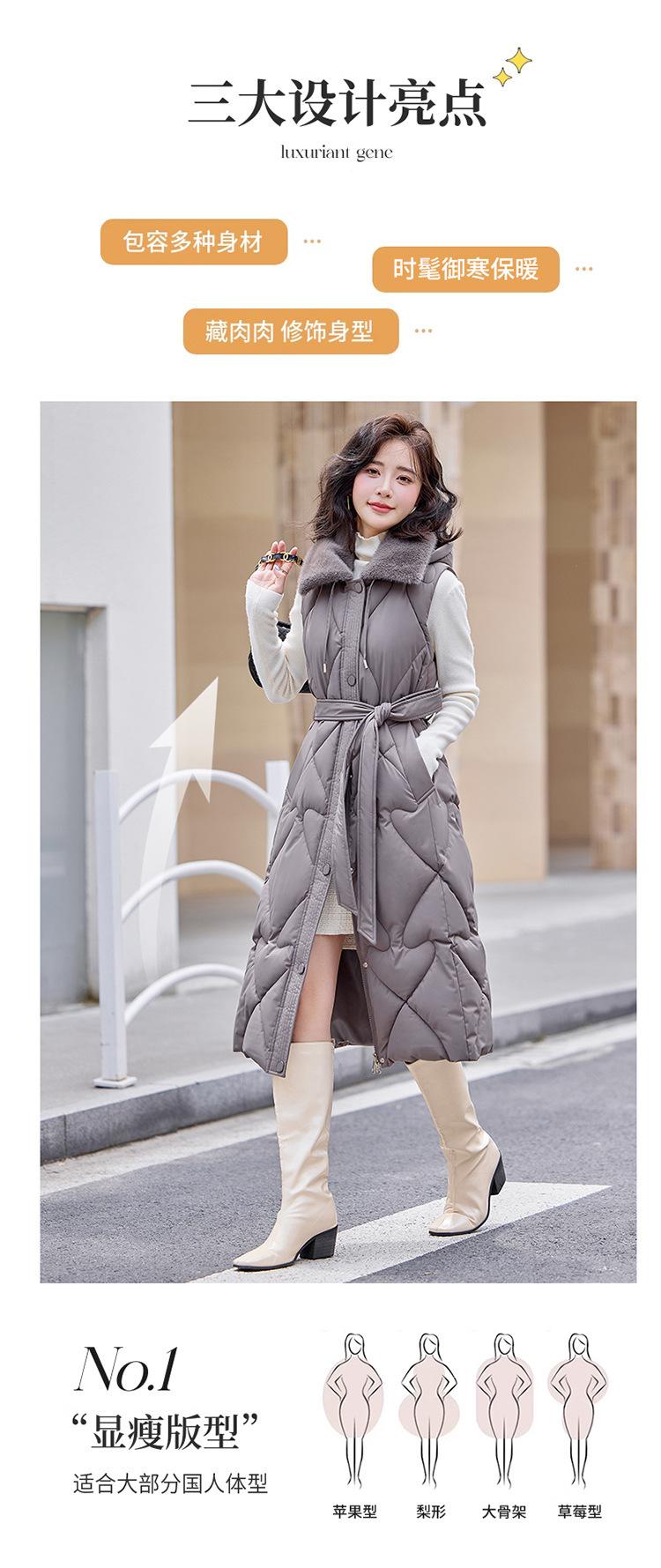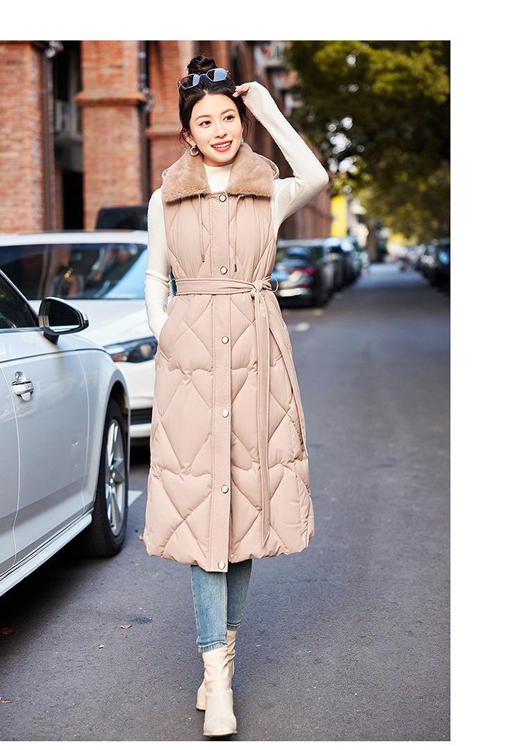 2024 Nuevo Otoño e Invierno Chaqueta Chaleco de Algodón Extendido con Capucha para Mujer Estilo Coreano Slim Elegante Sobre la Rodilla Chaleco de Algodón Versátil
