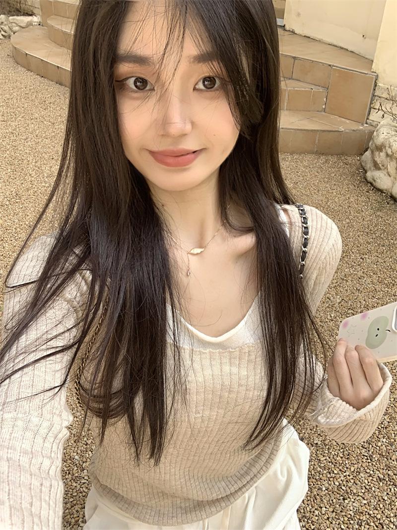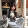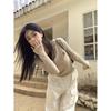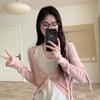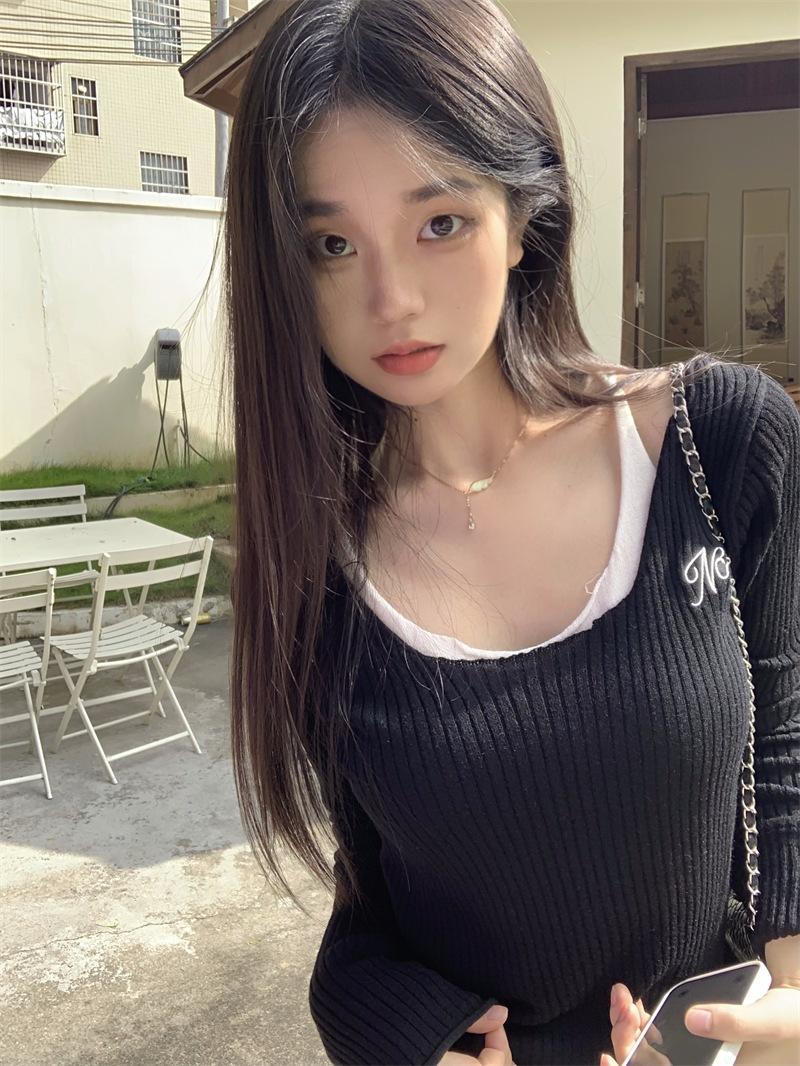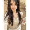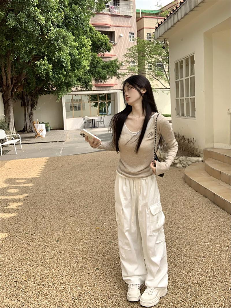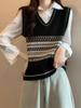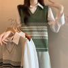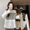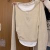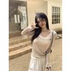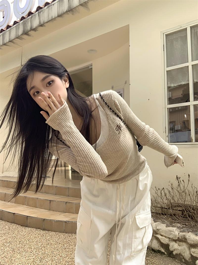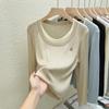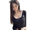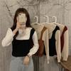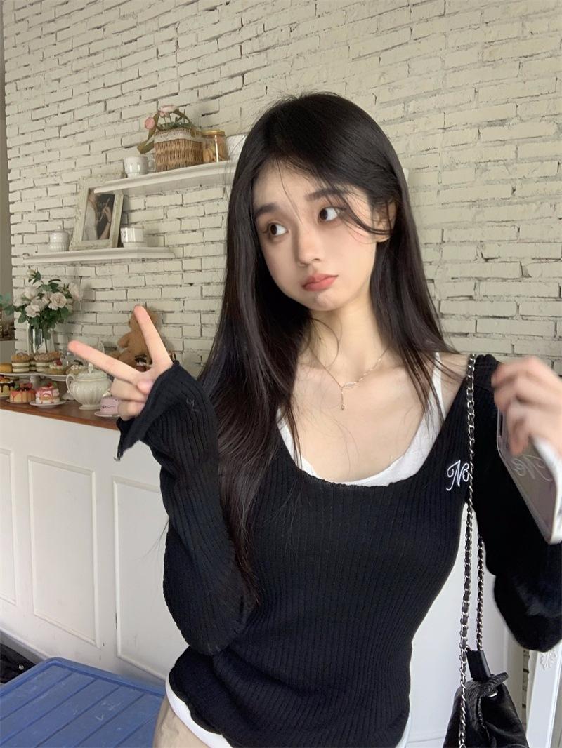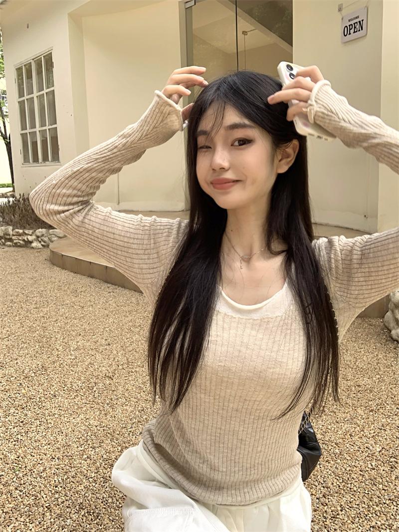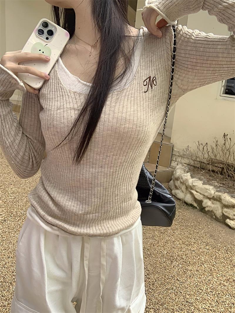 Tejido de punto de cuello halter de manga larga de dos piezas falsas para mujer en otoño Estilo coreano Chic Camiseta básica con empalme de color contrastante Top exterior Imitación algodón