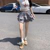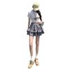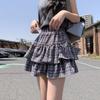 Falda Escocesa con Volantes Elástica para Mujer Verano Nuevo Estilo Coreano Línea A Look Adelgazante Versátil Anti-Exposición Falda Abullonada
