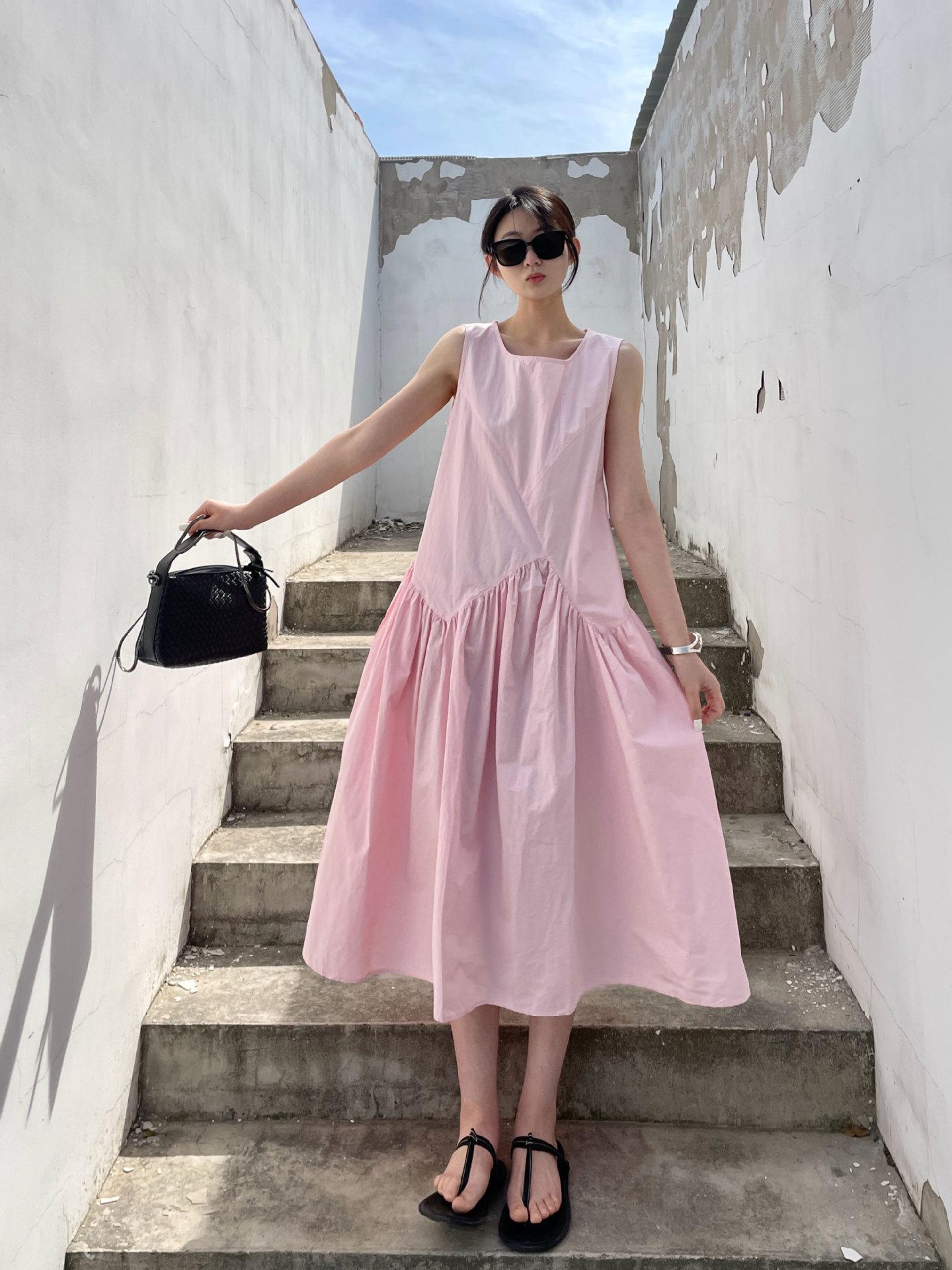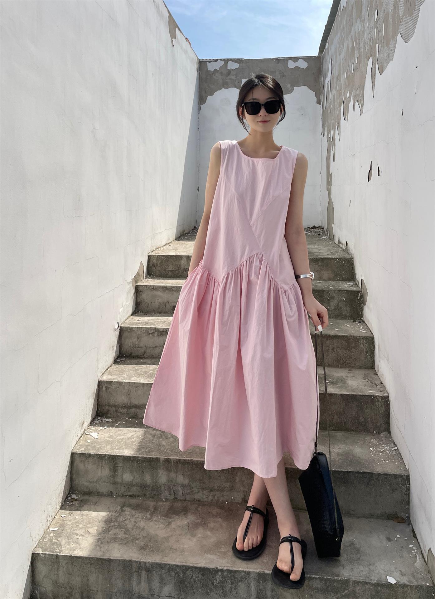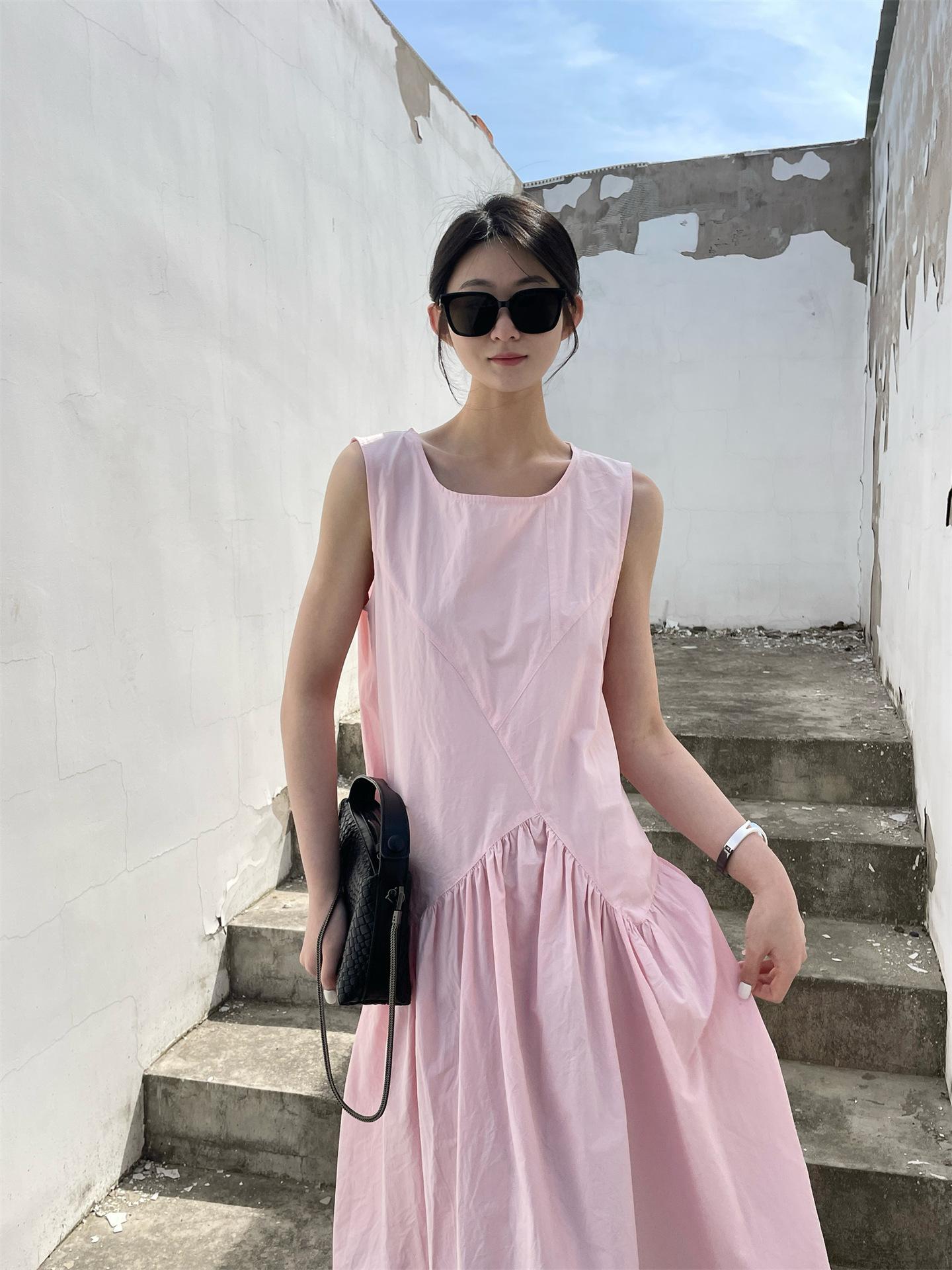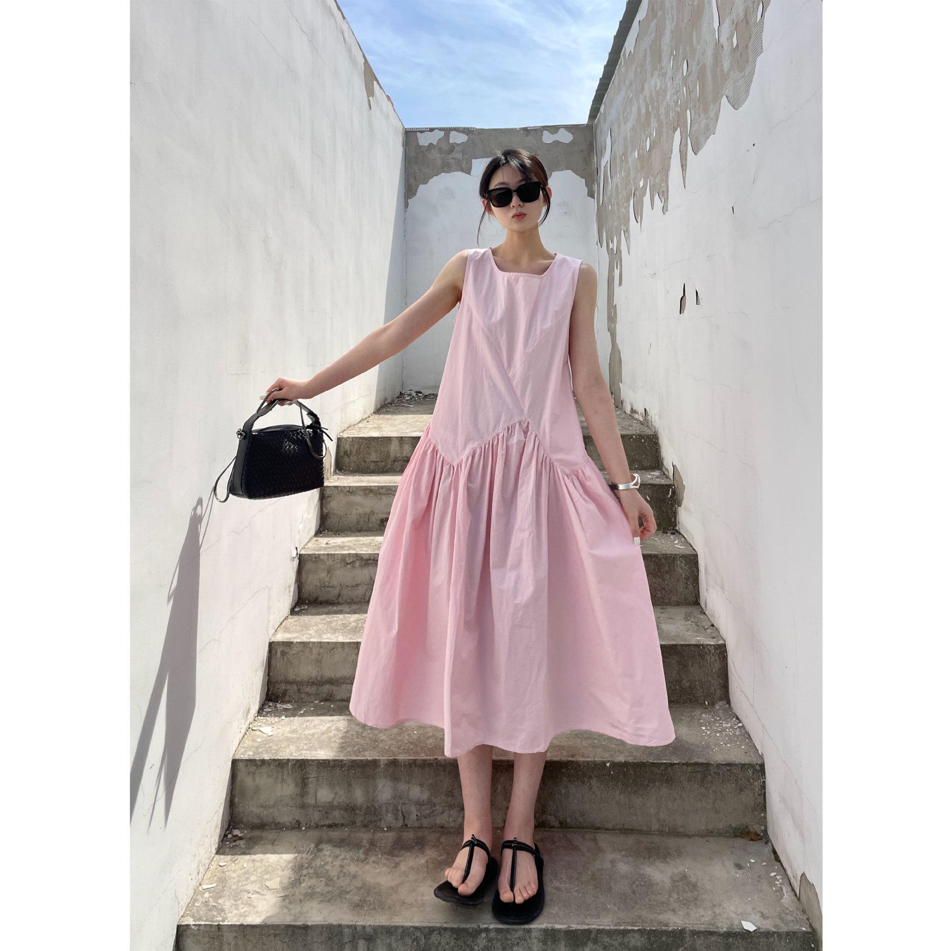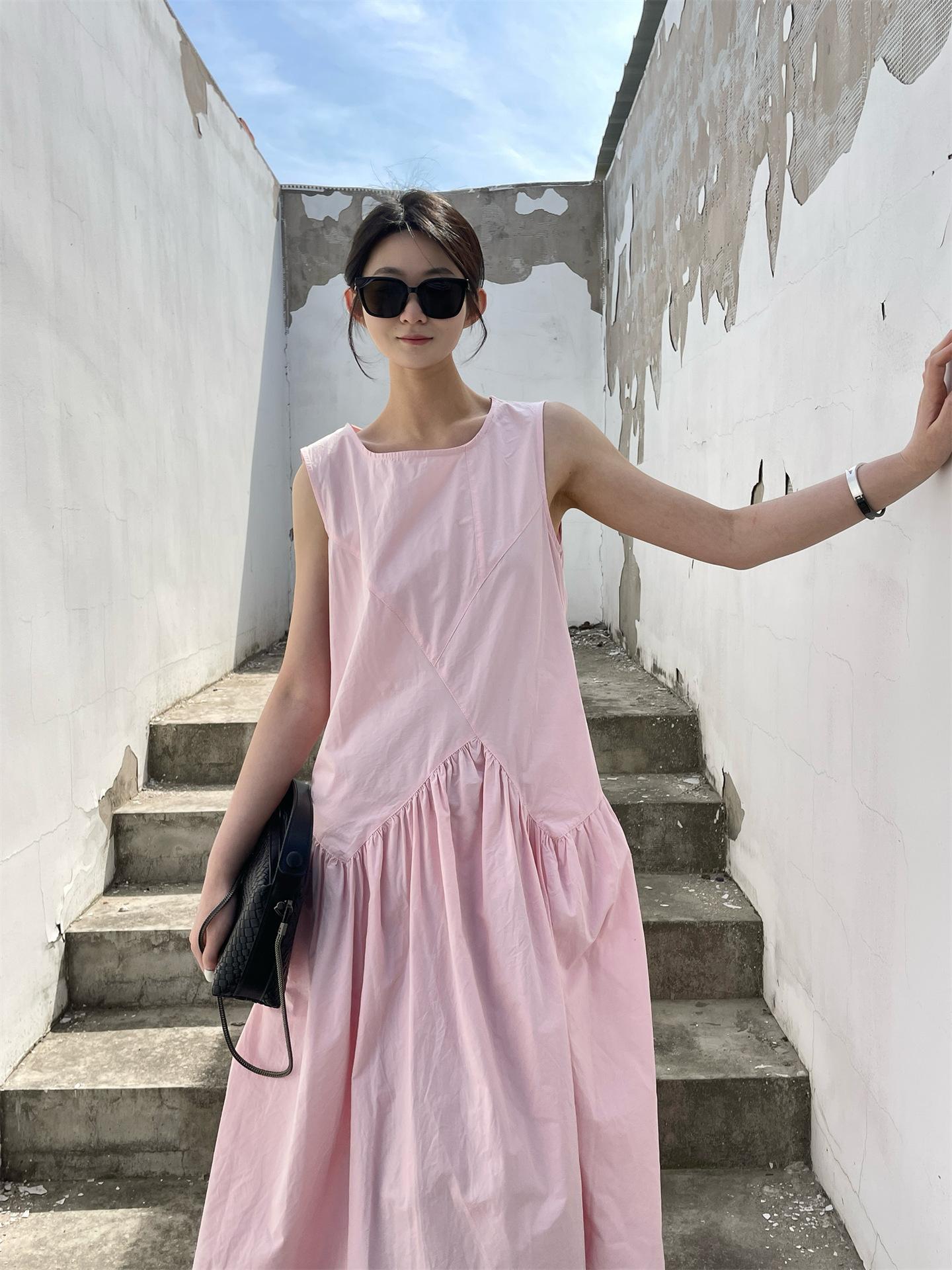 Vestido Rosa Francés de Estilo Suave sin Mangas Verano 2025 Nuevo Diseño Reductor de Edad Vestido Largo tipo Chaleco