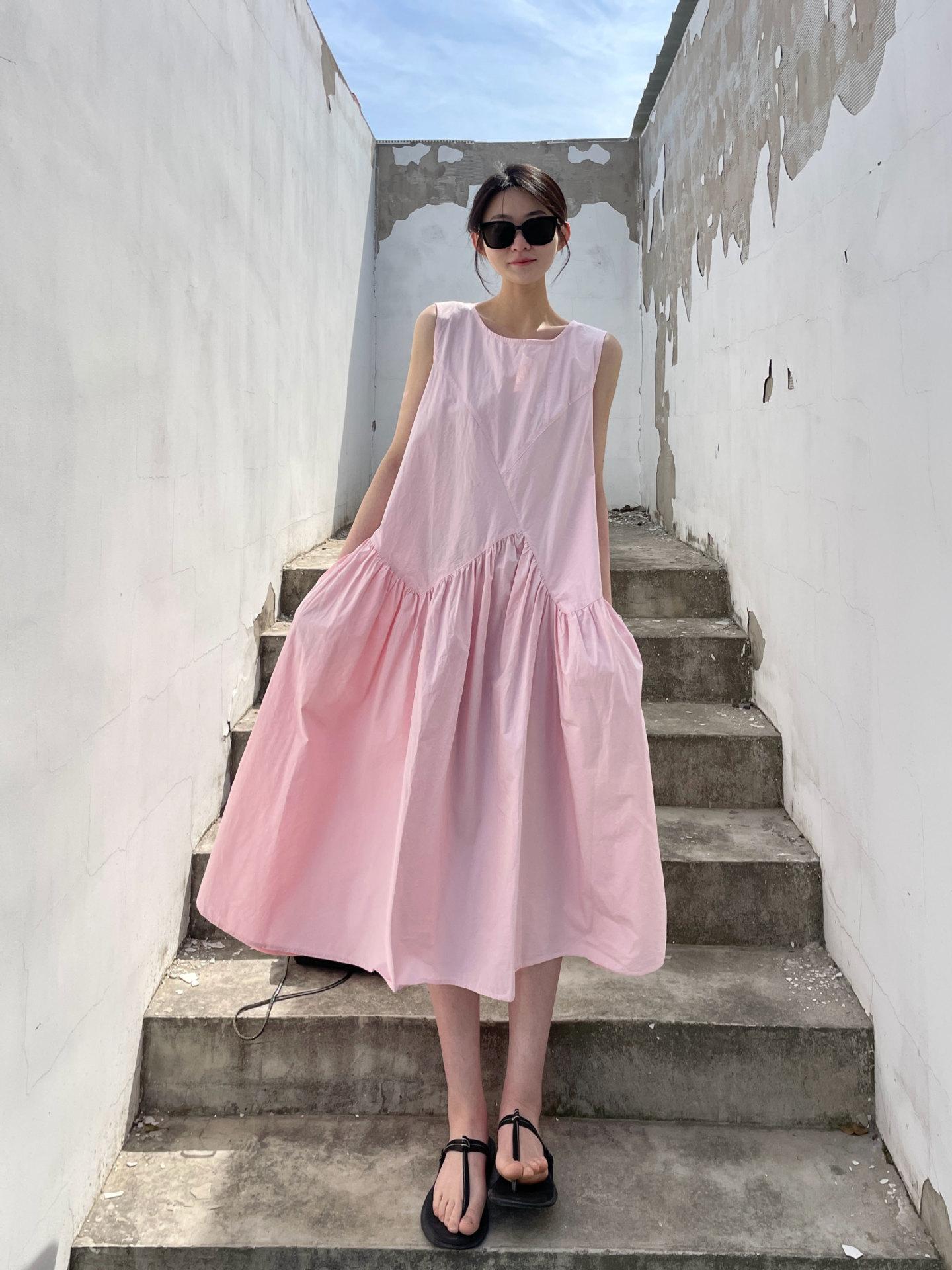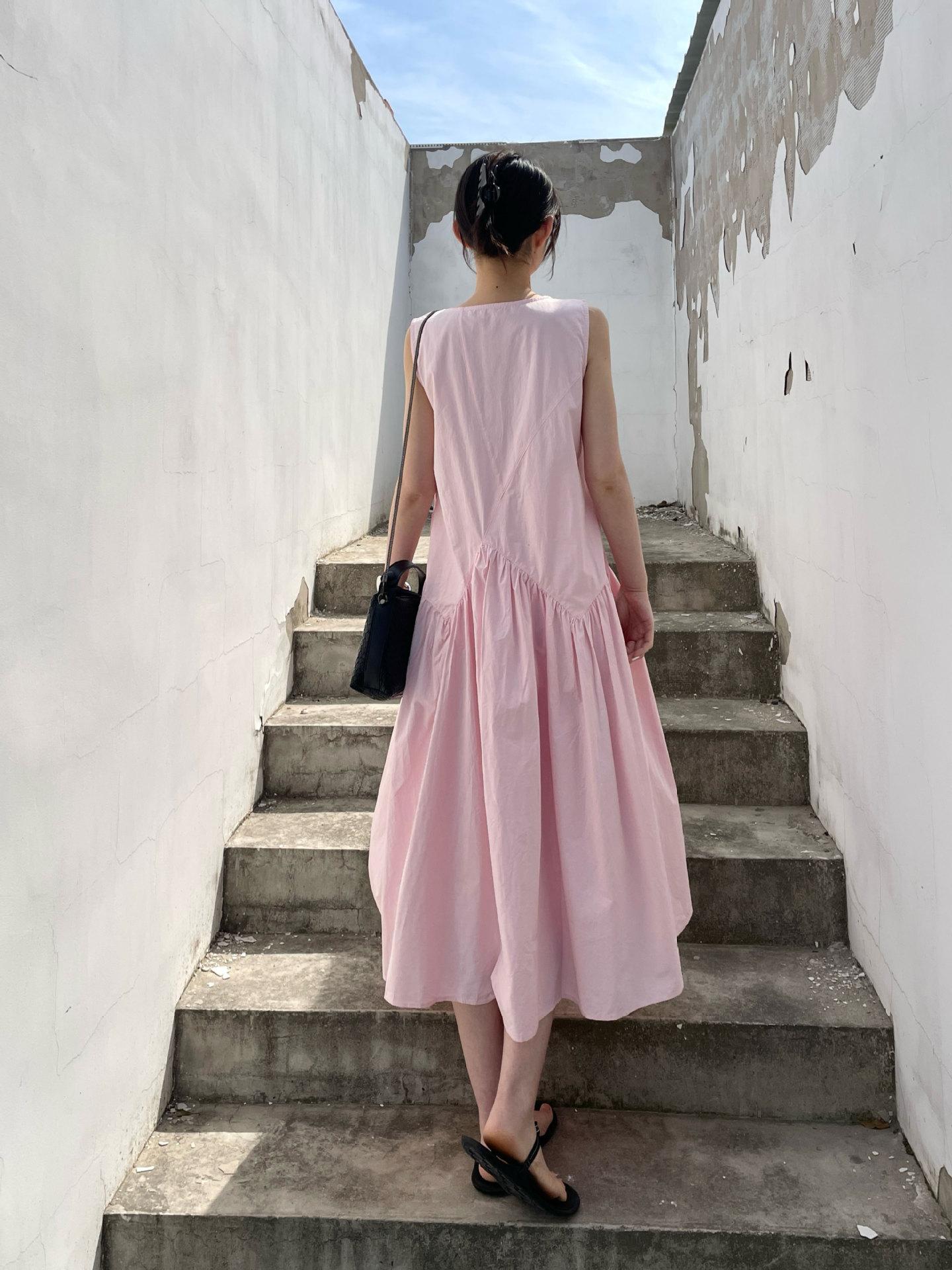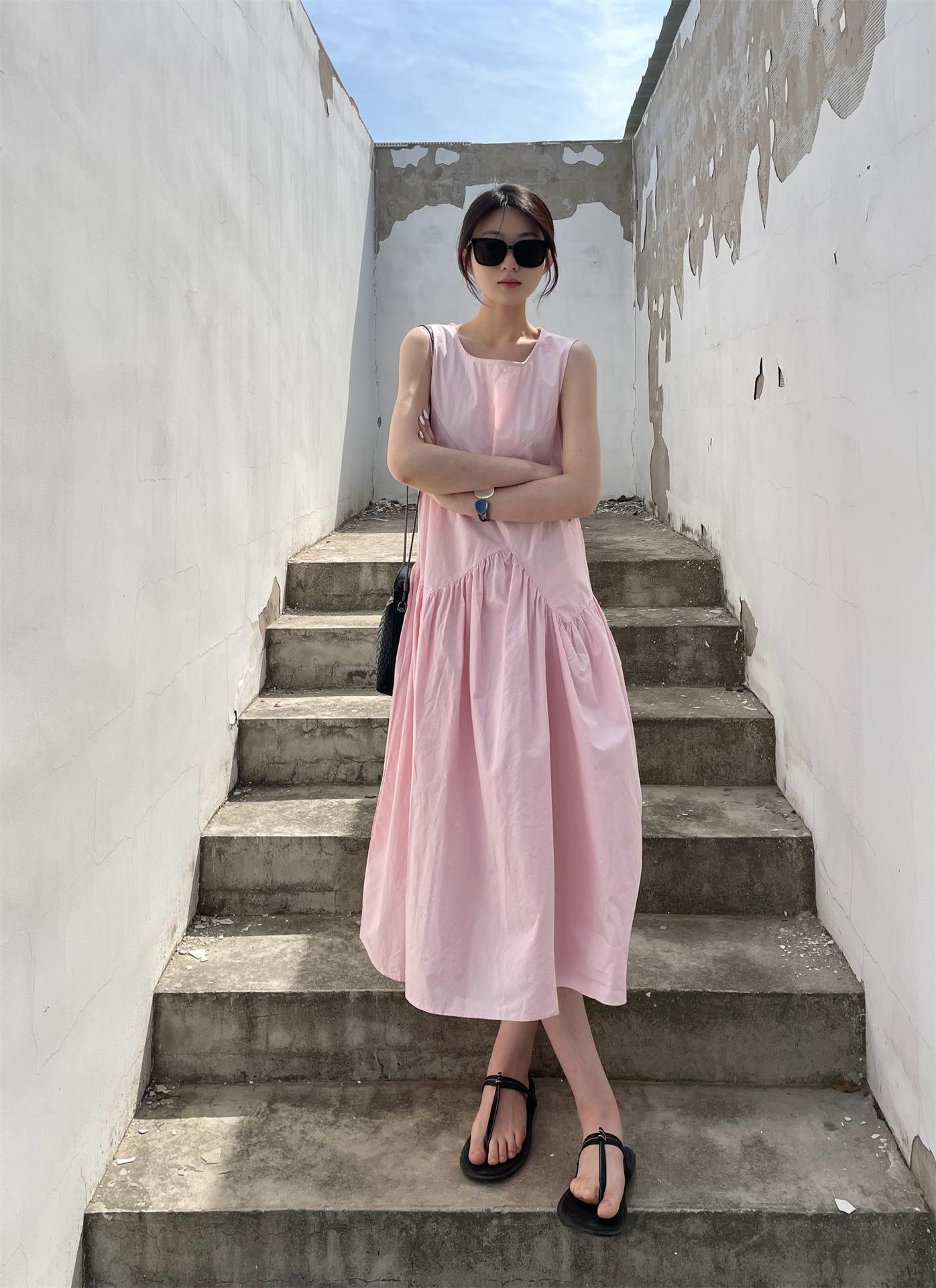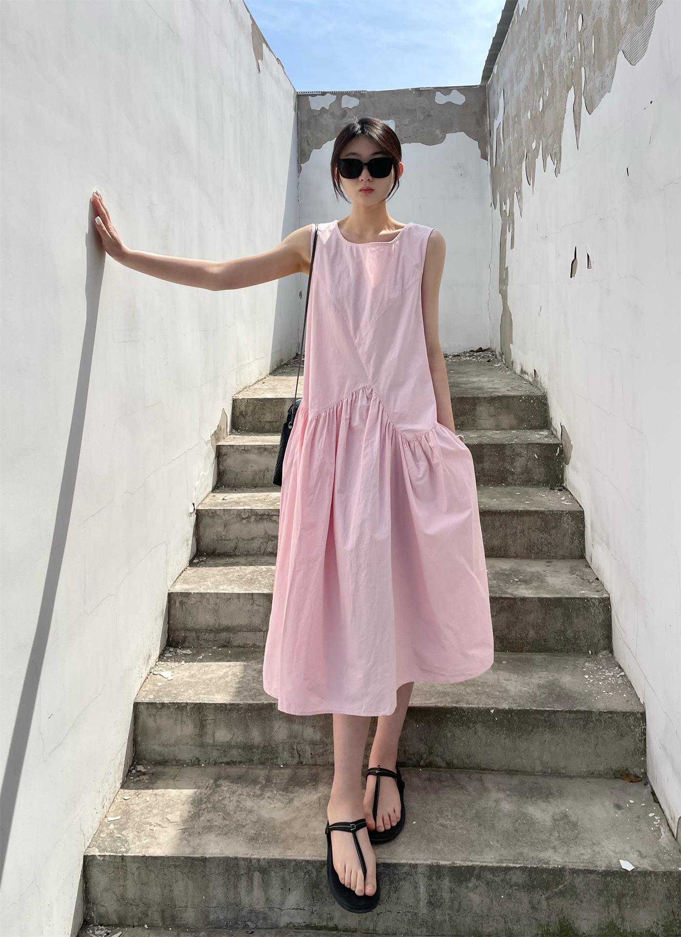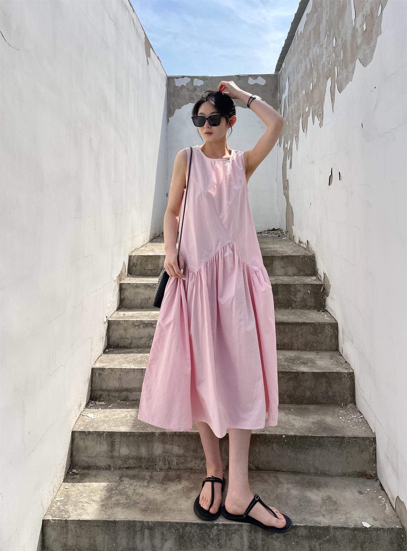 Vestido Rosa Francés de Estilo Suave sin Mangas Verano 2025 Nuevo Diseño Reductor de Edad Vestido Largo tipo Chaleco