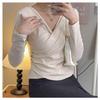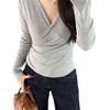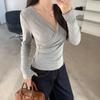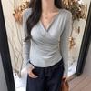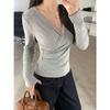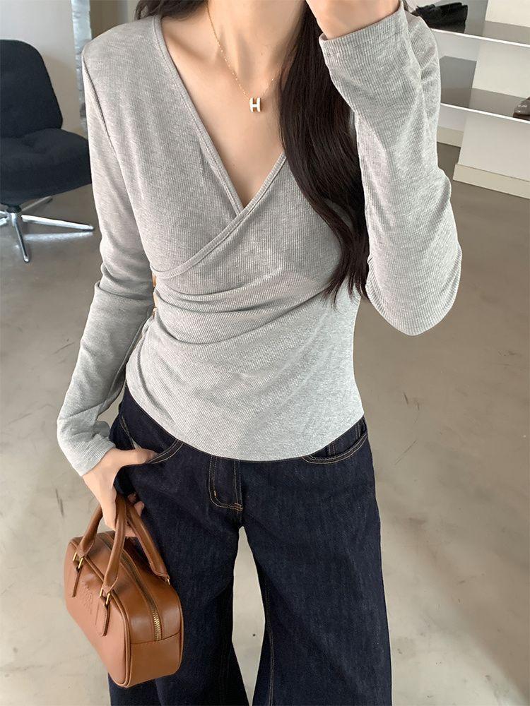 Chicas Calientes Sexy Deseo Puro Camiseta de Manga Larga con Cuello en V Otoño Cintura Ajustada Ajustada Adelgazante Chic Moderna Novedad Top Ins