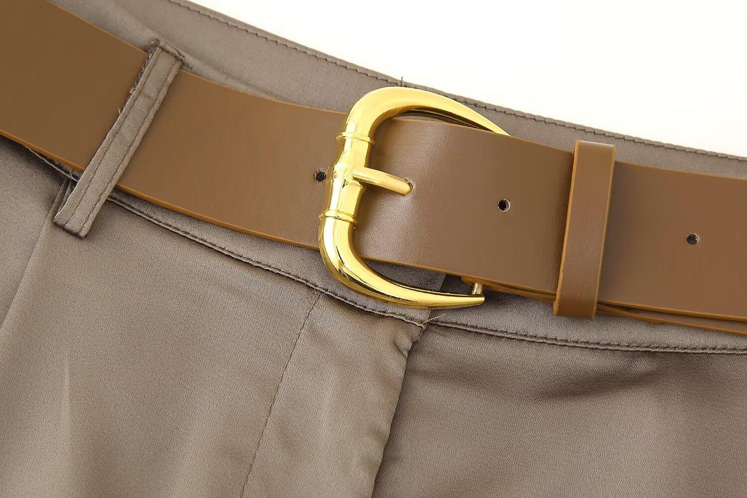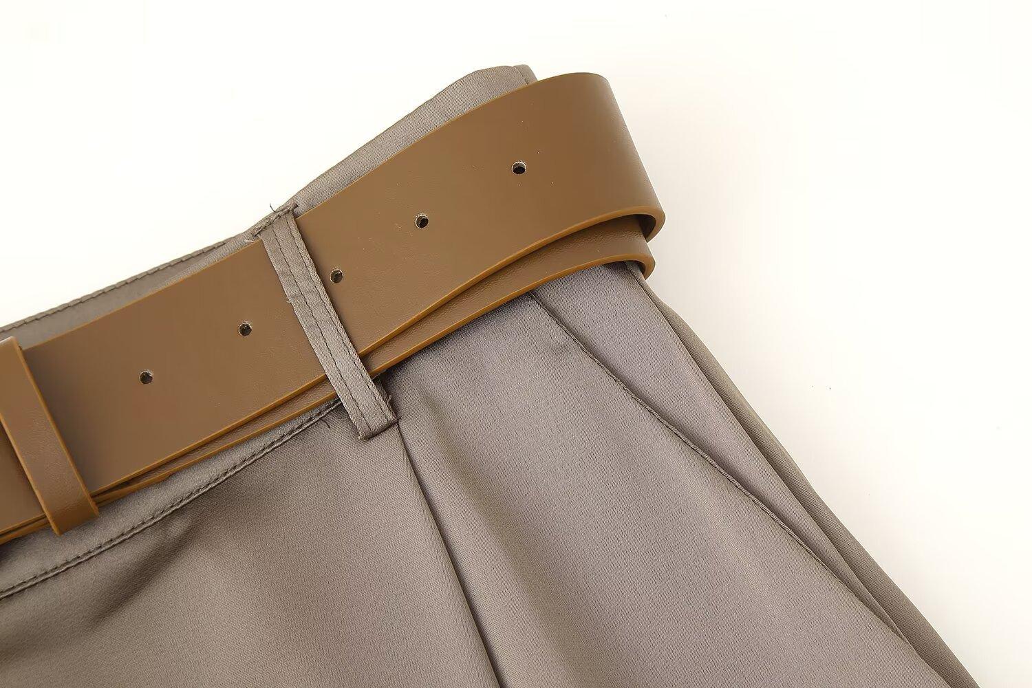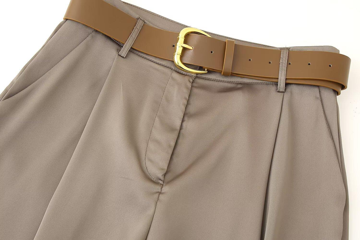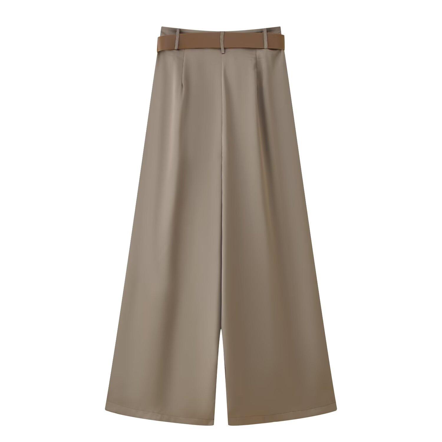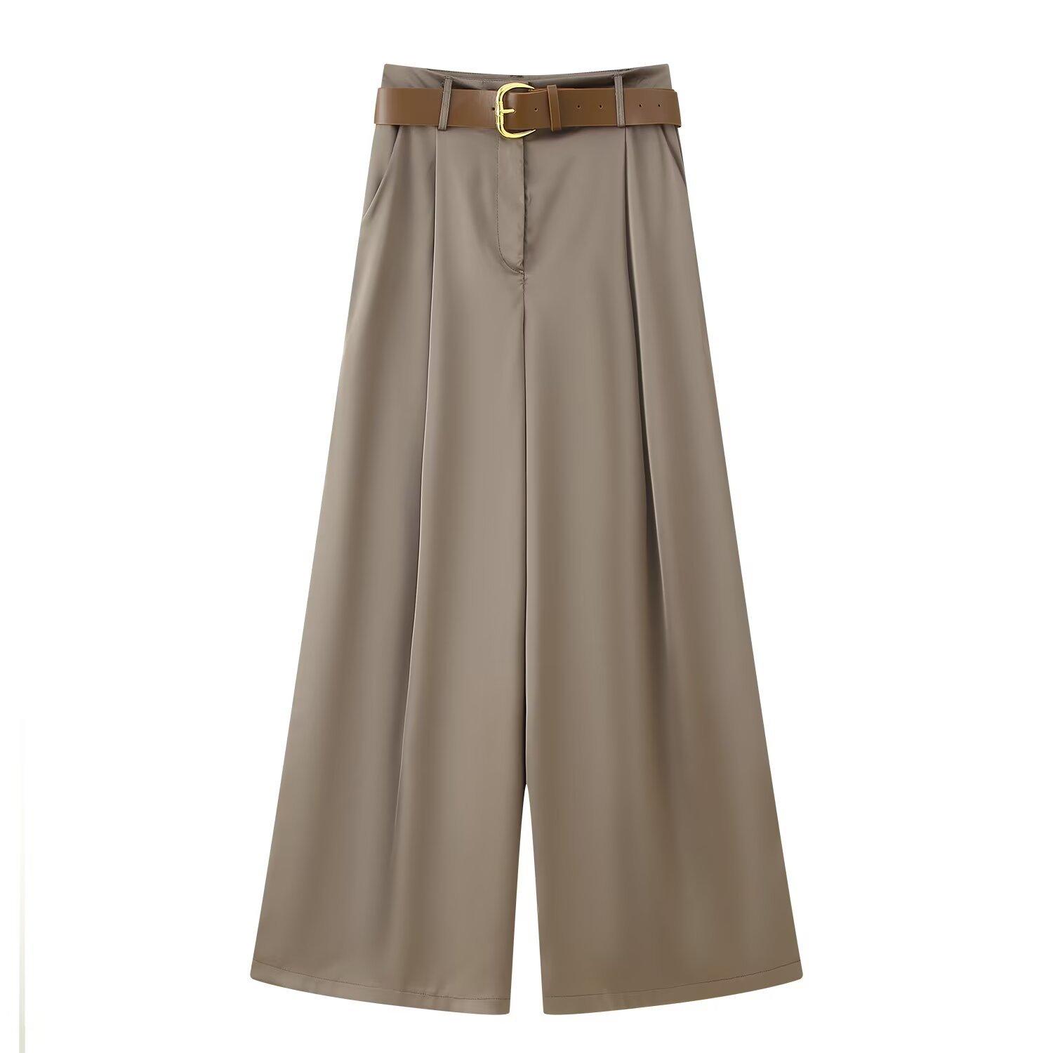 Ropa de mujer para comercio exterior transfronterizo 2025 primavera/verano estilo europeo y americano con cinturón textura plisada de satén de seda pantalones casuales de pierna ancha mujer M6152