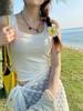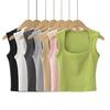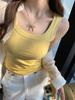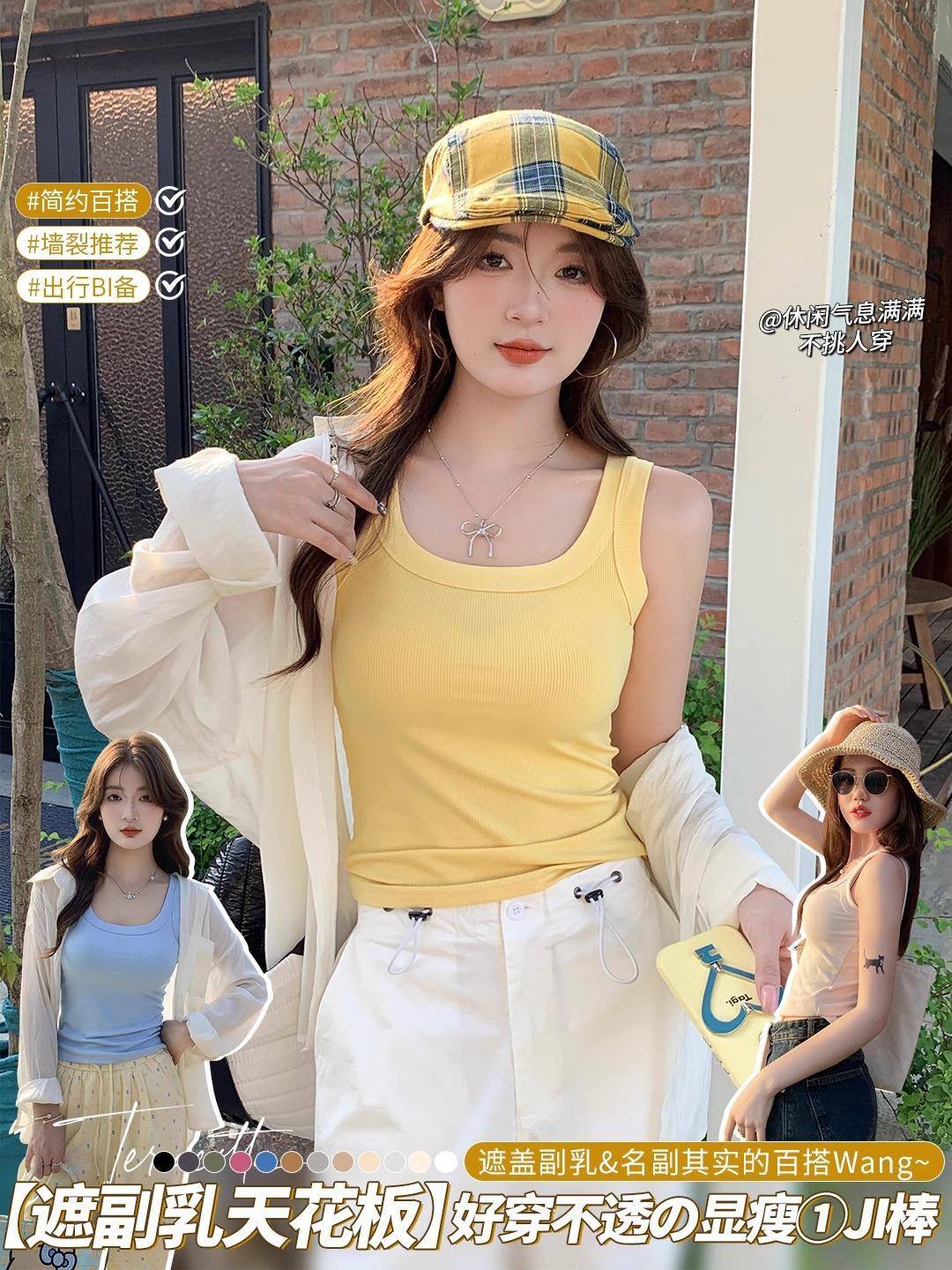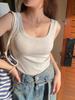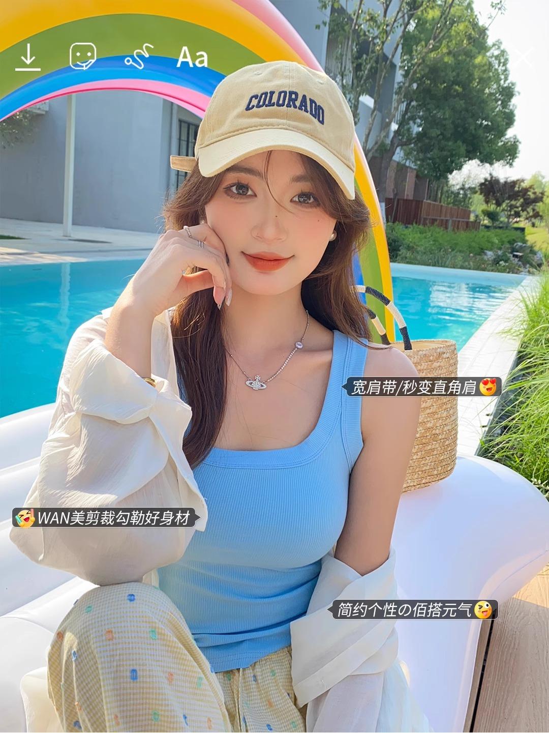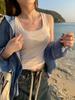 Camisola de Mujer 2025 Verano Nueva Ajustada Traje Interior Tirante Ancho Fondo Top Exterior Gris