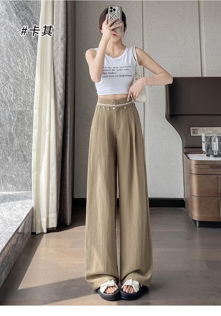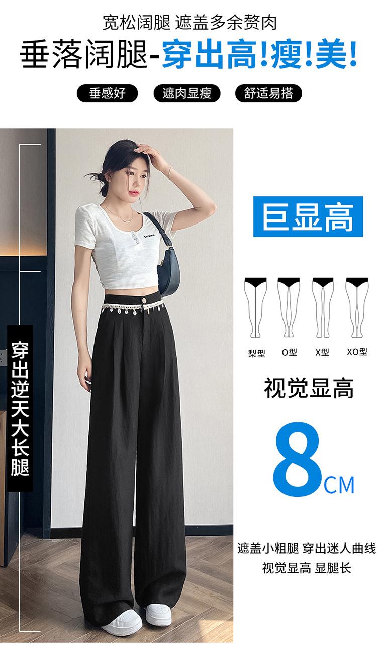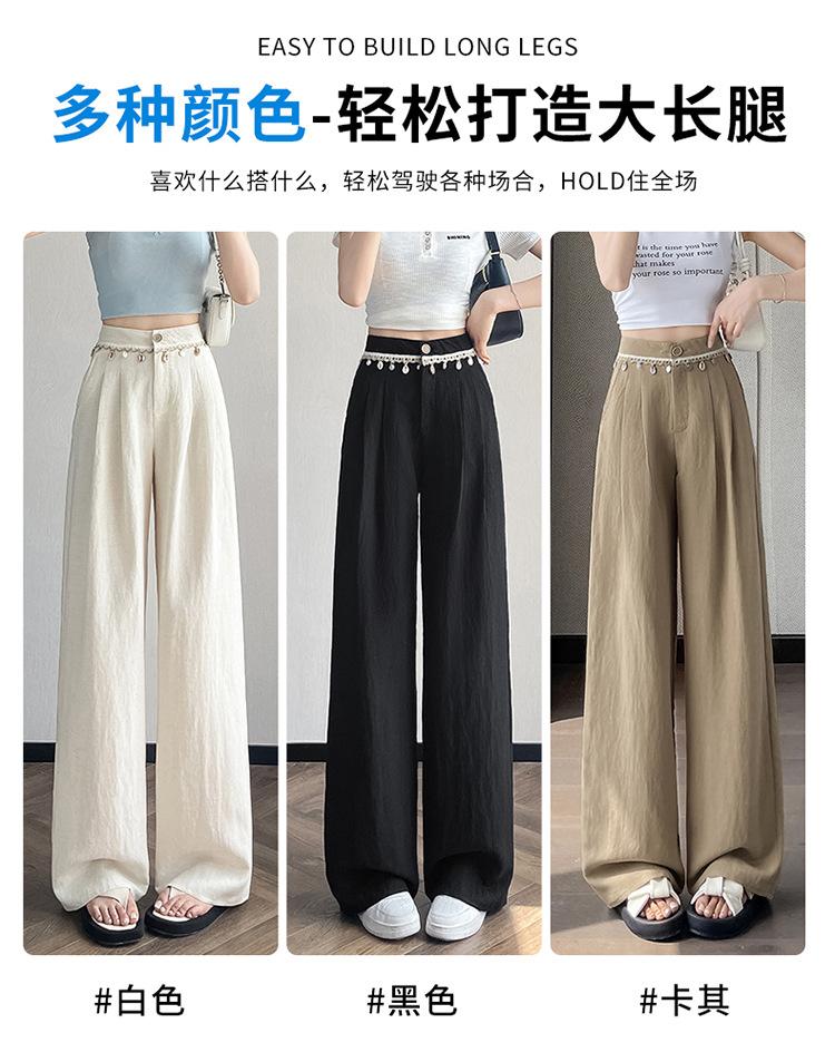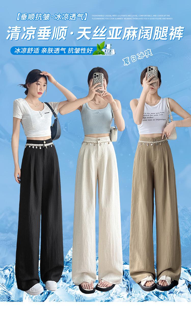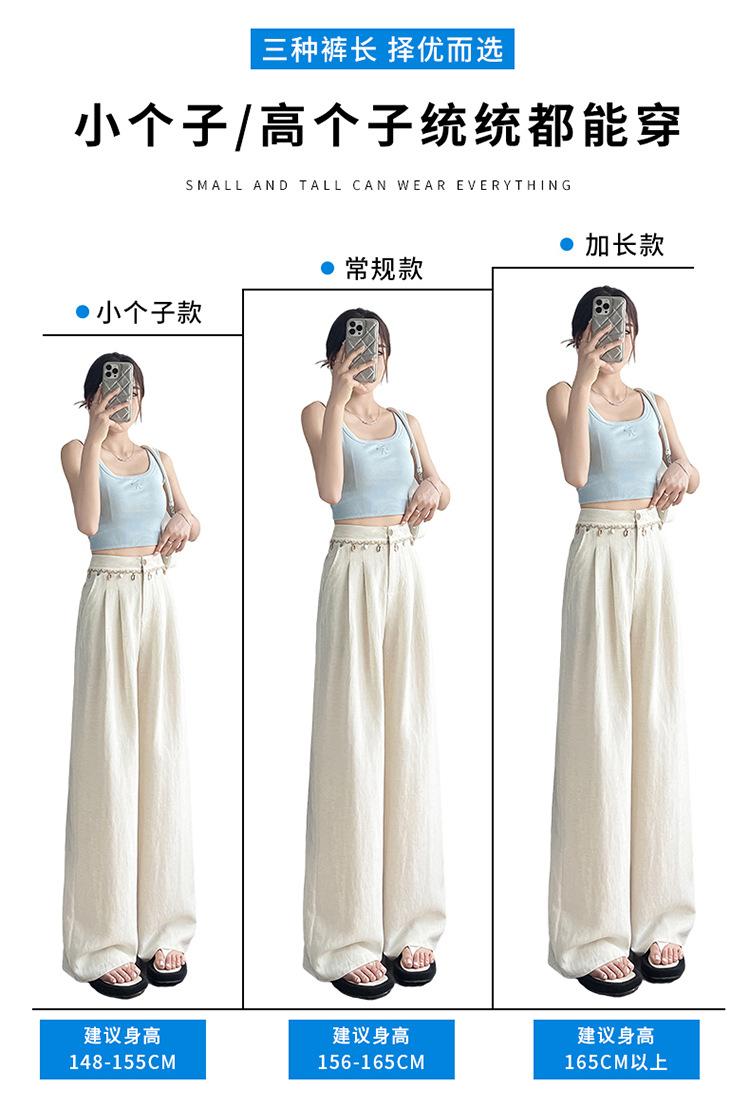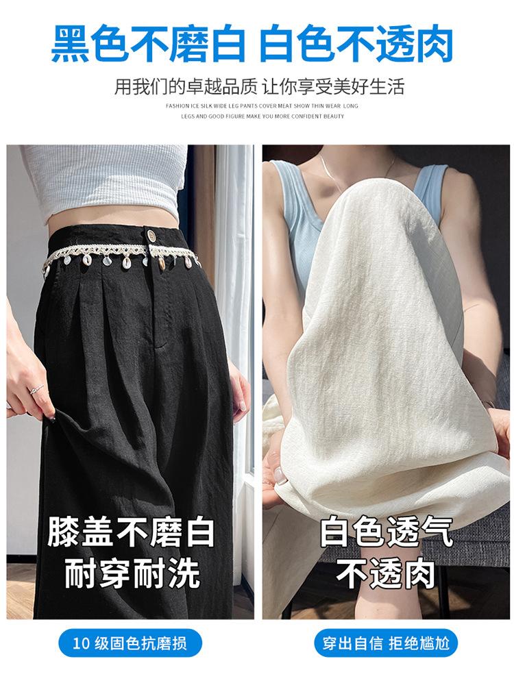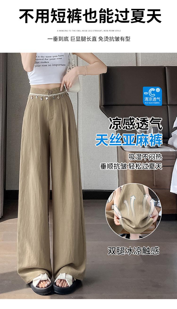 Pantalones de Pierna Ancha de Lino Tencel Verano 2025 Pantalones Casuales de Cintura Alta Pantalones Rectos de Seda Helada Pantalones para Trapear el Piso para Mujer