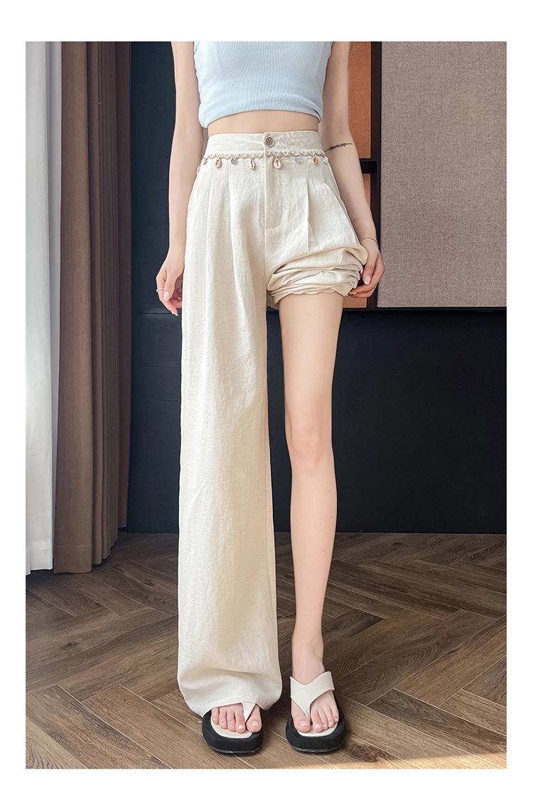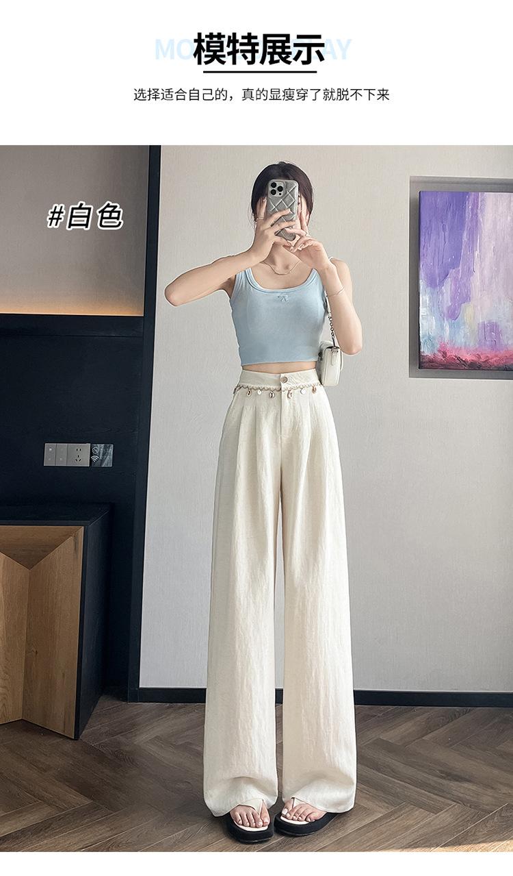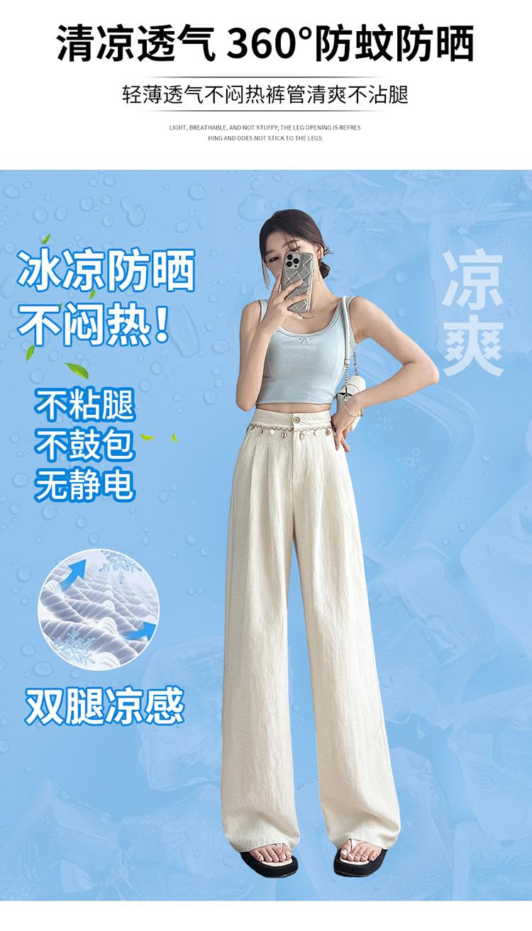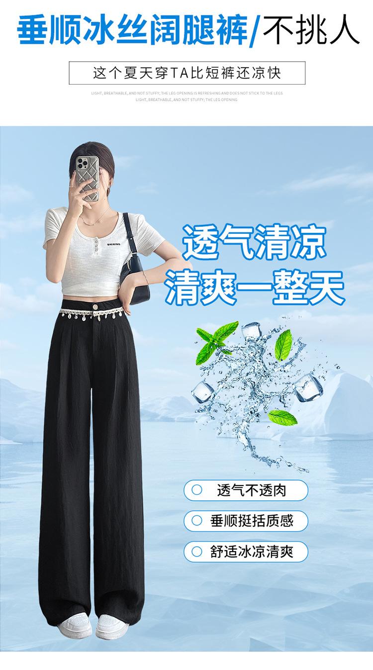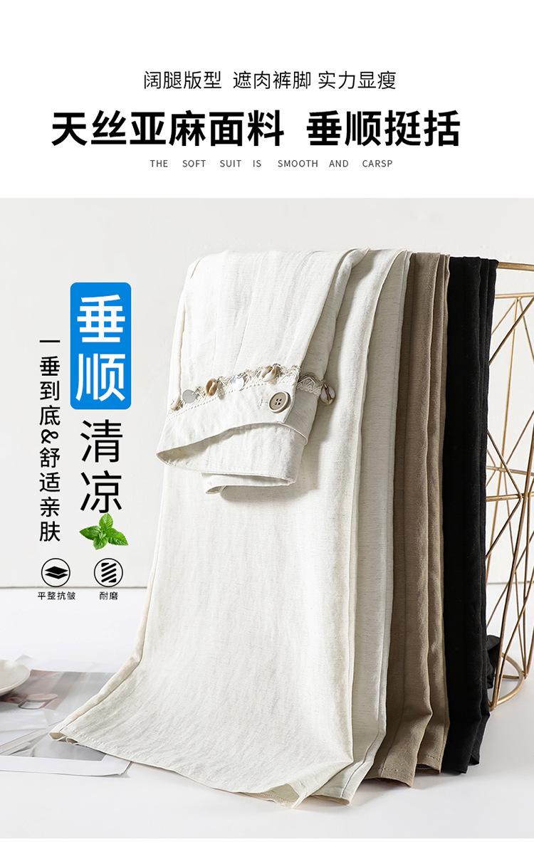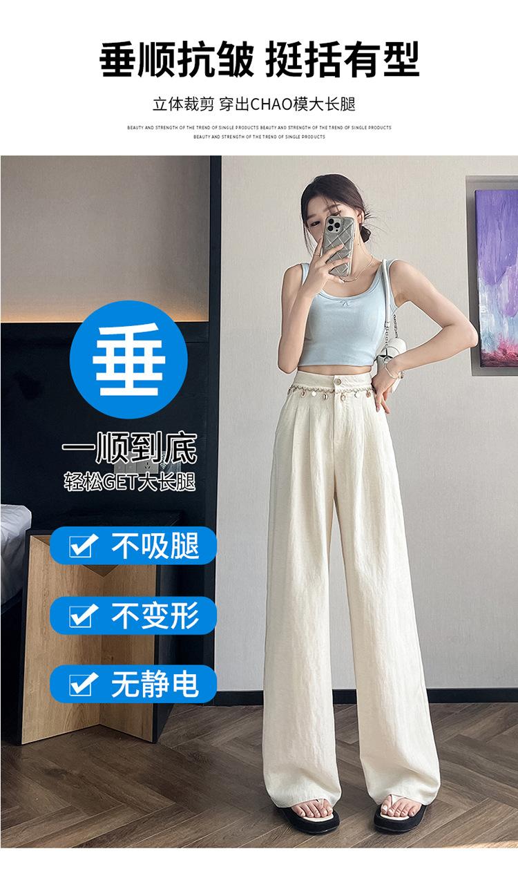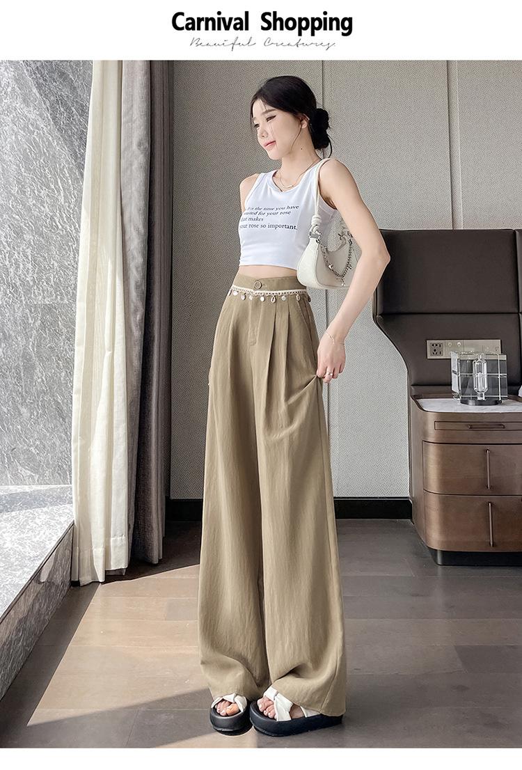 Pantalones de Pierna Ancha de Lino Tencel Verano 2025 Pantalones Casuales de Cintura Alta Pantalones Rectos de Seda Helada Pantalones para Trapear el Piso para Mujer
