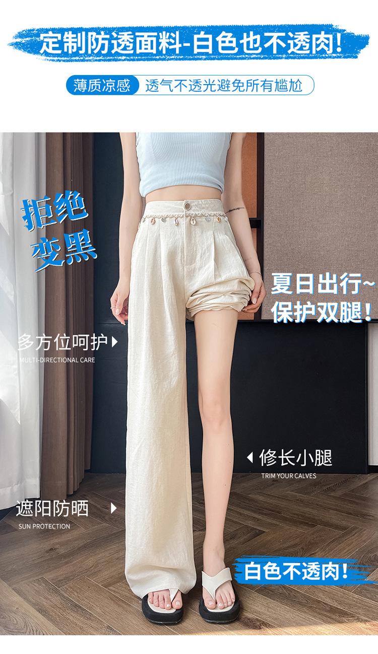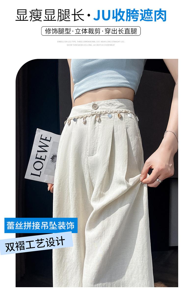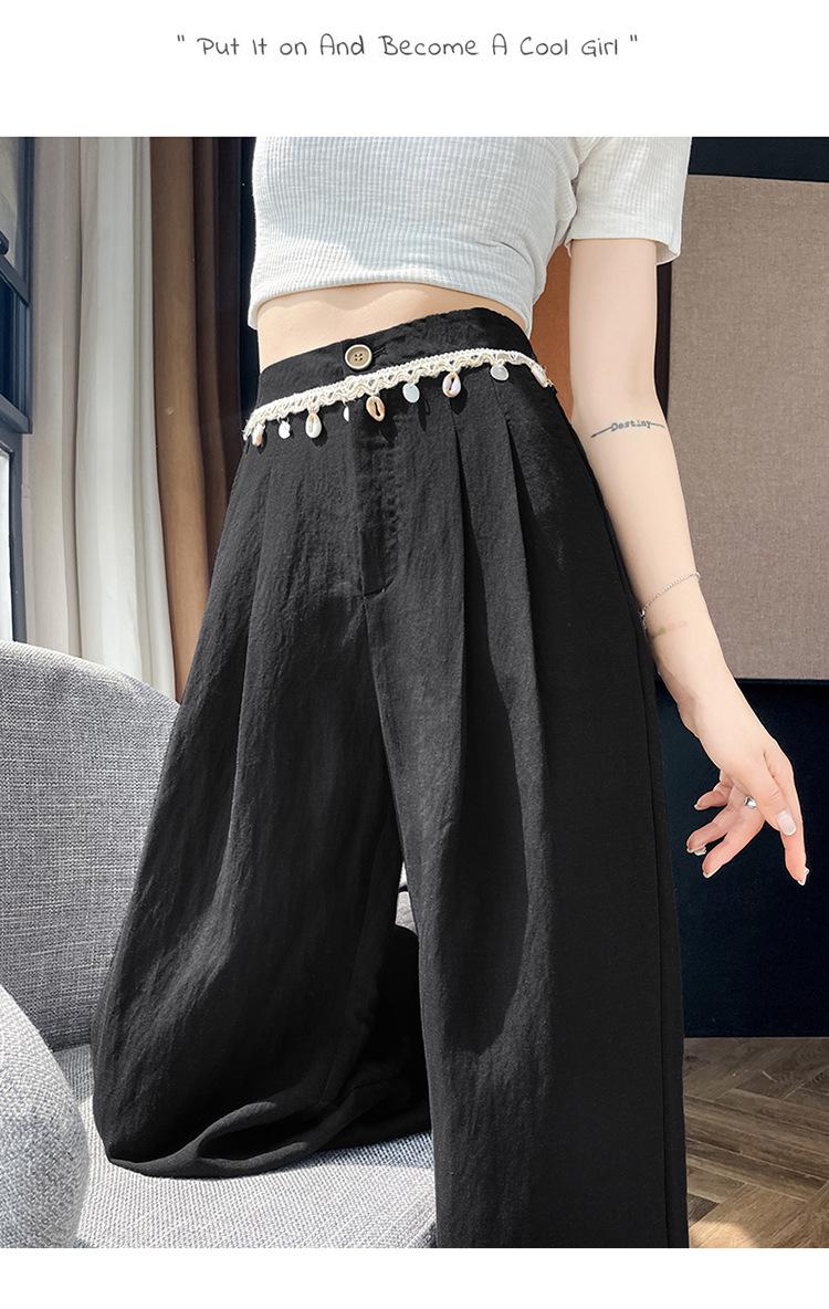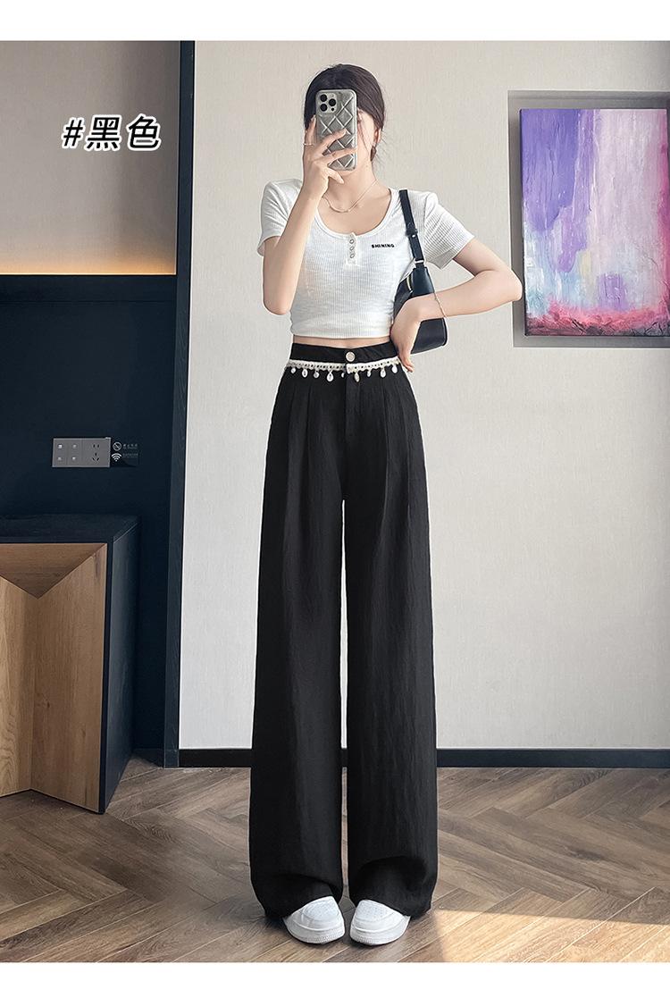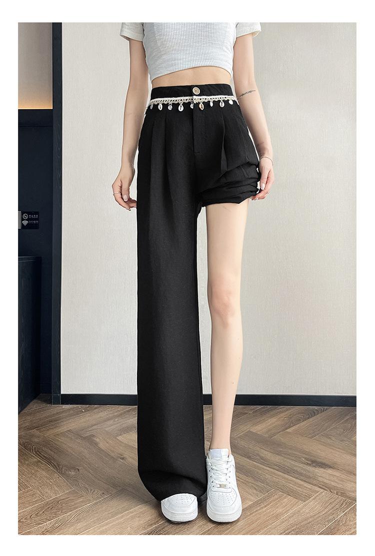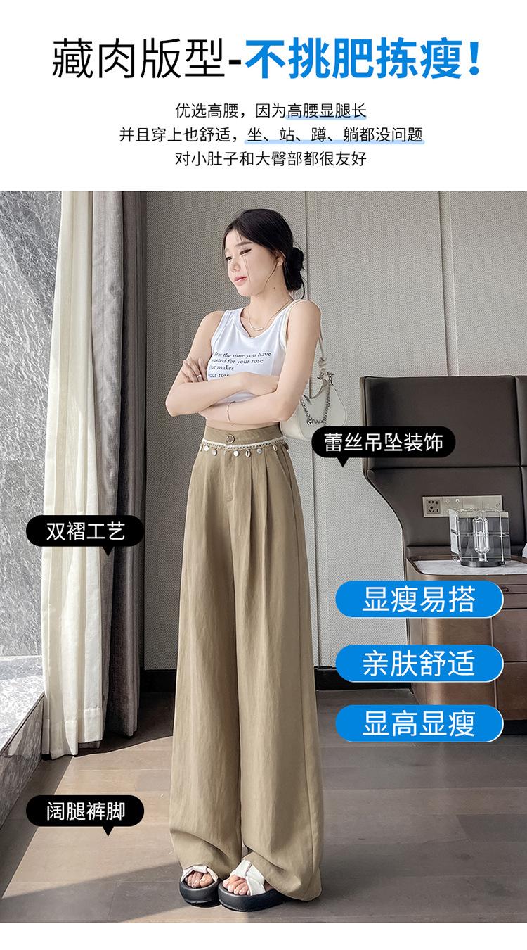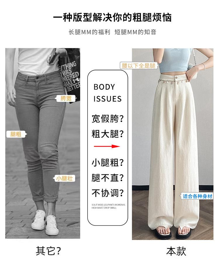 Pantalones de Pierna Ancha de Lino Tencel Verano 2025 Pantalones Casuales de Cintura Alta Pantalones Rectos de Seda Helada Pantalones para Trapear el Piso para Mujer