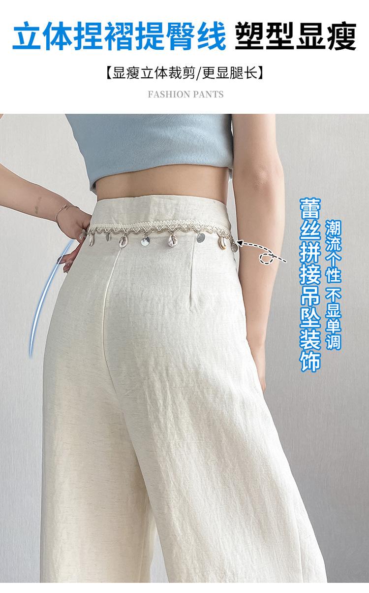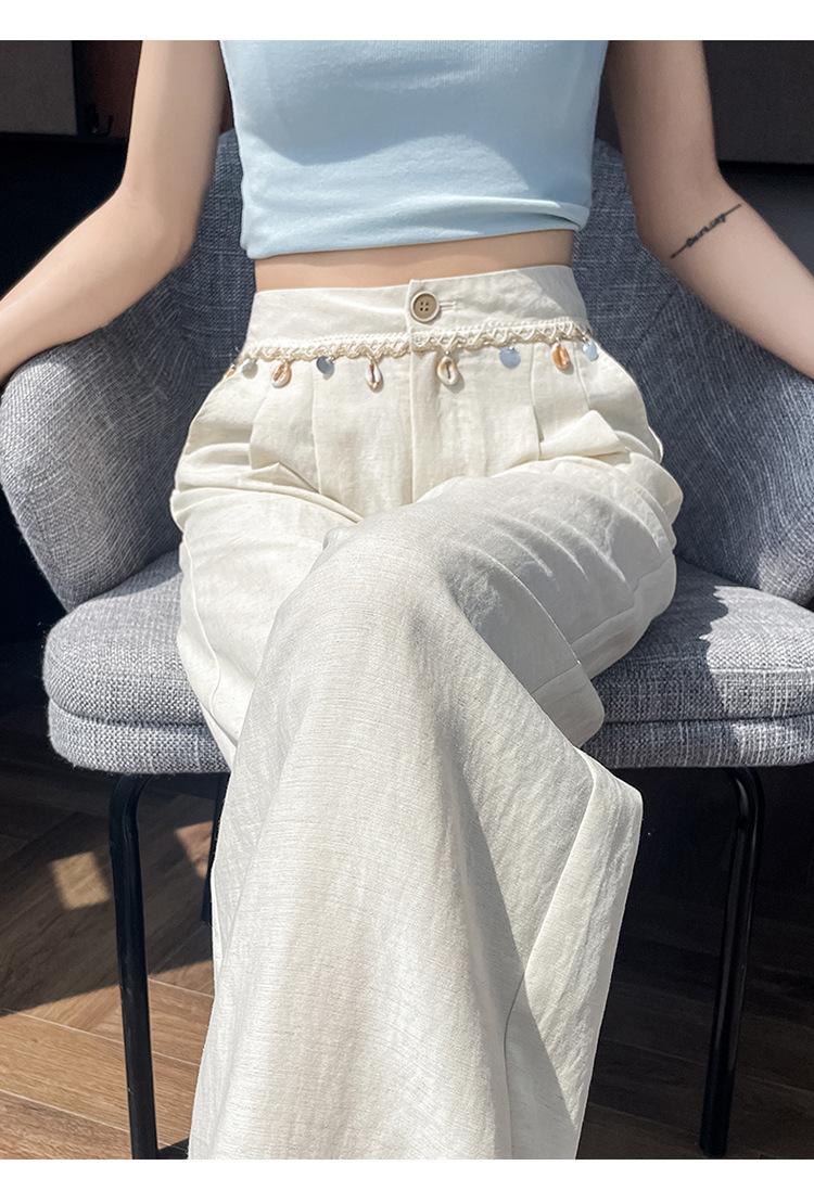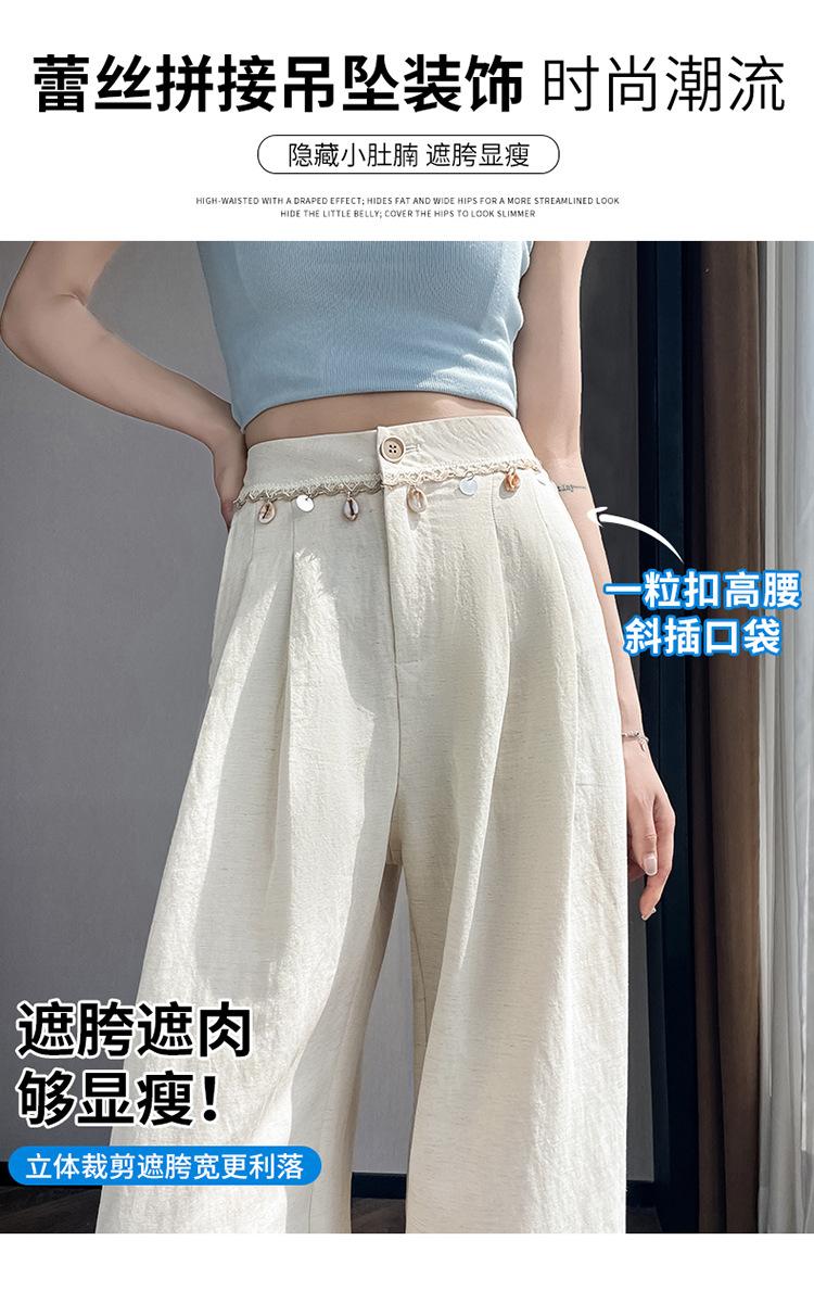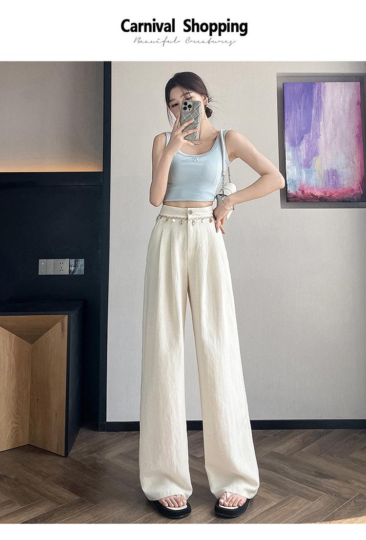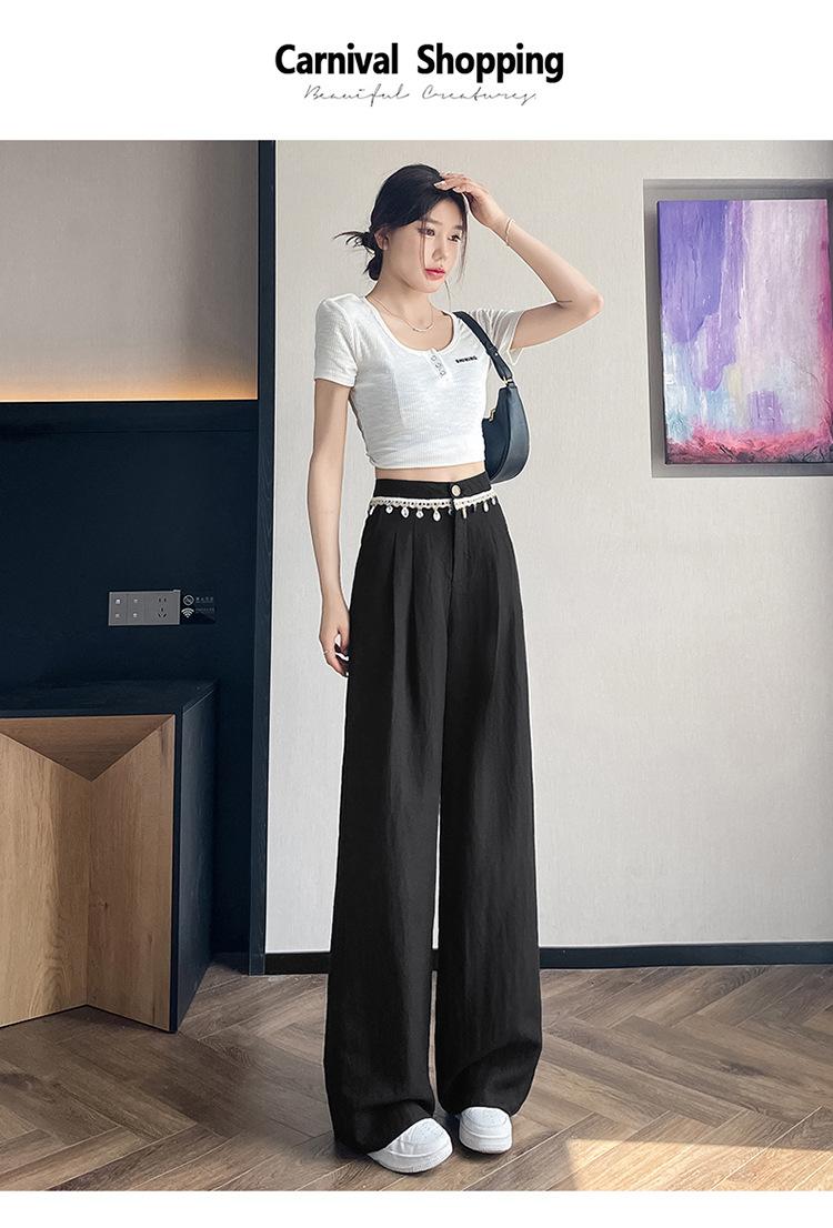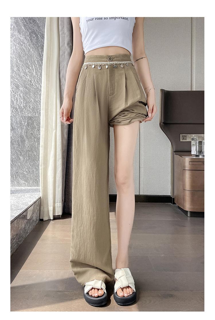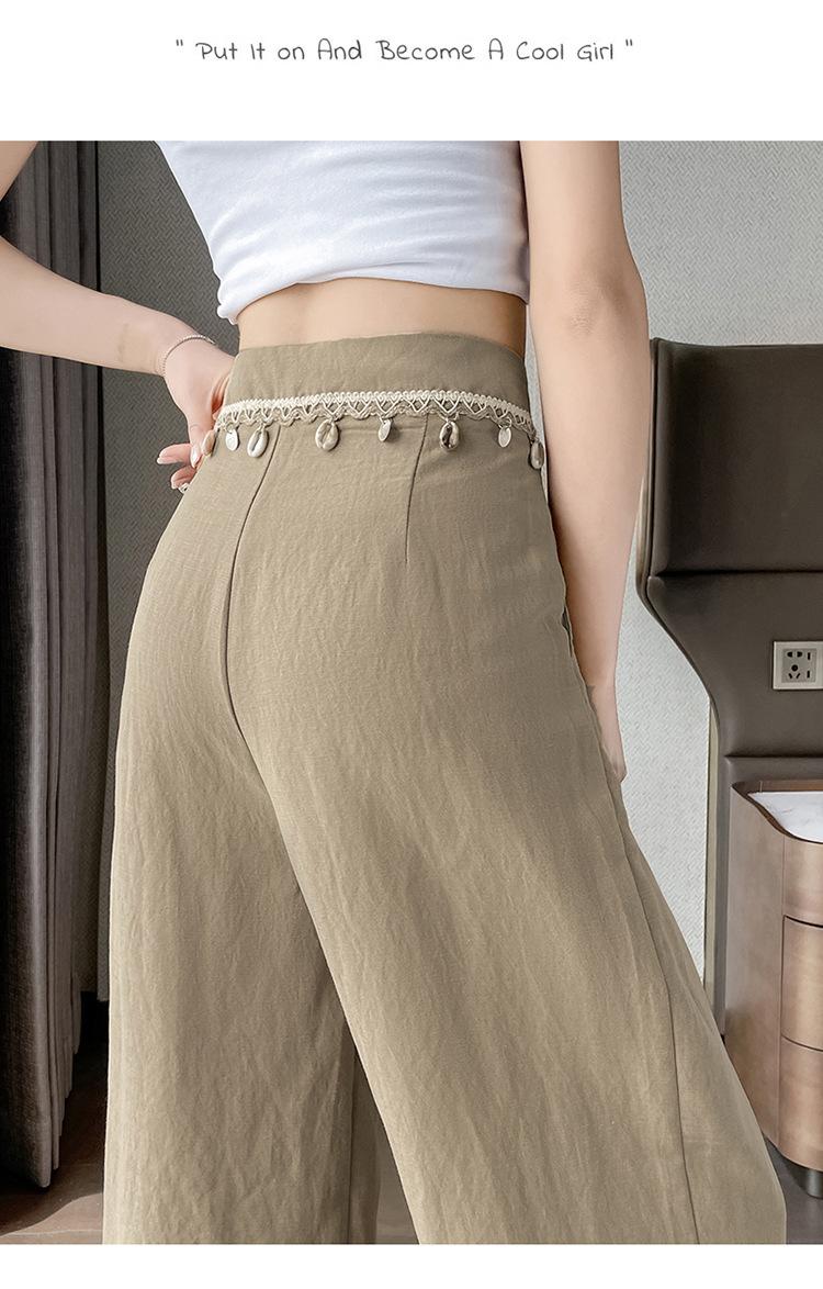 Pantalones de Pierna Ancha de Lino Tencel Verano 2025 Pantalones Casuales de Cintura Alta Pantalones Rectos de Seda Helada Pantalones para Trapear el Piso para Mujer