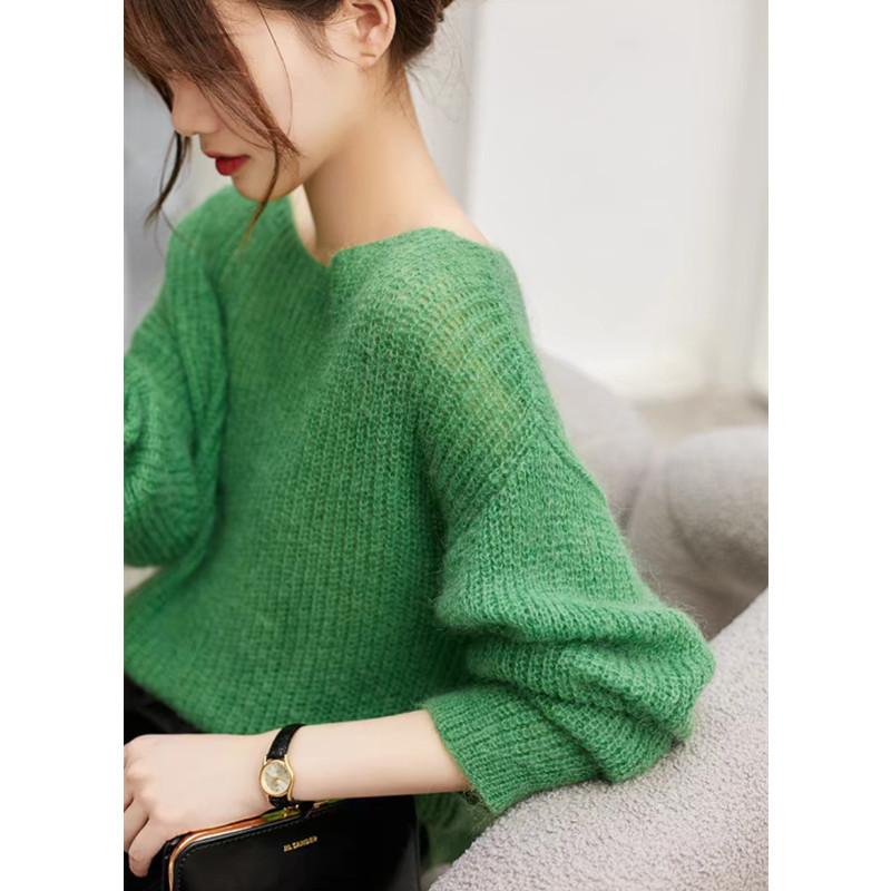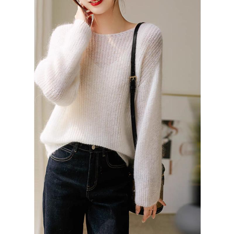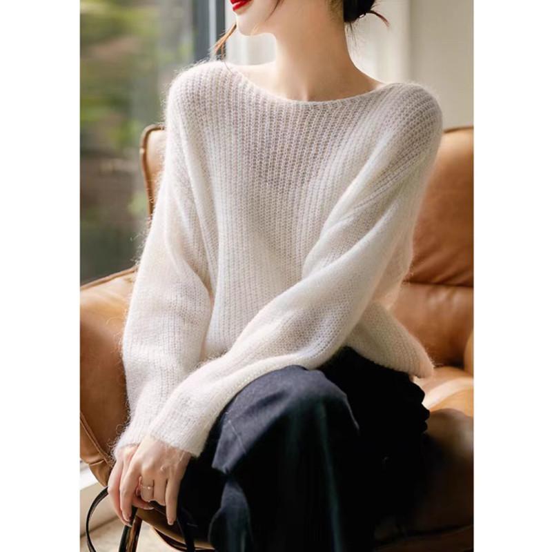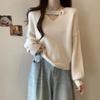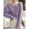 Suéter Nuevo Suave y Ceroso Primavera Verano 2024 Estilo Holgado Perezoso Cuello Redondo Pulóver Manga Larga Tejido Protector Solar Camisa para Aire Acondicionado Top