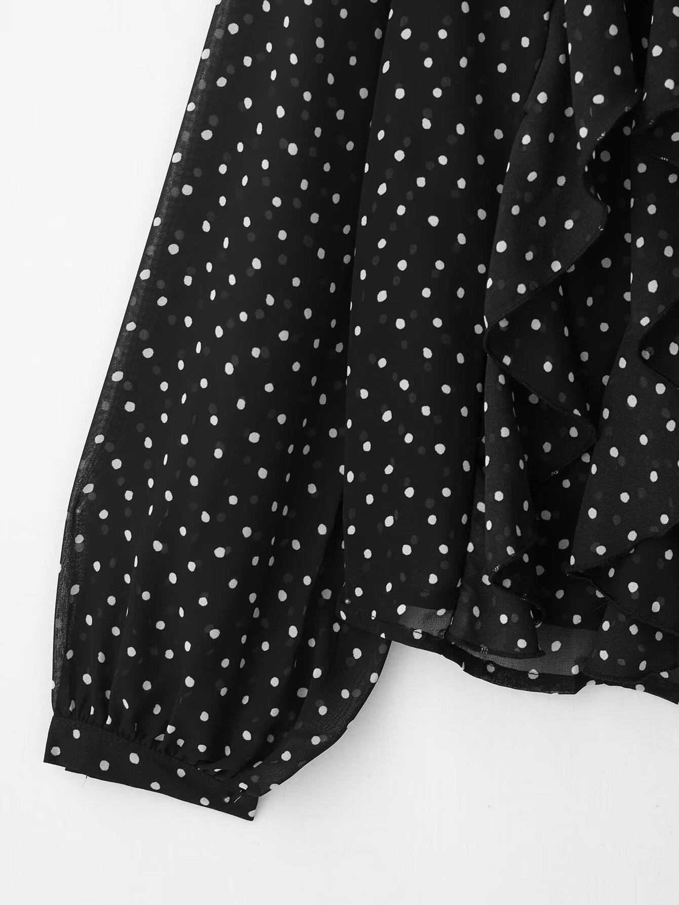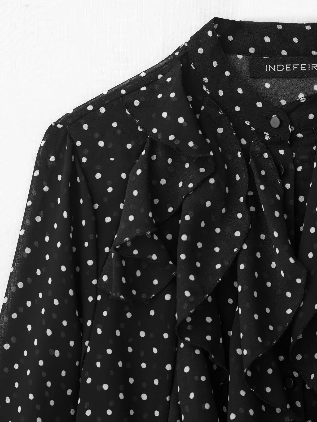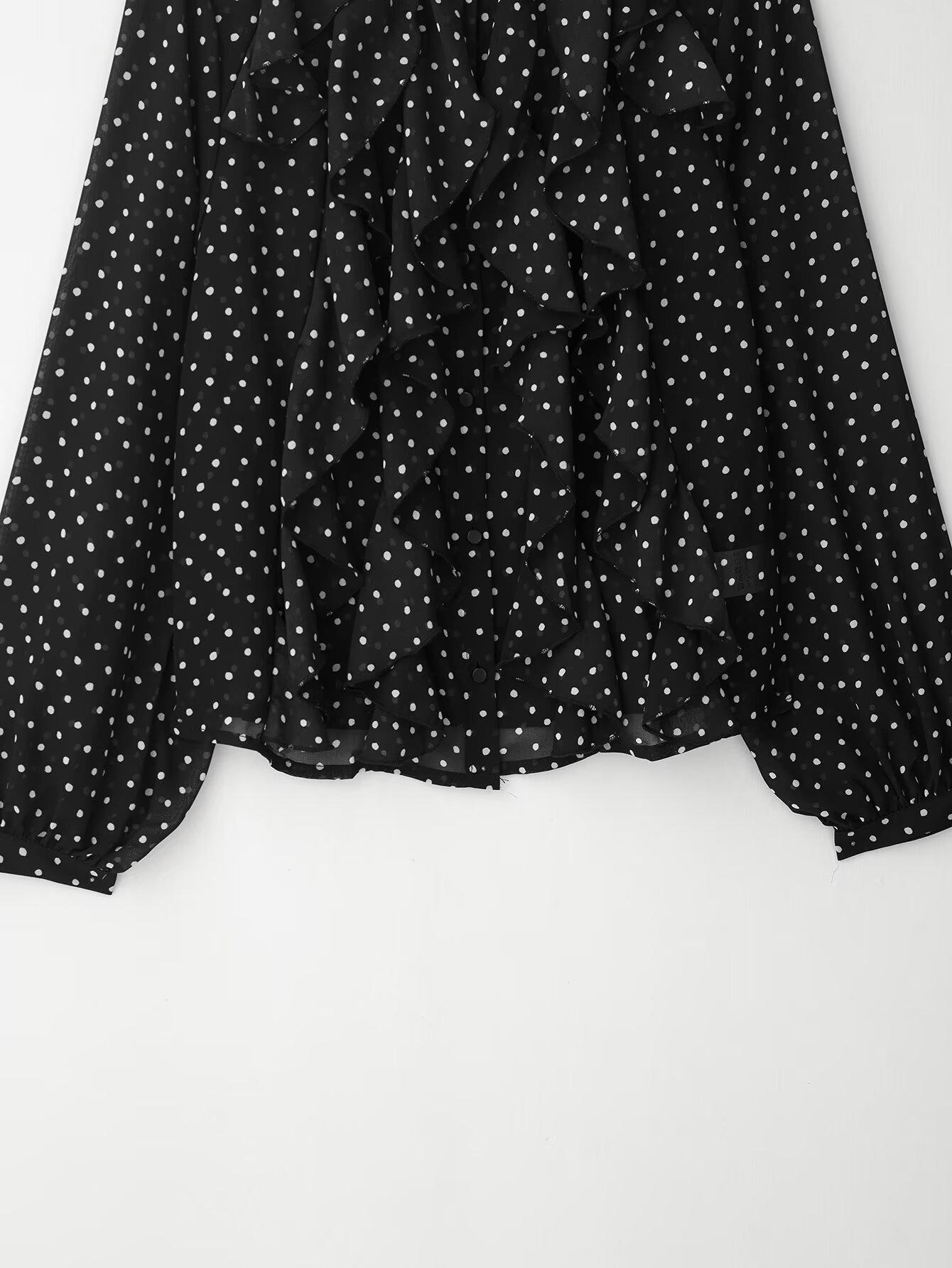 Ropa de Mujer de Comercio Exterior Otoño 2025 Estilo Europeo y Americano de Contraste Lunares Moda Camisa de Lunares Decorativa en Capas de Manga Larga para Mujer D6247830