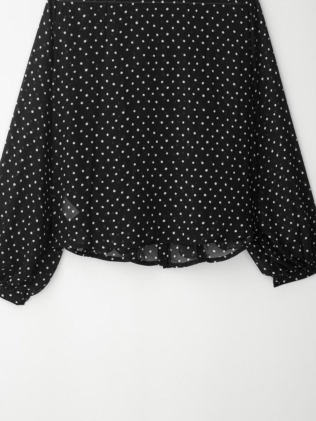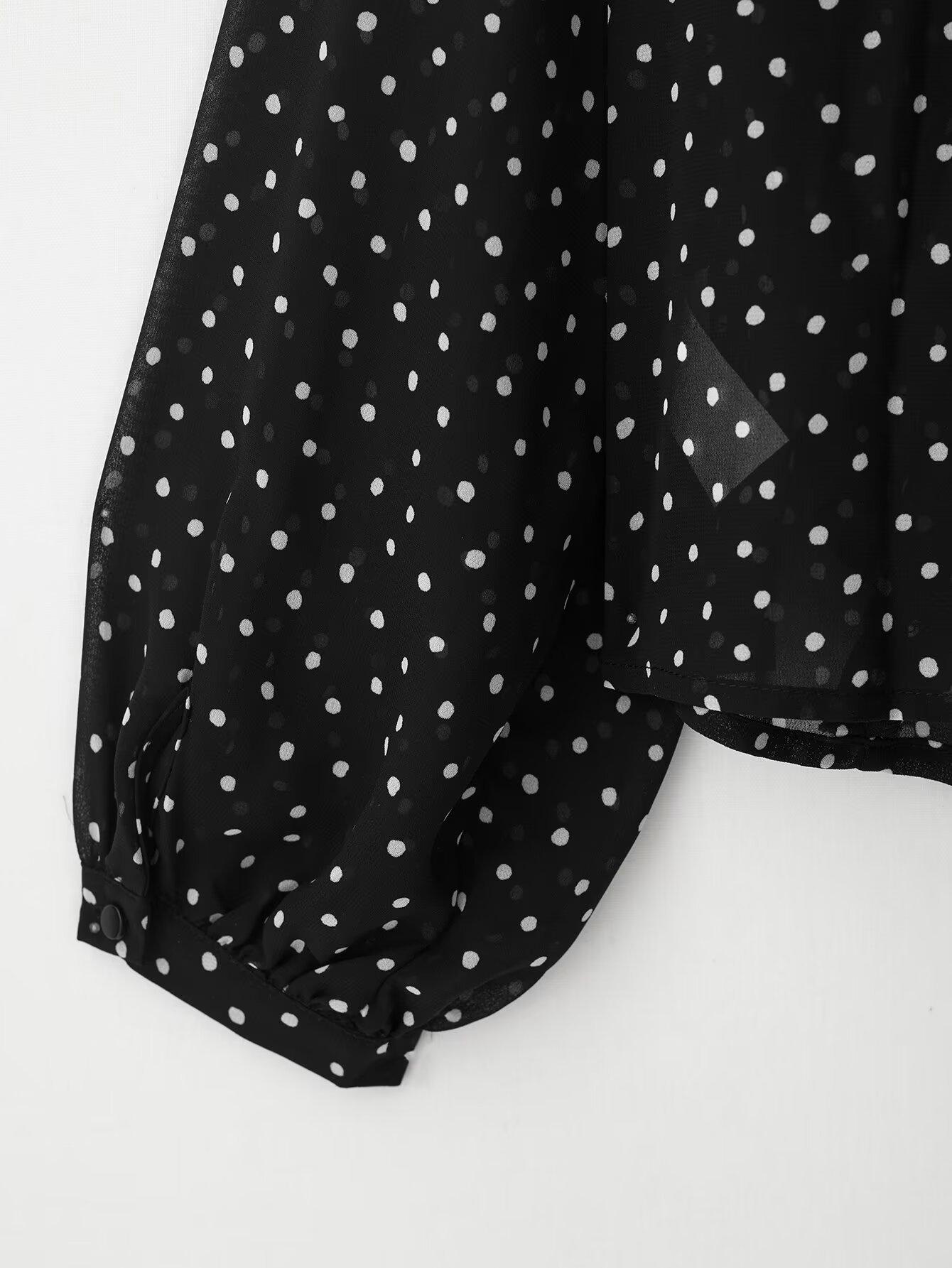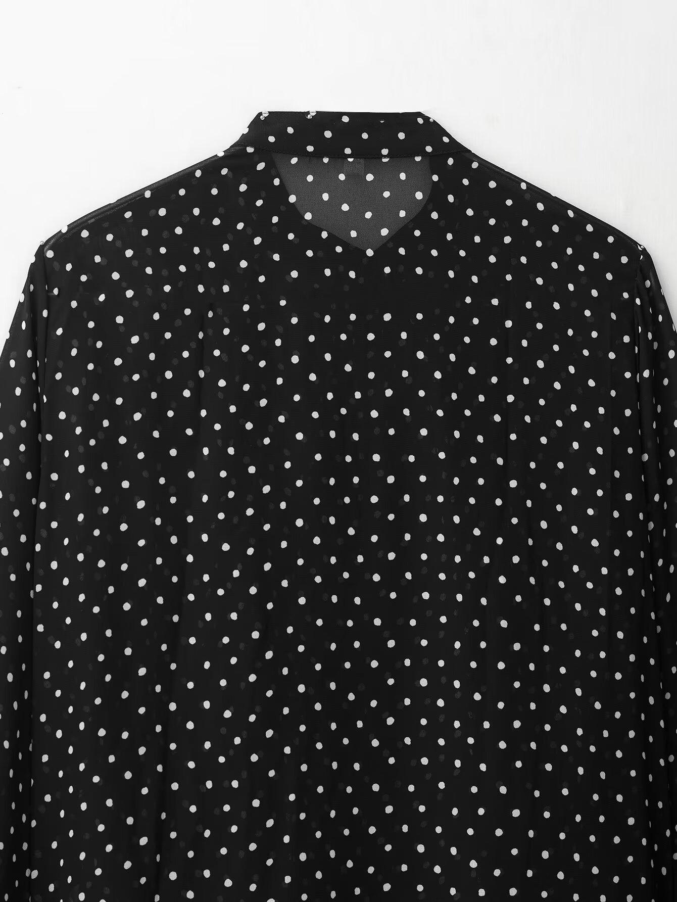 Ropa de Mujer de Comercio Exterior Otoño 2025 Estilo Europeo y Americano de Contraste Lunares Moda Camisa de Lunares Decorativa en Capas de Manga Larga para Mujer D6247830