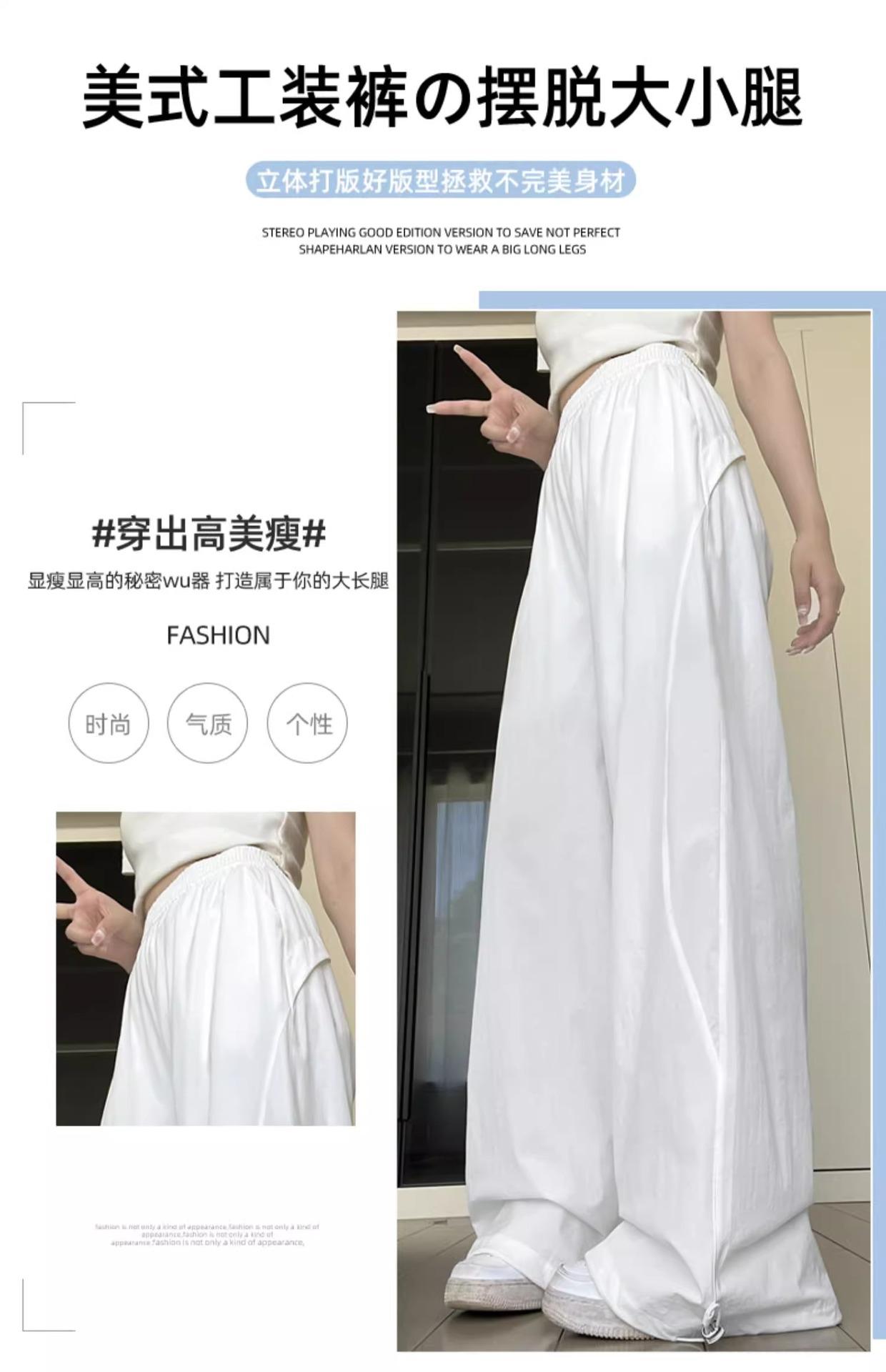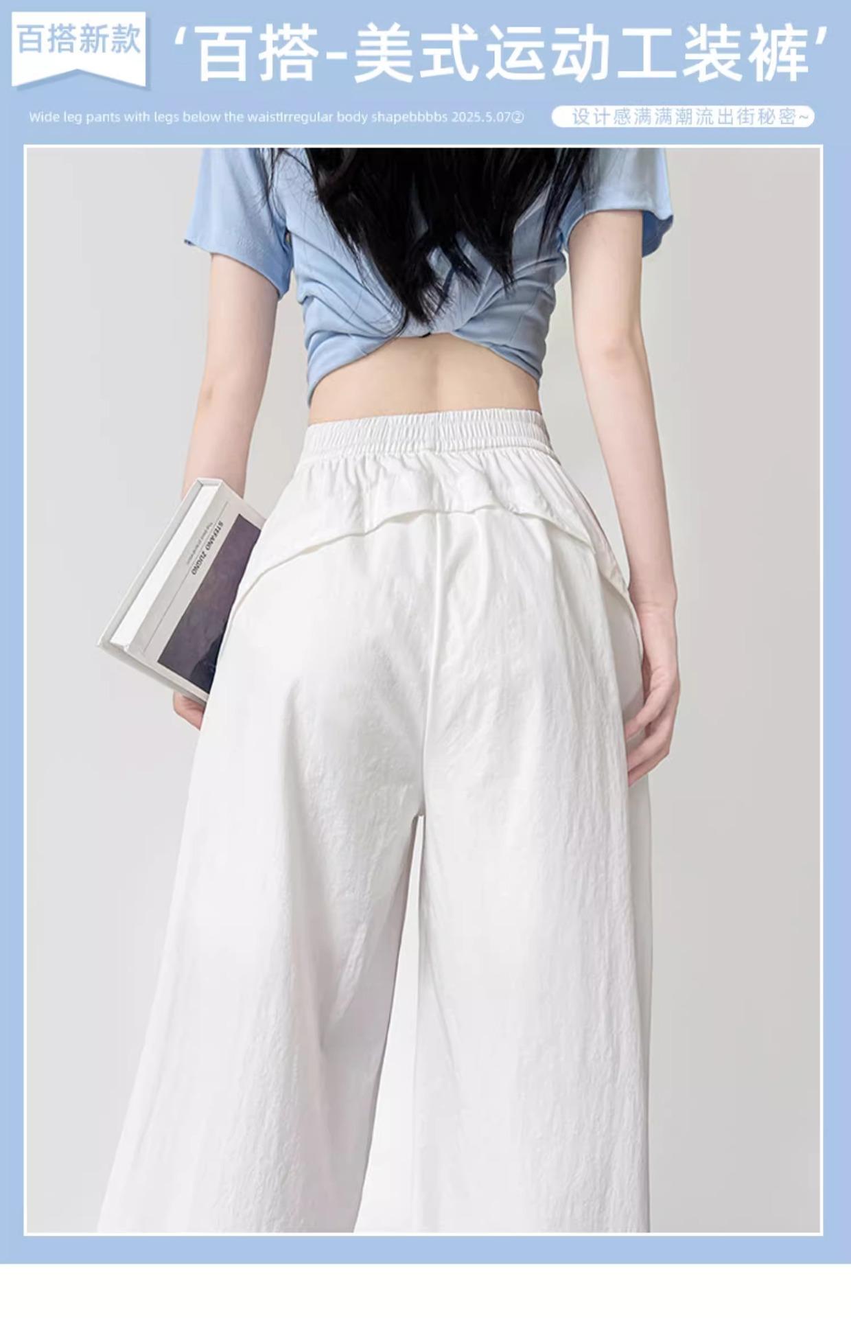Azul marino Peto de secado rápido para mujer Verano 2025 Nuevo Cintura alta Holgado Drapeado Casual Adelgazante Deportivo Pantalón de pierna ancha