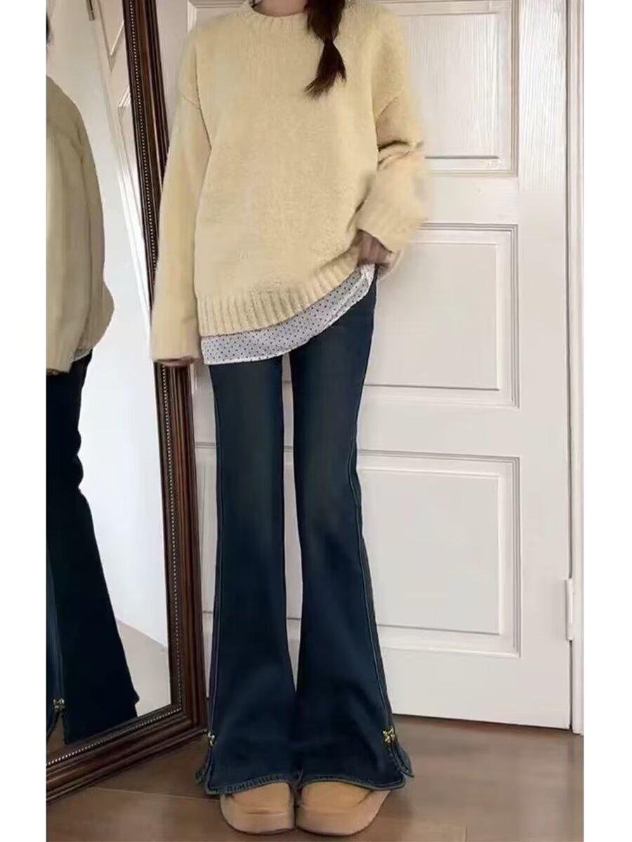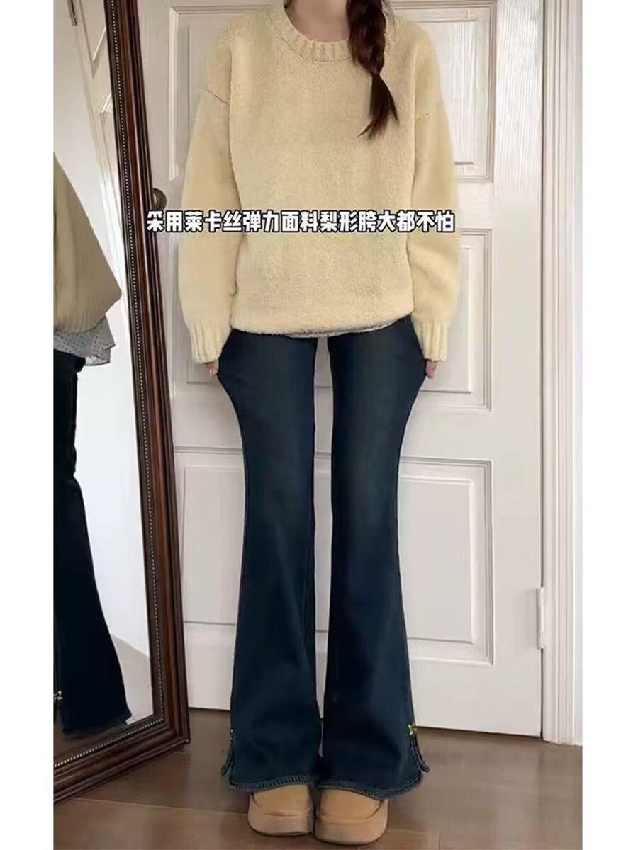 Jeans Retro con Abertura y Stretch de Talla Grande para Mujer Primavera y Verano mm Gordita Figura de Pera Cintura Alta Look Adelgazante Pantalones Microacampanados de Herradura