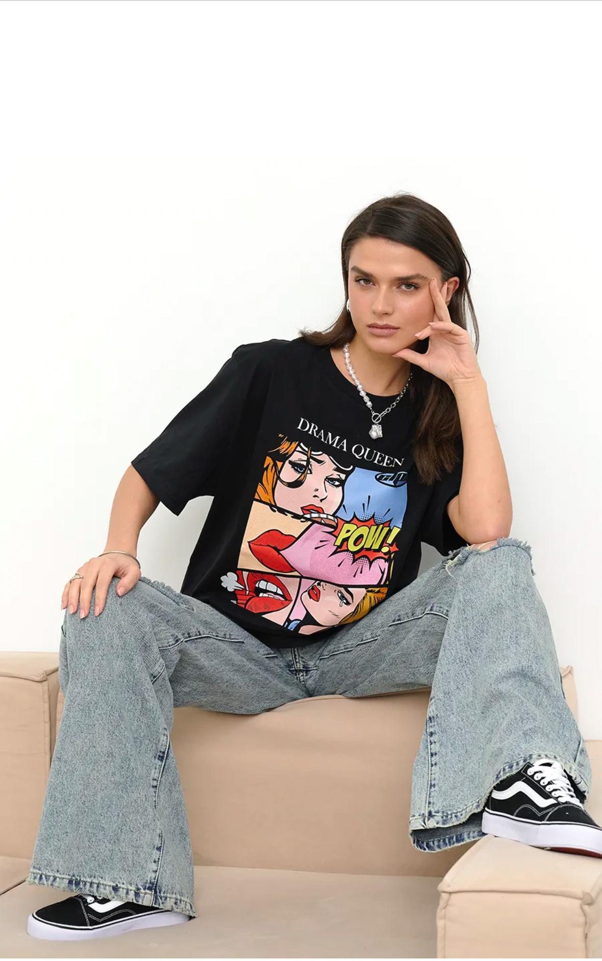 Playera Estampada de Manga Corta Verano Nuevo Retro Patrón Chica Caliente Dibujos Animados Suelta