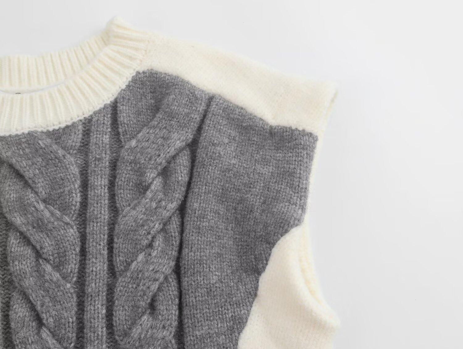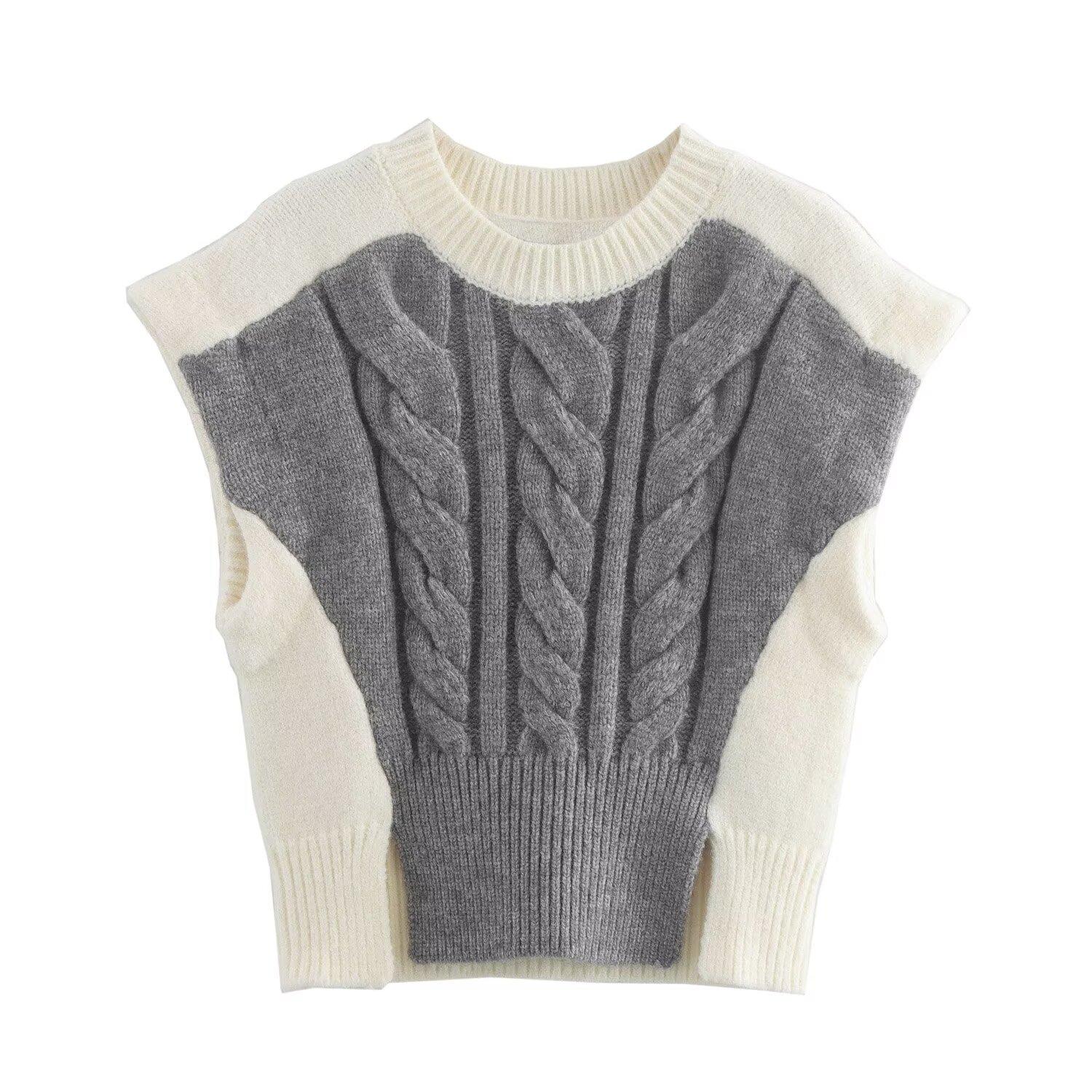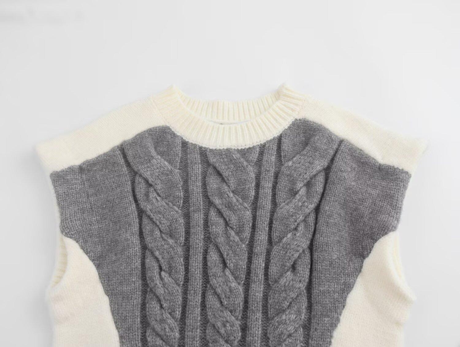 Ropa de Otoño para Mujer 2024 Nuevo Estilo Europeo y Americano Moda Versátil Chaleco Tejido con Patrón de Cables 4938110