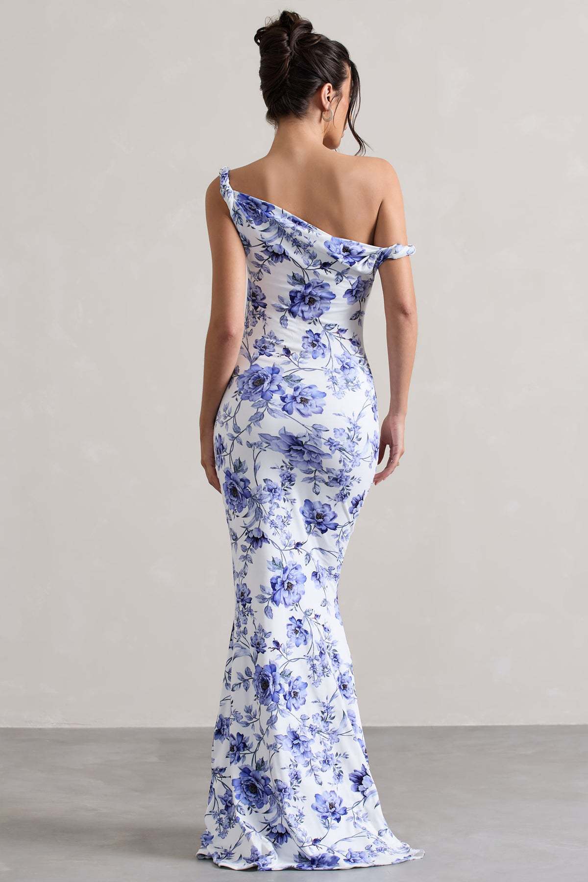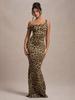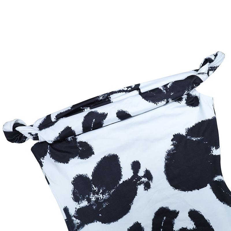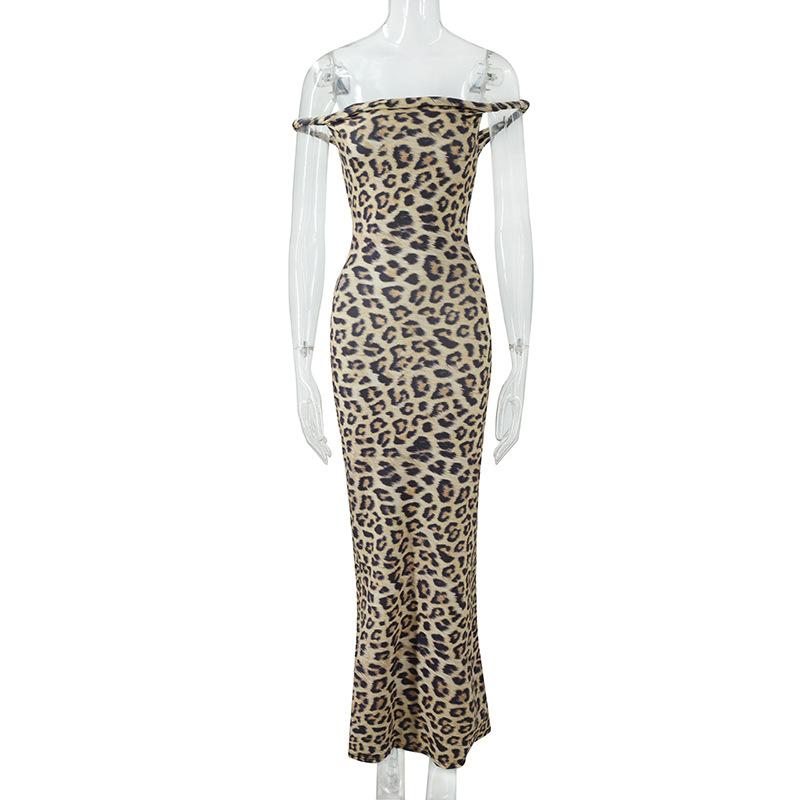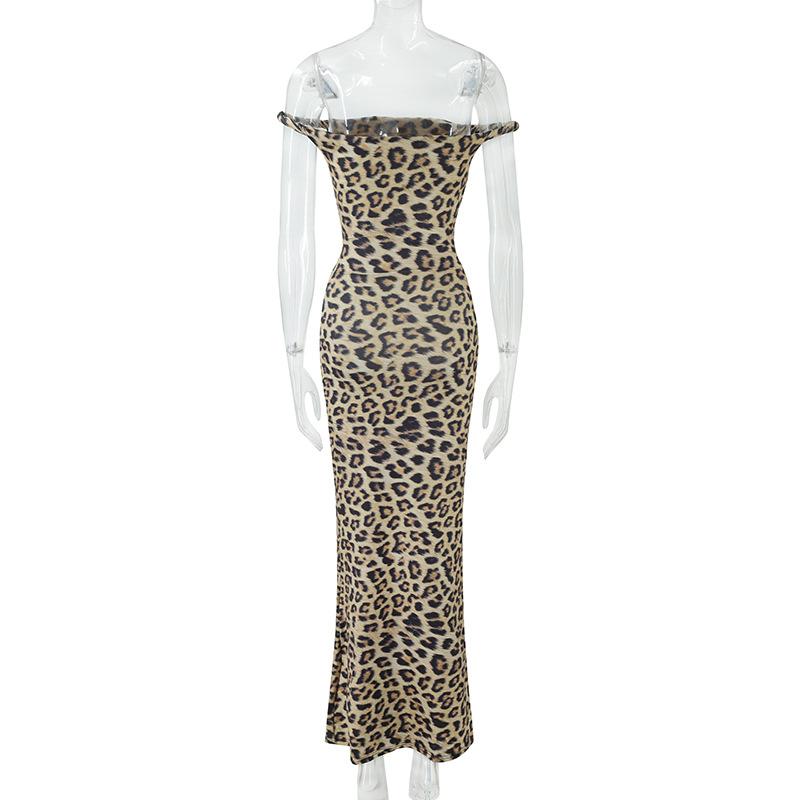 Estilo Europeo y Americano Verano 2025 Exportación Transfronteriza Vestido Sexy Nicho de Hombro Oblicuo Fruncido Ajustado a la Cadera Estampado