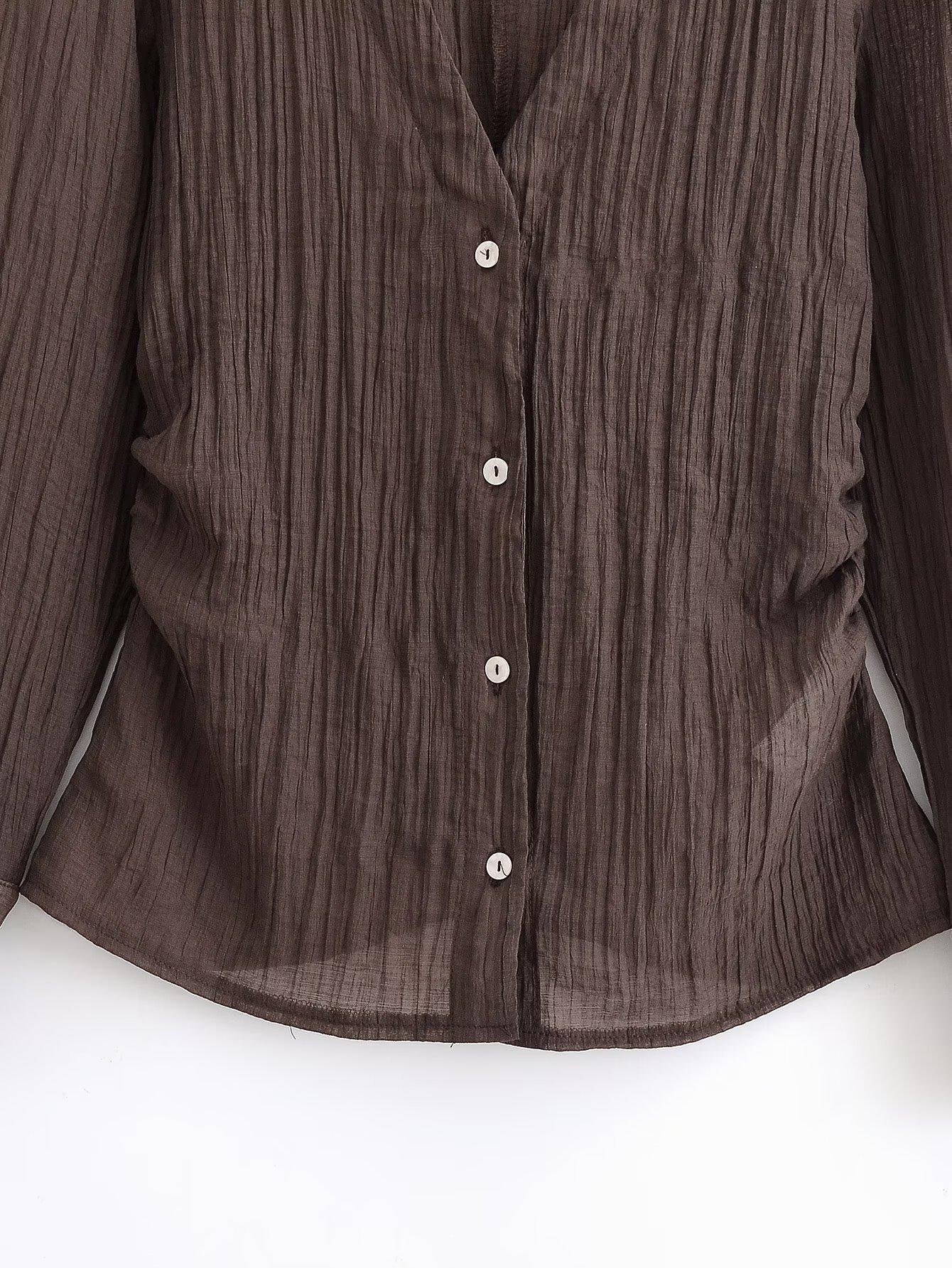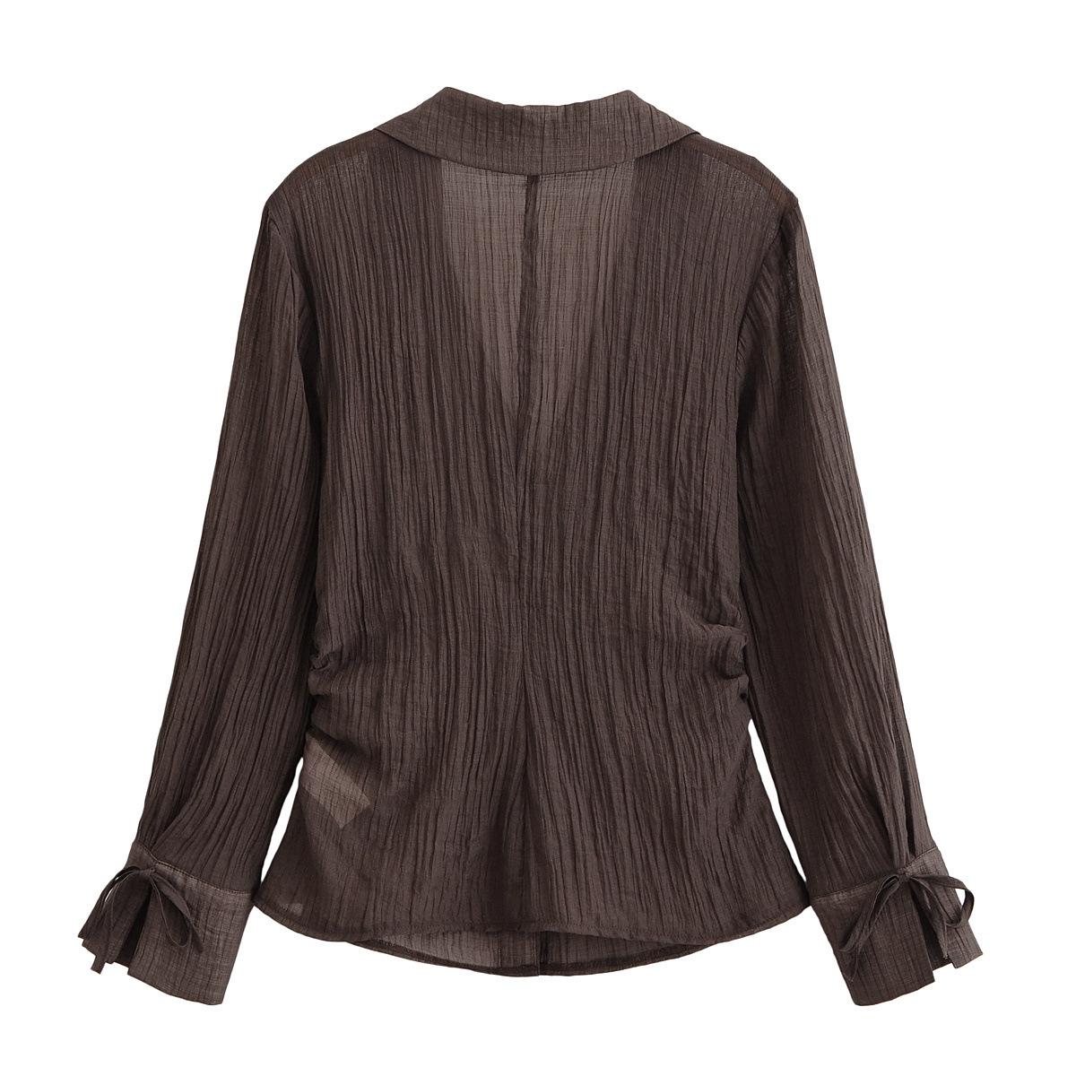 Estilo Europeo y Americano Amazon Aliexpress Tendencia de Moda Popular Temperamento Versátil Para Ir al Trabajo Camisa Semitransparente Decorada con Lazo