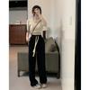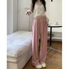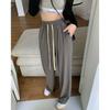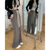 Pantalones de Pierna Ancha Adelgazantes Grises Cintura Alta para Mujer Sueltos Rectos Verano Delgados Cordón Lazy Casuales
