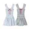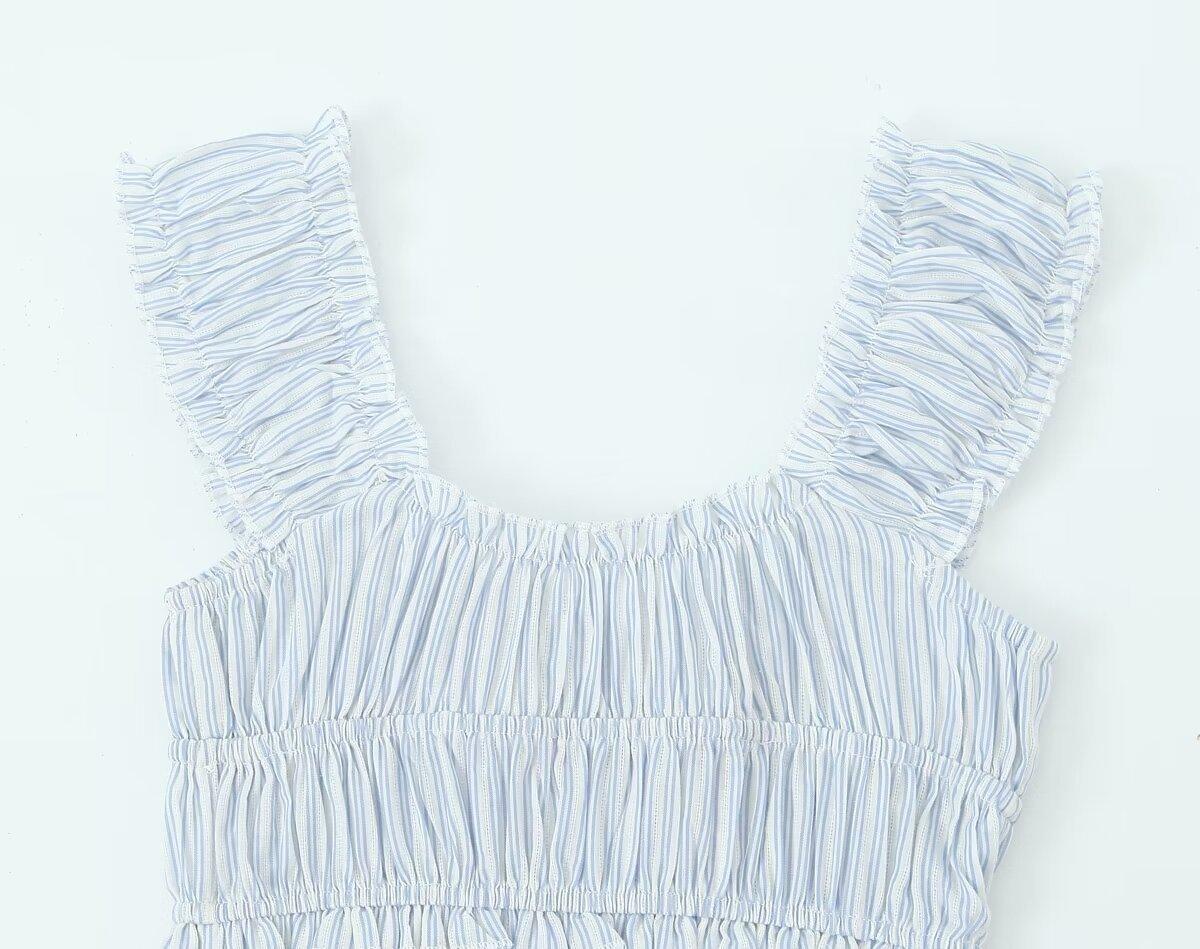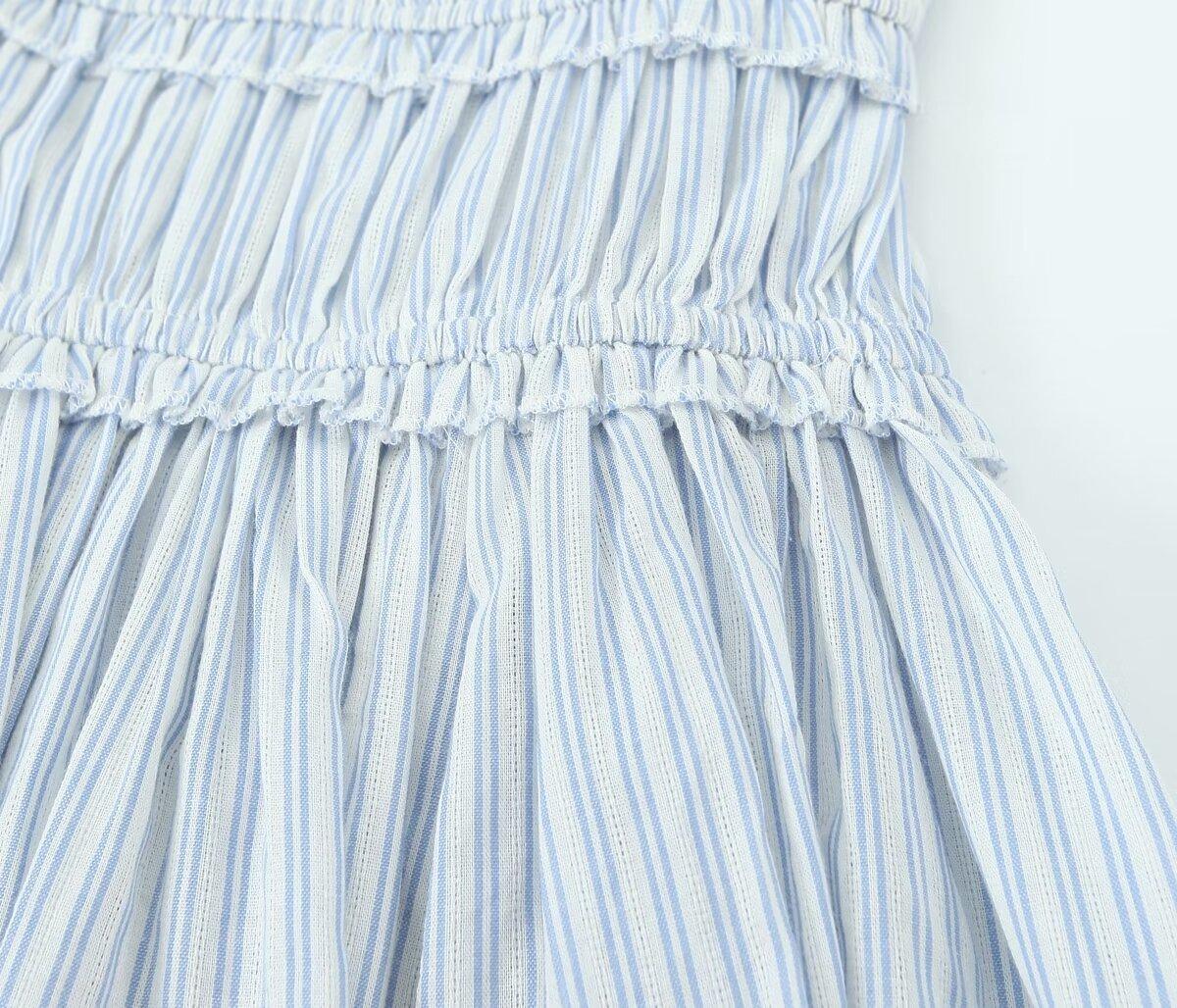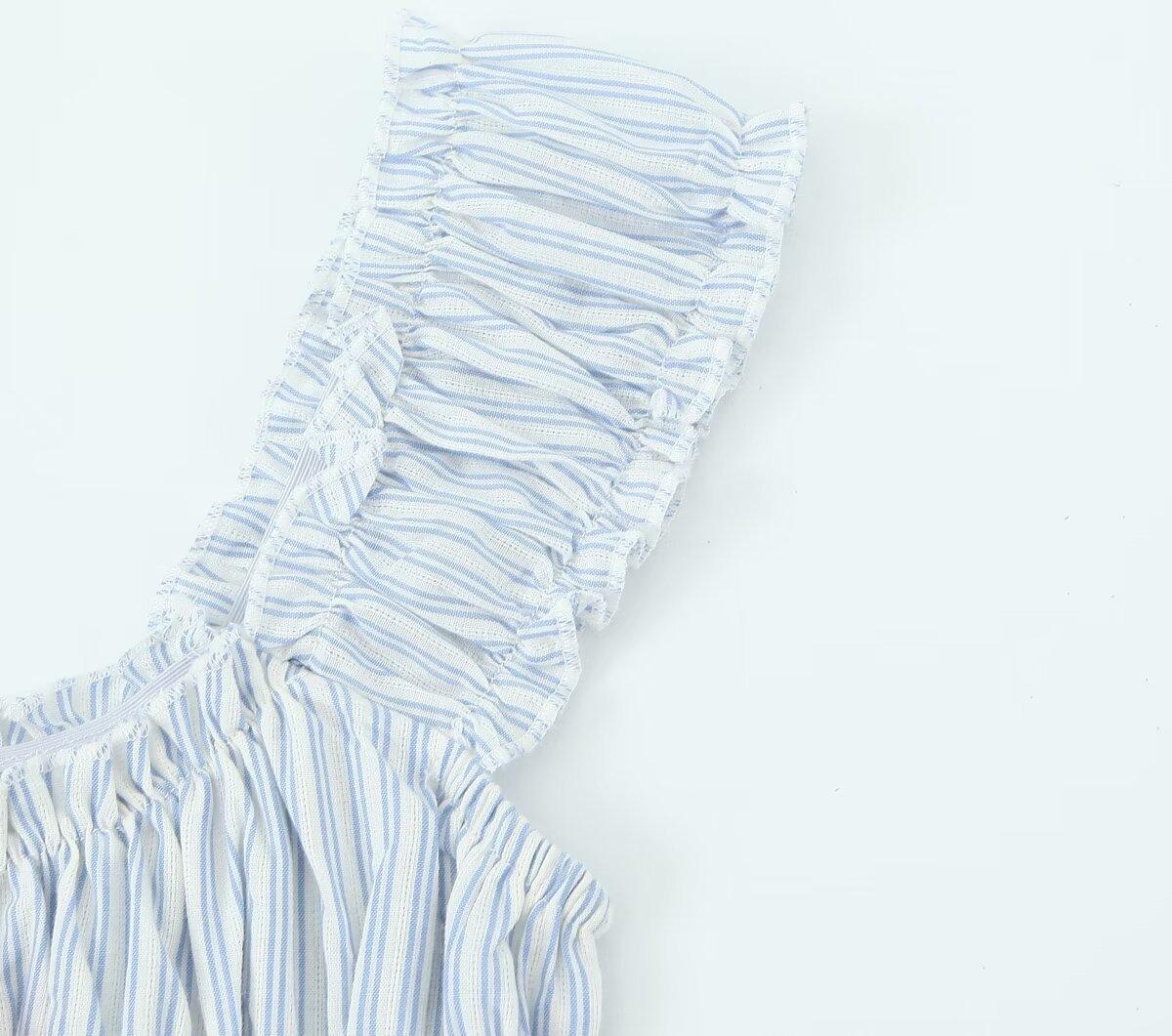 Ropa de Mujer Verano 2024 Nuevo Estilo Europeo y Americano Simple Estilo Francés Arrugado Rayado Hombro Chica Caliente Vestido Corto