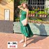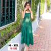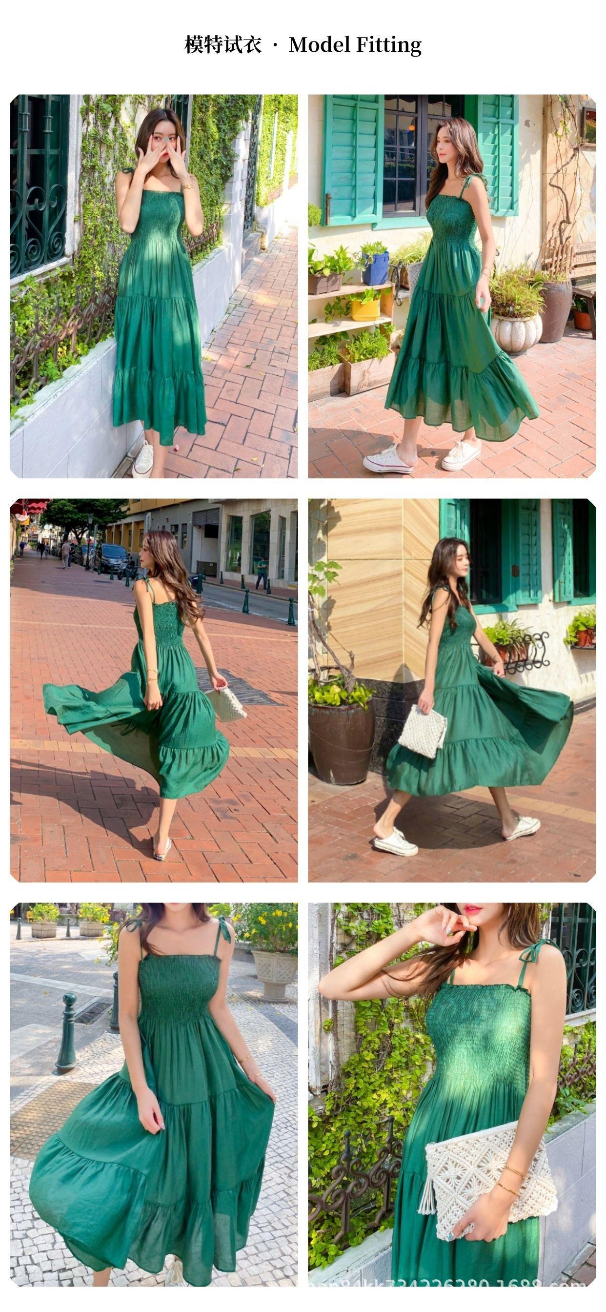 Vestido Slim Plisado con Tirantes Estilo Nuevo 2025 Largo hasta la Rodilla Talla Grande para Mujer Casual Vacaciones Playa