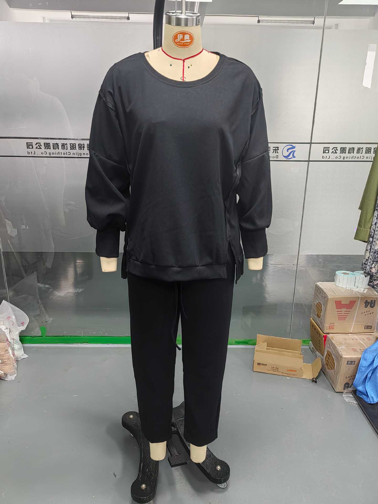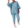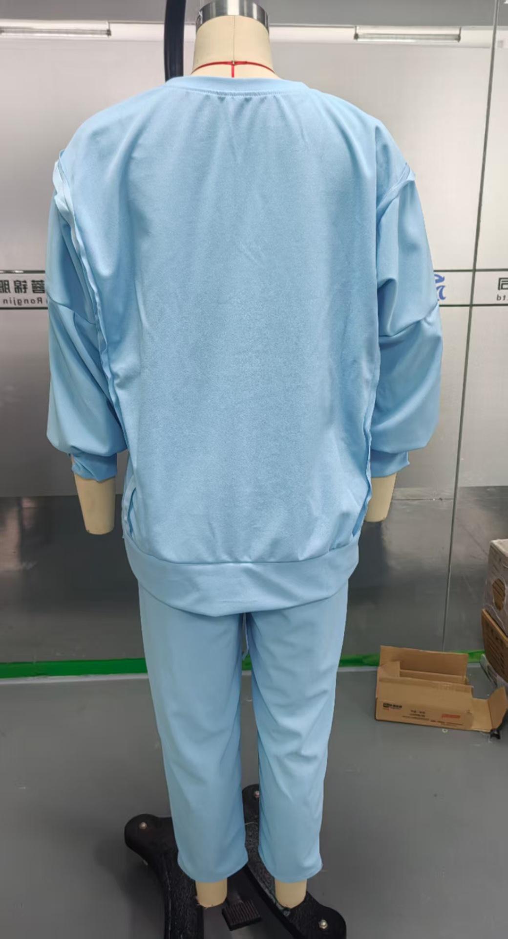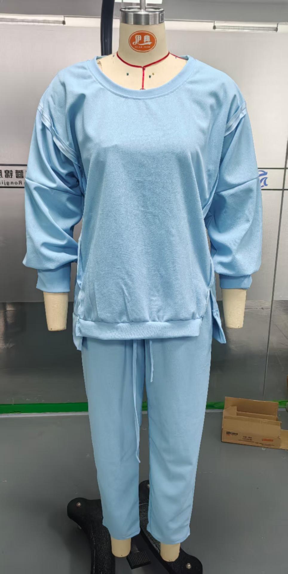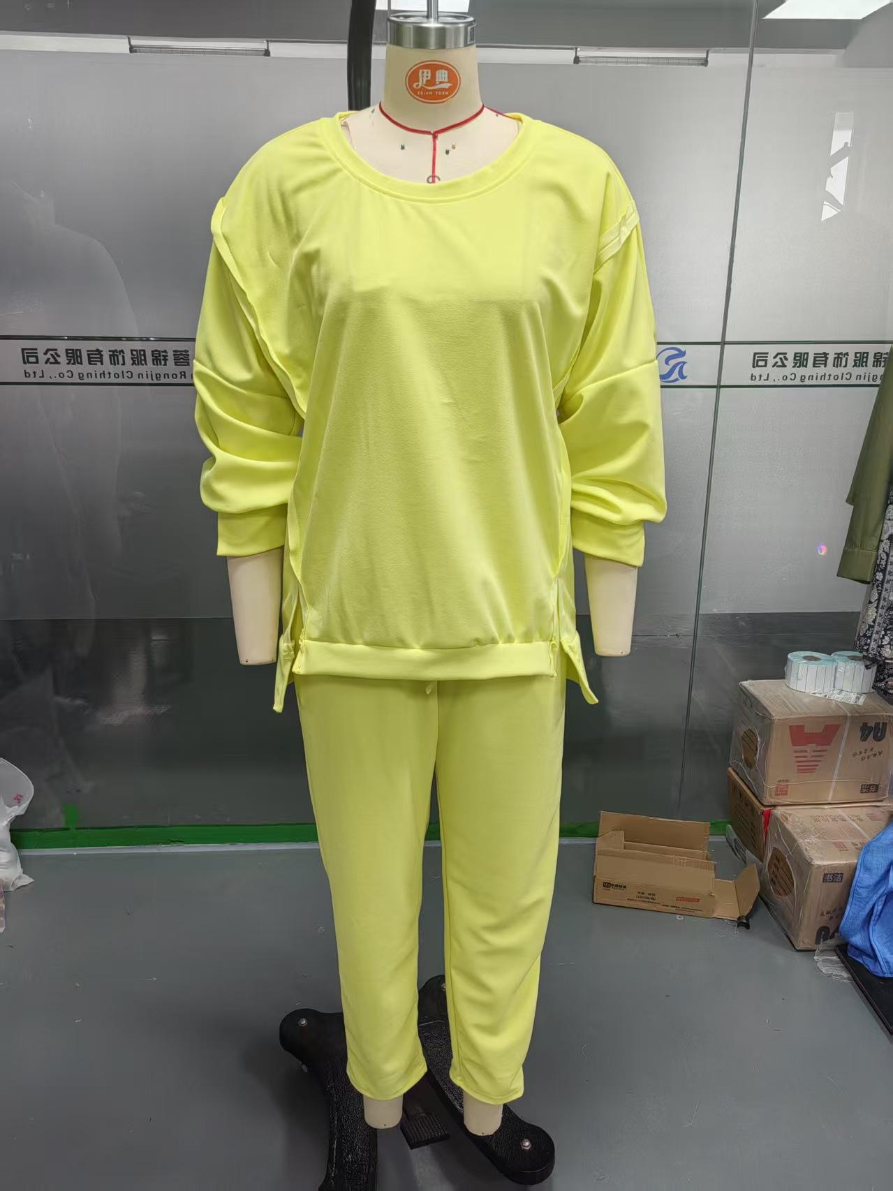 2025 Verano Transfronterizo Estilo Europeo y Americano Nuevo Casual Color Sólido Cuello Redondo Manga Larga Top Deportivo Combinable Pantalón Conjunto de Dos Piezas para Mujer