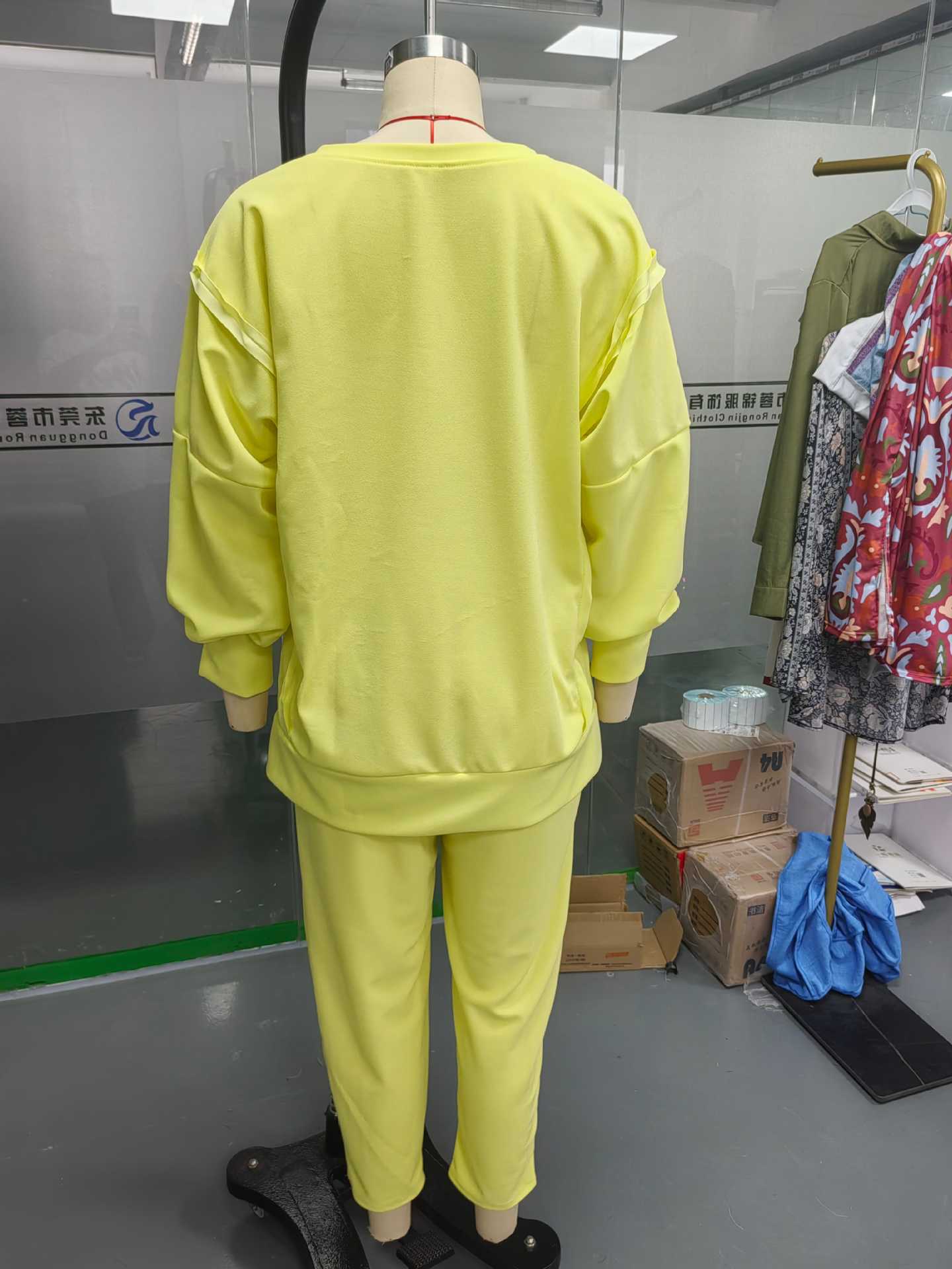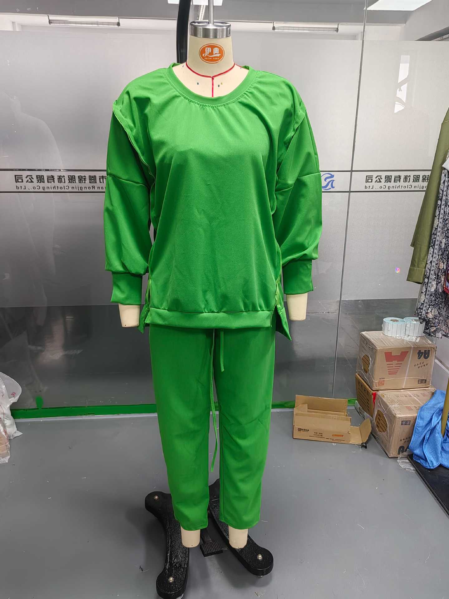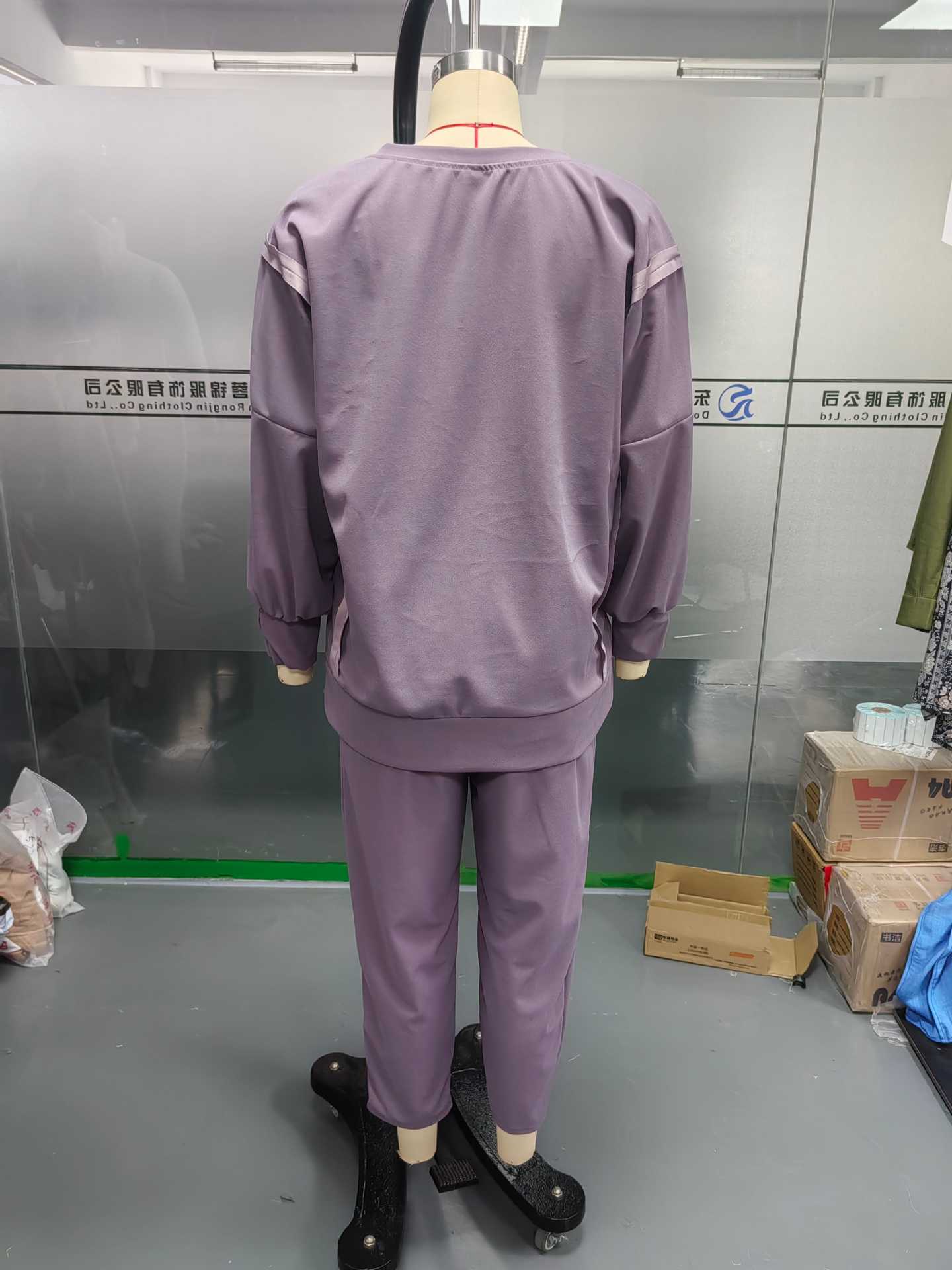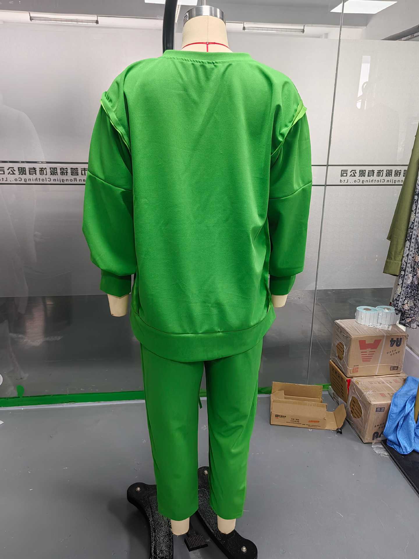 2025 Verano Transfronterizo Estilo Europeo y Americano Nuevo Casual Color Sólido Cuello Redondo Manga Larga Top Deportivo Combinable Pantalón Conjunto de Dos Piezas para Mujer
