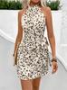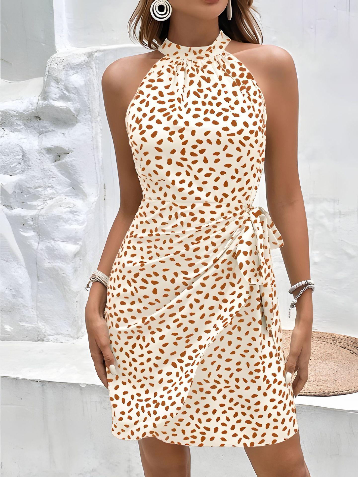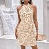 Vestido de Lunares con Cordones de Moda Europea y Americana de Venta Caliente Transfronterizo de Amazon Personalizado Sin Mangas Ceñido a la Cintura con Cuello Halter